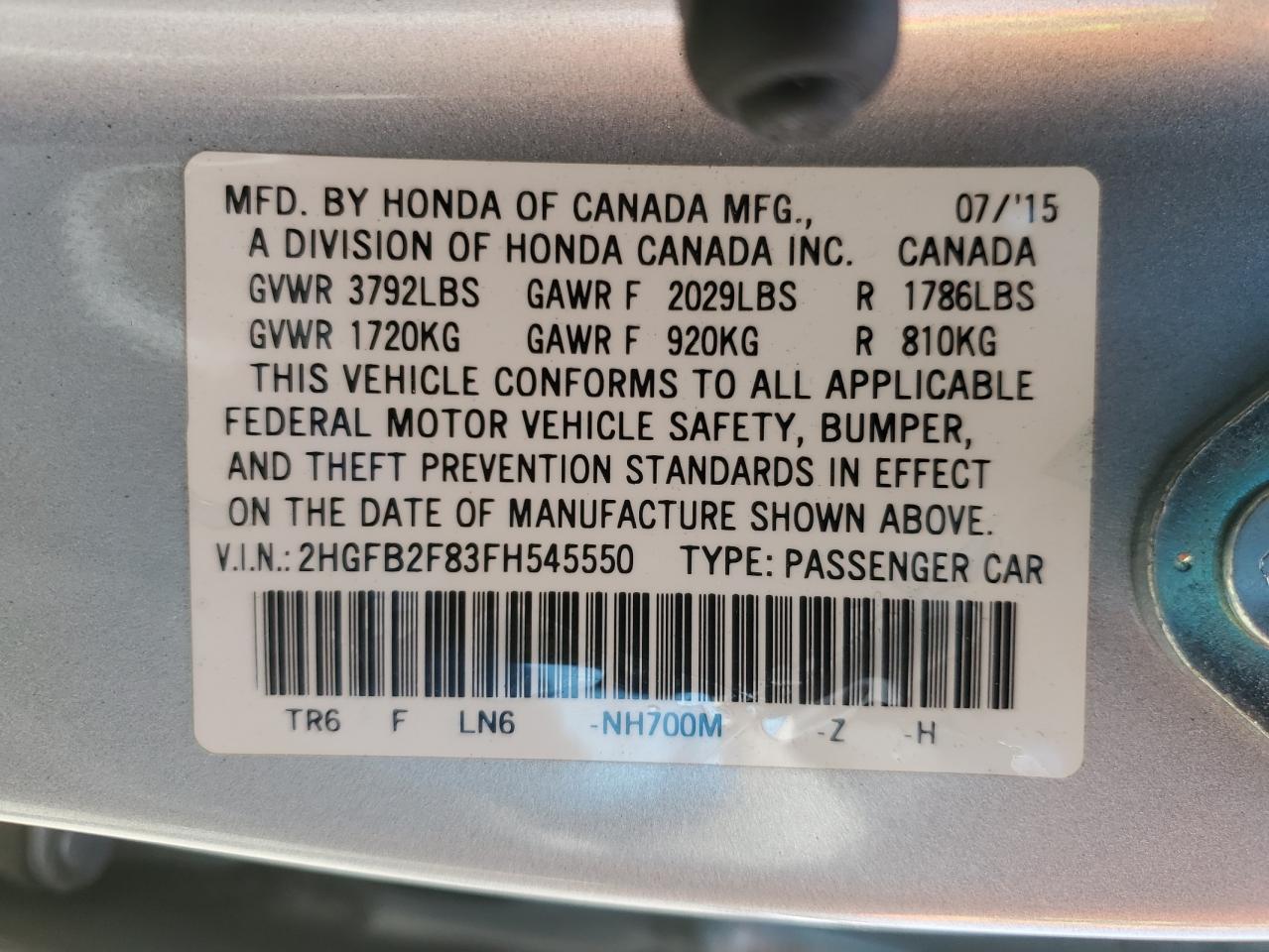 2HGFB2F83FH545550Final Bid