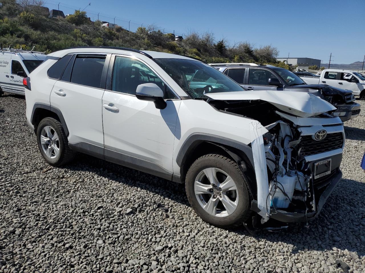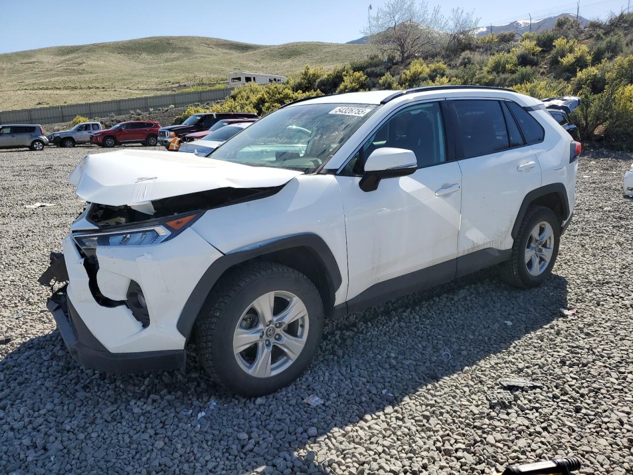 FairThe 2021 Toyota RAV4 XLE is white and shows significant front-end damage. Despite the damage, the vehicle appears to be drivable, with the primary damage located in the front end. There is no visible damage to the wheels, lights, or glasses, but there is visible damage throughout the exterior body panels. Interior condition shows damage as well, including to the airbag, the car requires repairs.