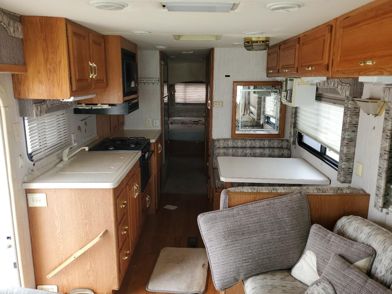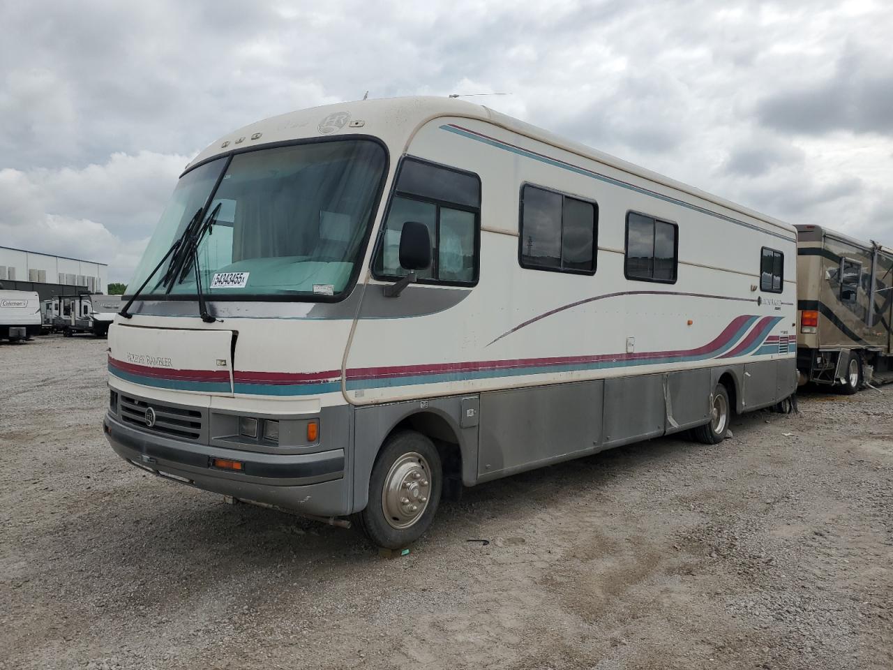 FairThis 1995 OSHKOSH MOTOR TRUCK CO. CHASSIS RV shows signs of wear and tear. The primary damage is HAIL, with secondary damage to the TOP/ROOF. The vehicle starts, indicated by the 'Vehicle Starts' code. The white exterior has visible cosmetic damage. The interior condition appears to be moderate, with some wear evident. The wheels and glasses appear to be intact. Overall, the RV needs repairs. Check the interior for additional damage.
