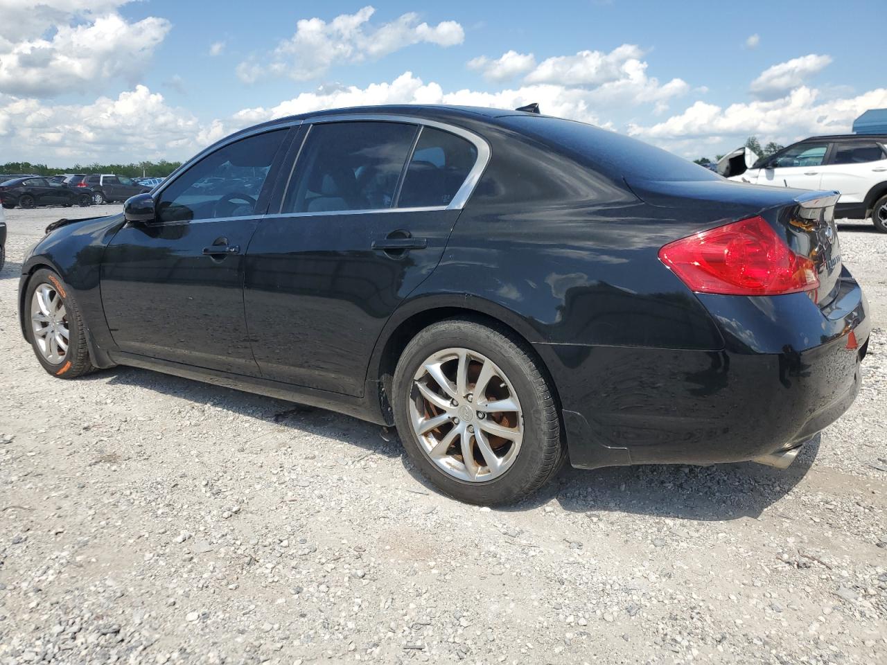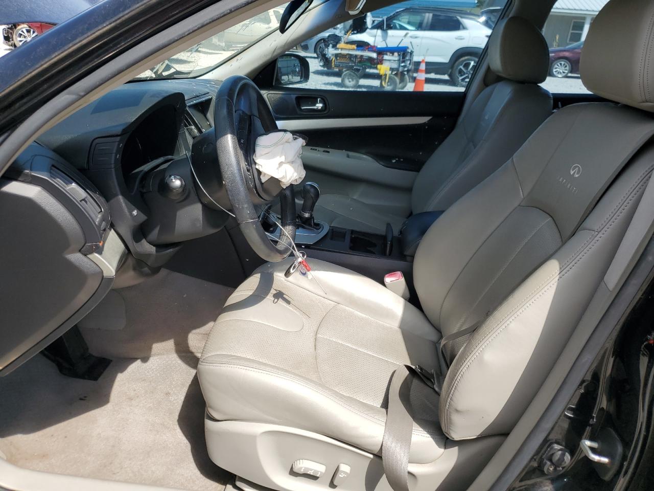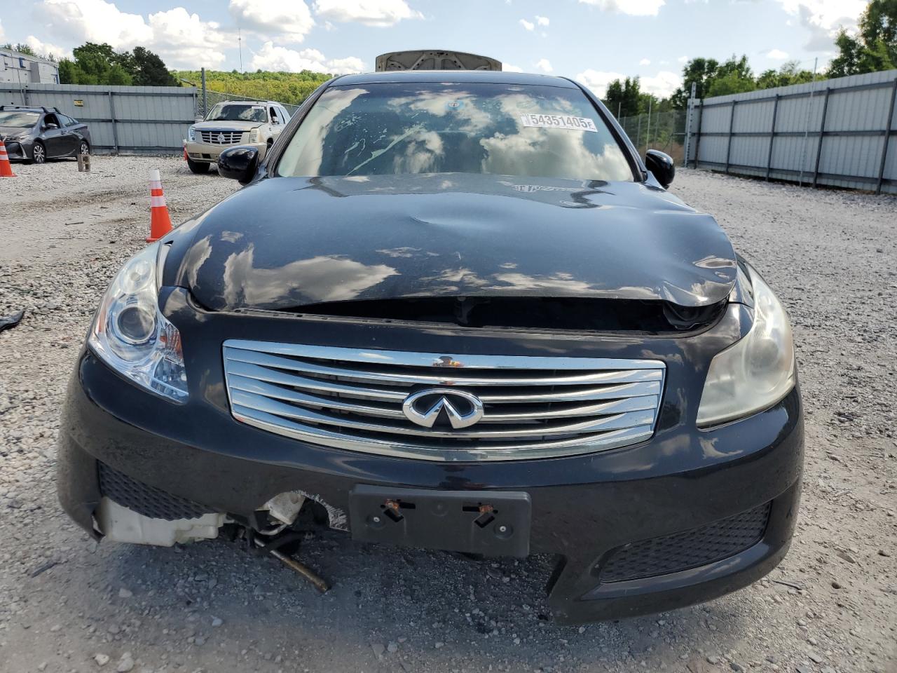 FairThis is a black 2008 INFINITI G35. The vehicle has sustained significant damage. The front end is heavily damaged with the primary damage being to the front end and secondary damage to the undercarriage. The lights and glasses appear to be affected. The interior shows signs of wear and tear, with deployed airbags. The wheels appear to be in decent condition despite the overall damage. The car's state is poor and requires considerable repair.