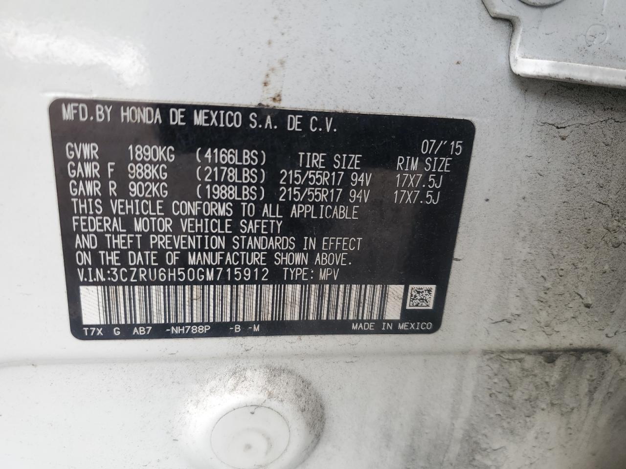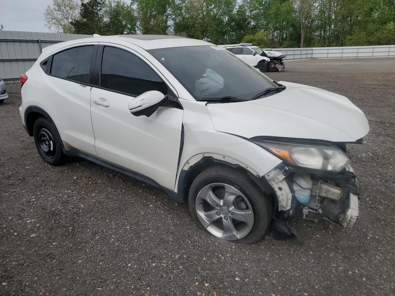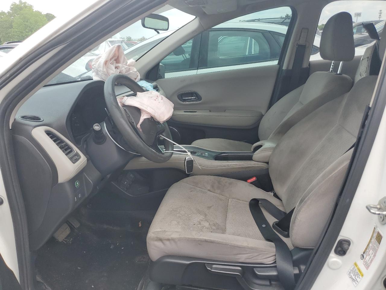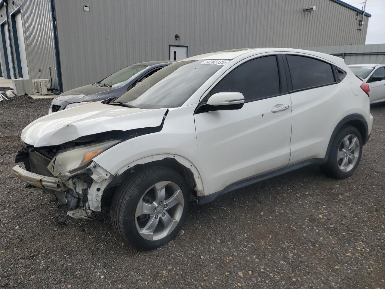 Fair2016 Honda HR-V EX with front end damage. The vehicle's exterior shows significant damage, particularly at the front, including damage to the front panels, headlights and possibly the bumper. The interior condition appears affected with airbag deployment. This car is considered drivable, but requires repairs. It's a Run & Drive Verified car.