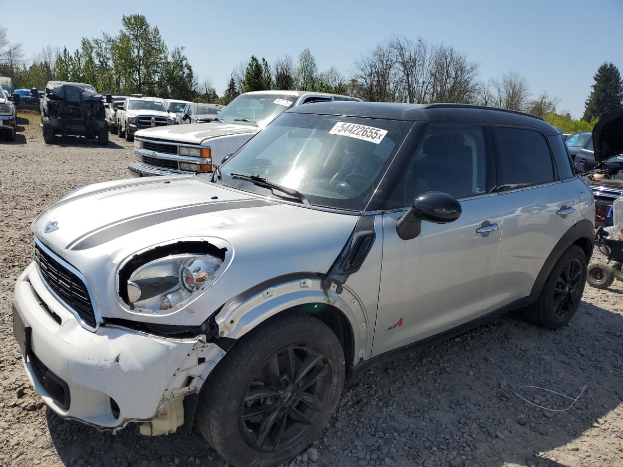 FairThis is a 2012 MINI Cooper S Countryman with significant front-end damage. The vehicle is silver with a black roof and black rims. The front end shows clear signs of impact, with damage to the bumper, hood, and potentially the lights. The rear and side panels appear to be intact, showing normal wear and tear. The interior appears to be in good condition with minor signs of wear.