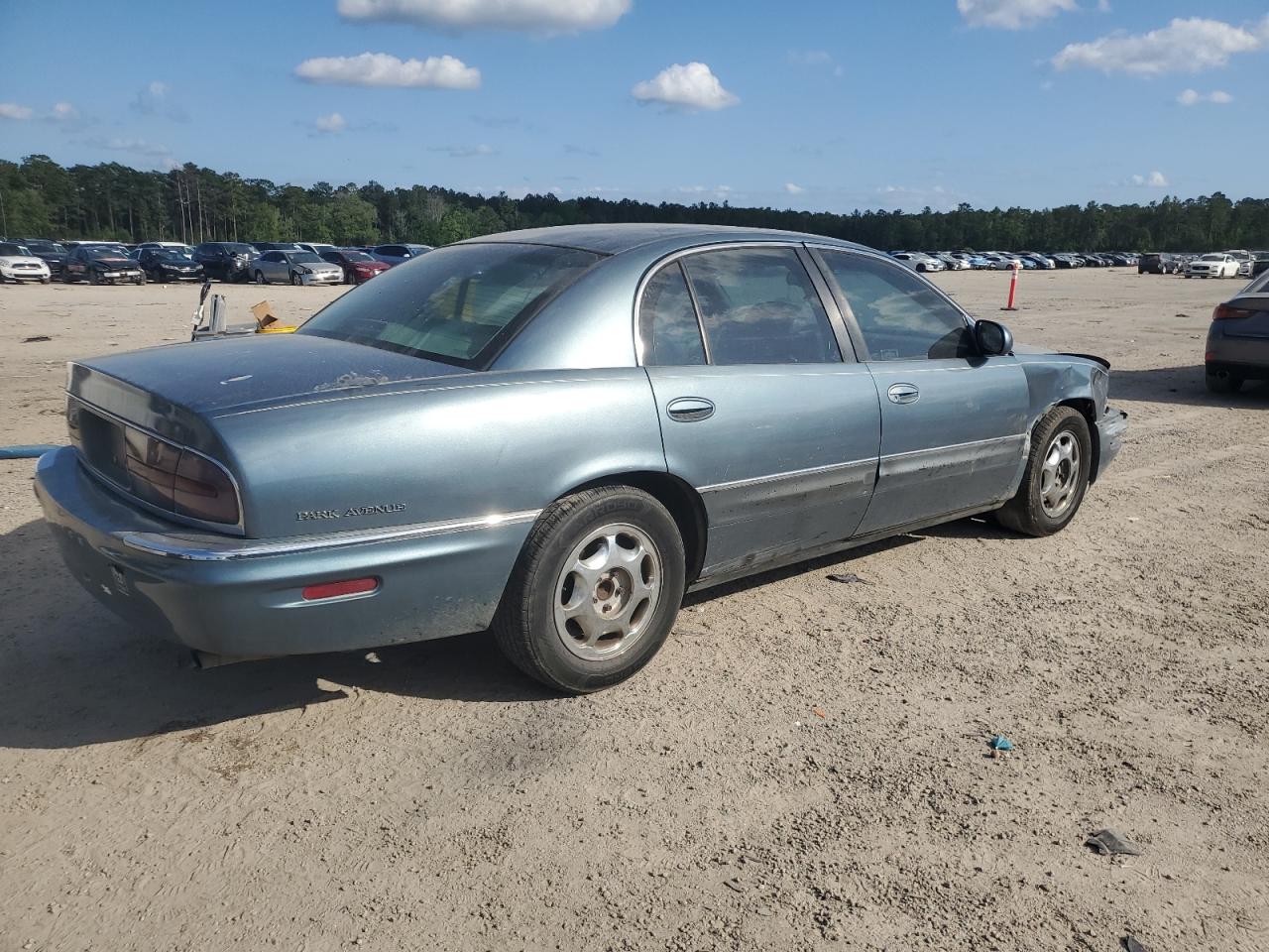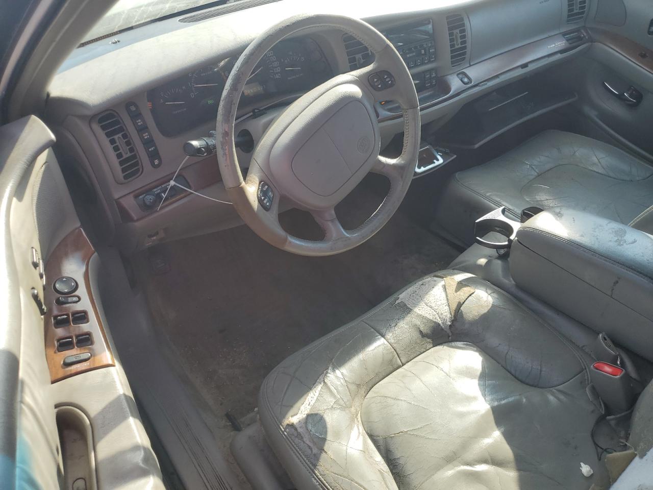 Fair2000 Buick Park Avenue, blue in color, with front-end damage. The car is Run & Drive Verified. The vehicle's front end exhibits significant damage, including potential impact to the hood, bumper, and possibly the fenders. There is no apparent mechanical damage. The interior shows wear and tear consistent with its age and mileage, the seats look to have wear. The lights and glasses appear to be intact. The wheels show signs of use but appear to be in a usable condition. The airbag are not deployed. Overall, the car requires cosmetic repairs and has moderate visible damage.