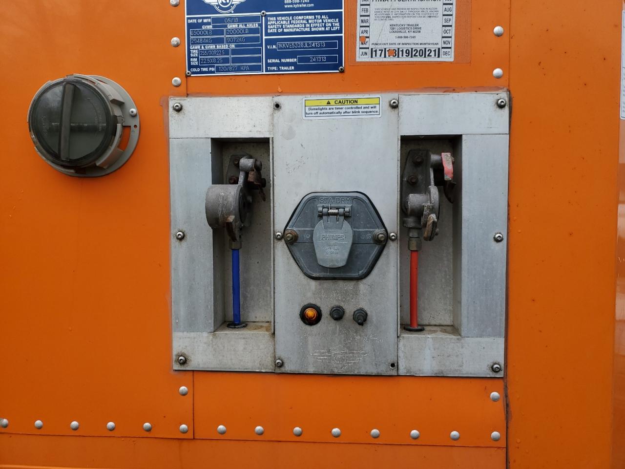 FairThe KENTUCKY TRAILER 2018 has significant damage primarily to the top/roof. The color is orange. The vehicle has a 'DEFAULT' start code. The interior also shows signs of damage. There is damage to the body panels, but mechanical components are not affected. The overall condition is fair, indicating moderate damage but the vehicle remains drivable. The vehicle is in need of considerable repair.