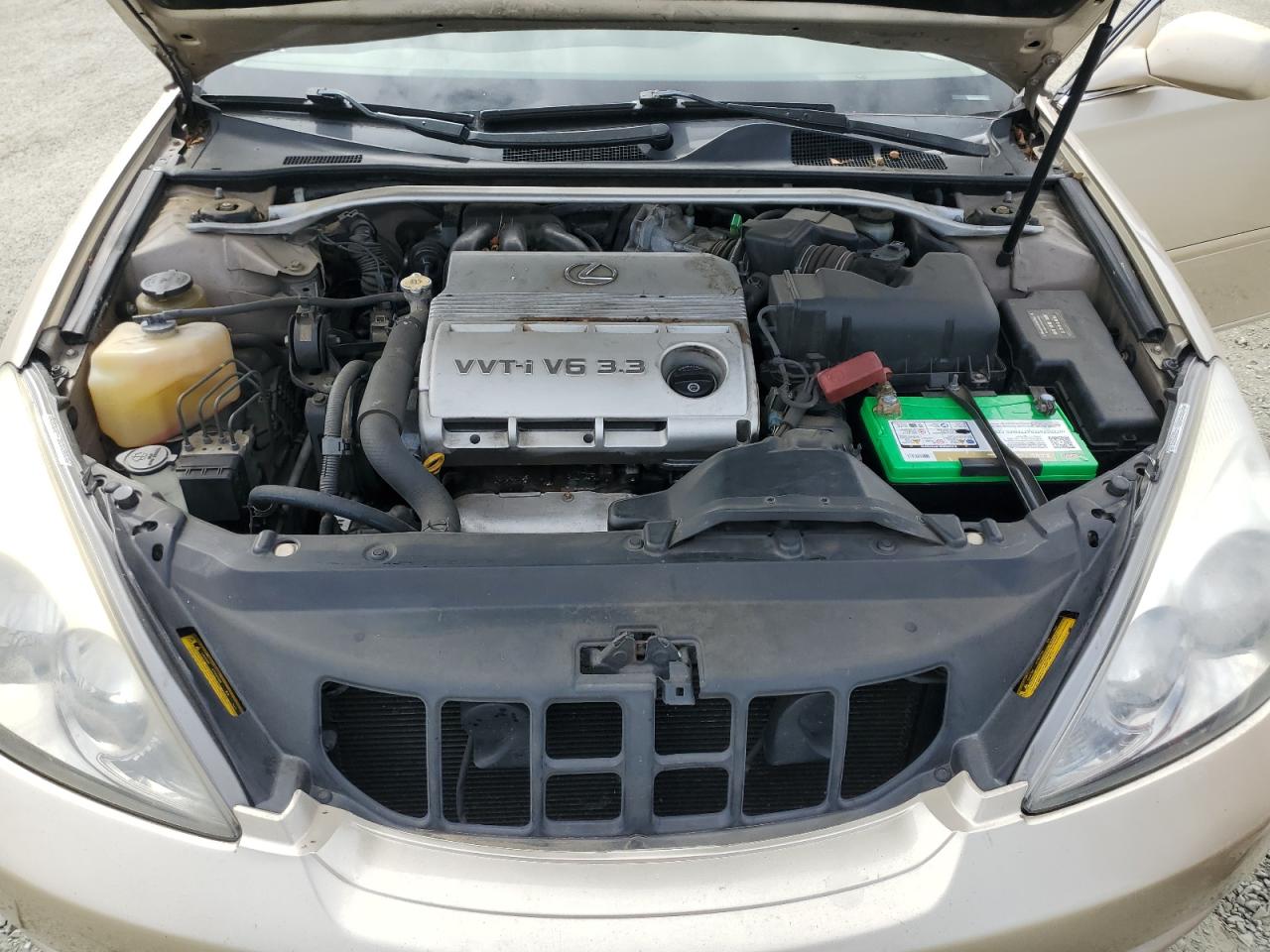 GoodThe 2004 Lexus ES 330, a gold sedan, shows minor cosmetic imperfections, including minor dents and scratches. The vehicle is drivable. The interior presents well. The overall state appears to be in good condition, with some wear consistent with its age and mileage.