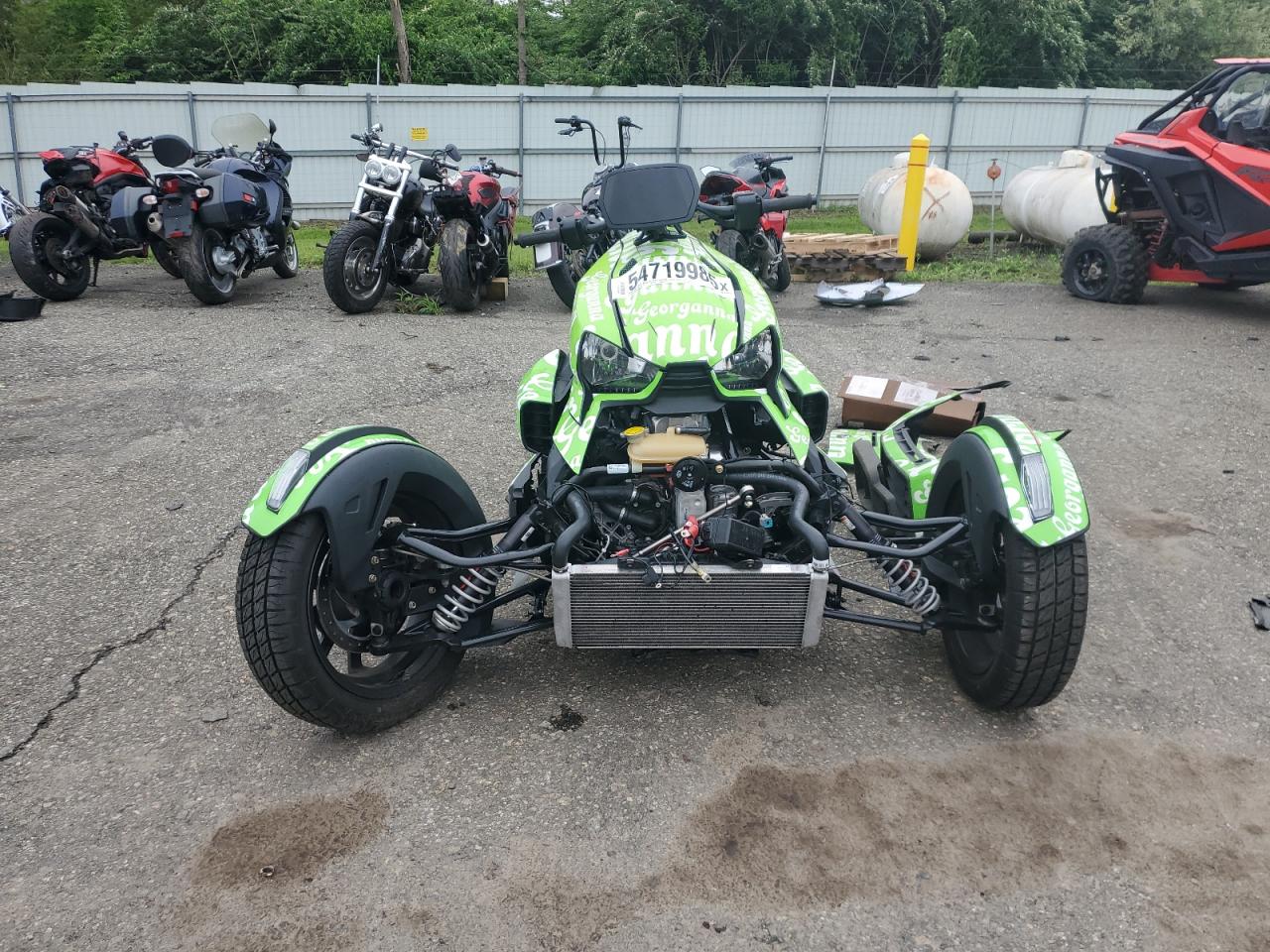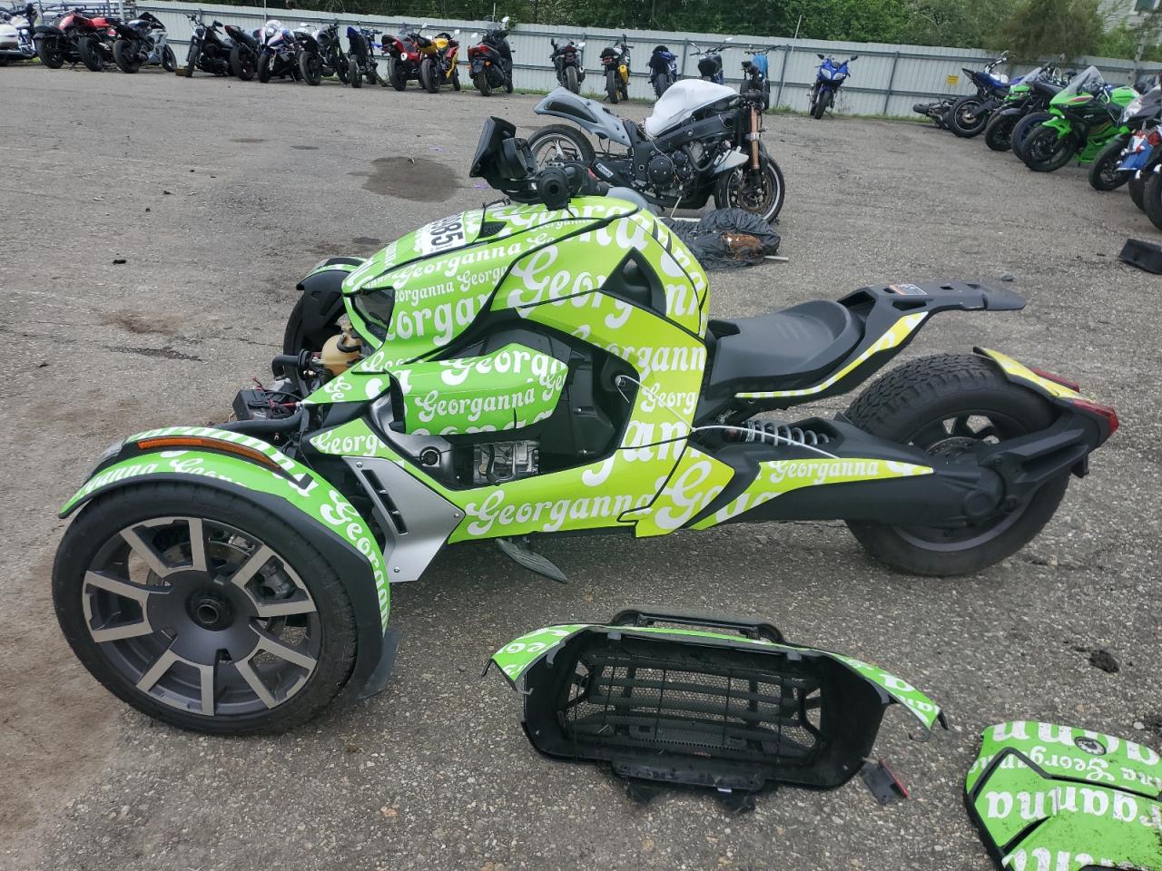 This CAN-AM RYKER RALL has significant damage, mainly to the front, with detached body panels. The vehicle is likely drivable after repairs.