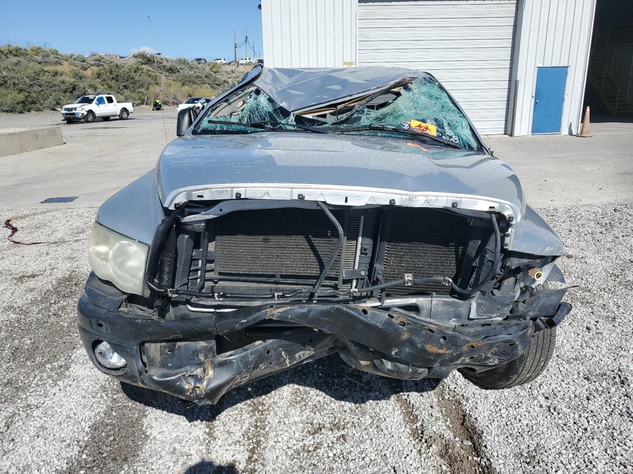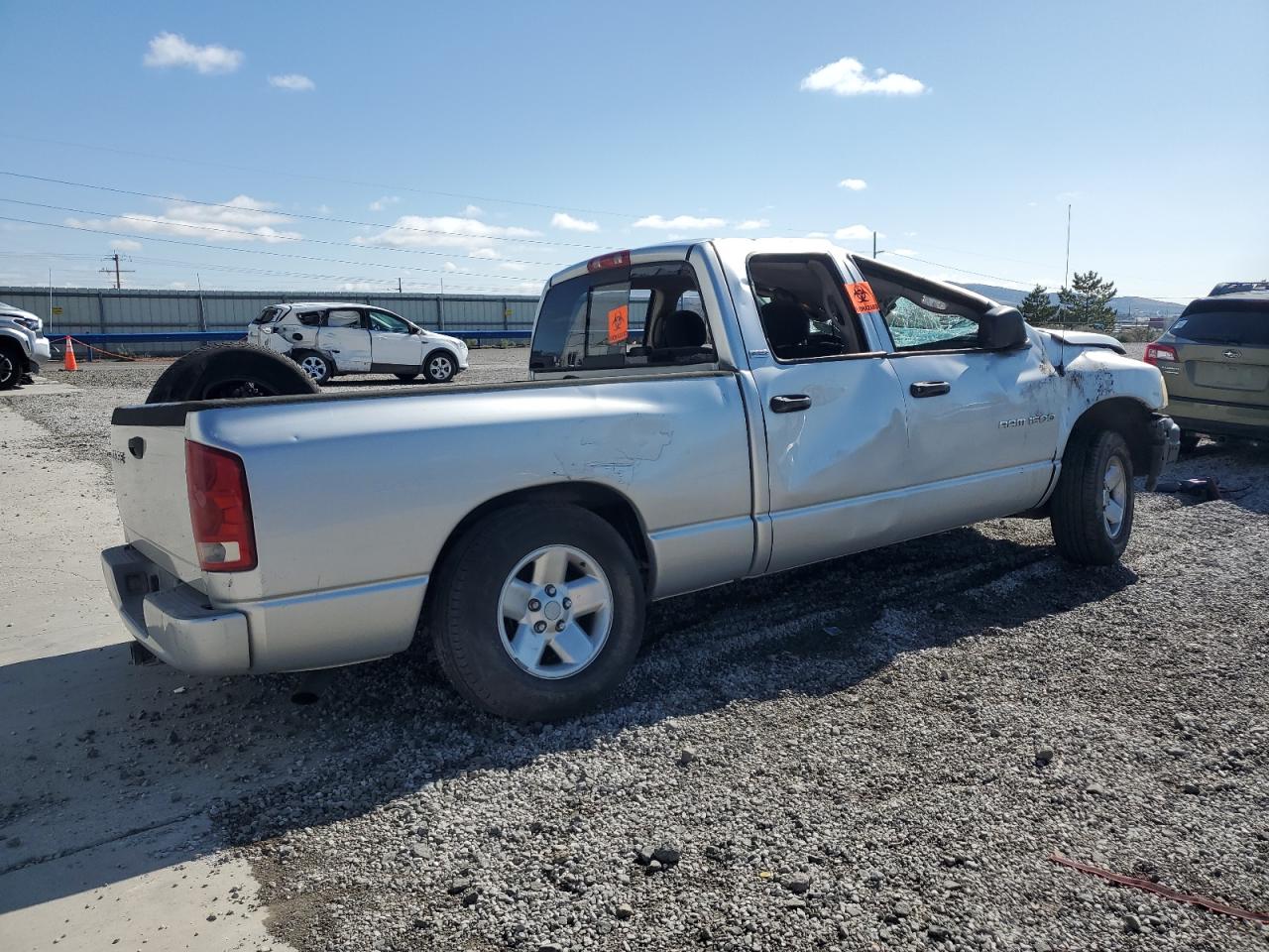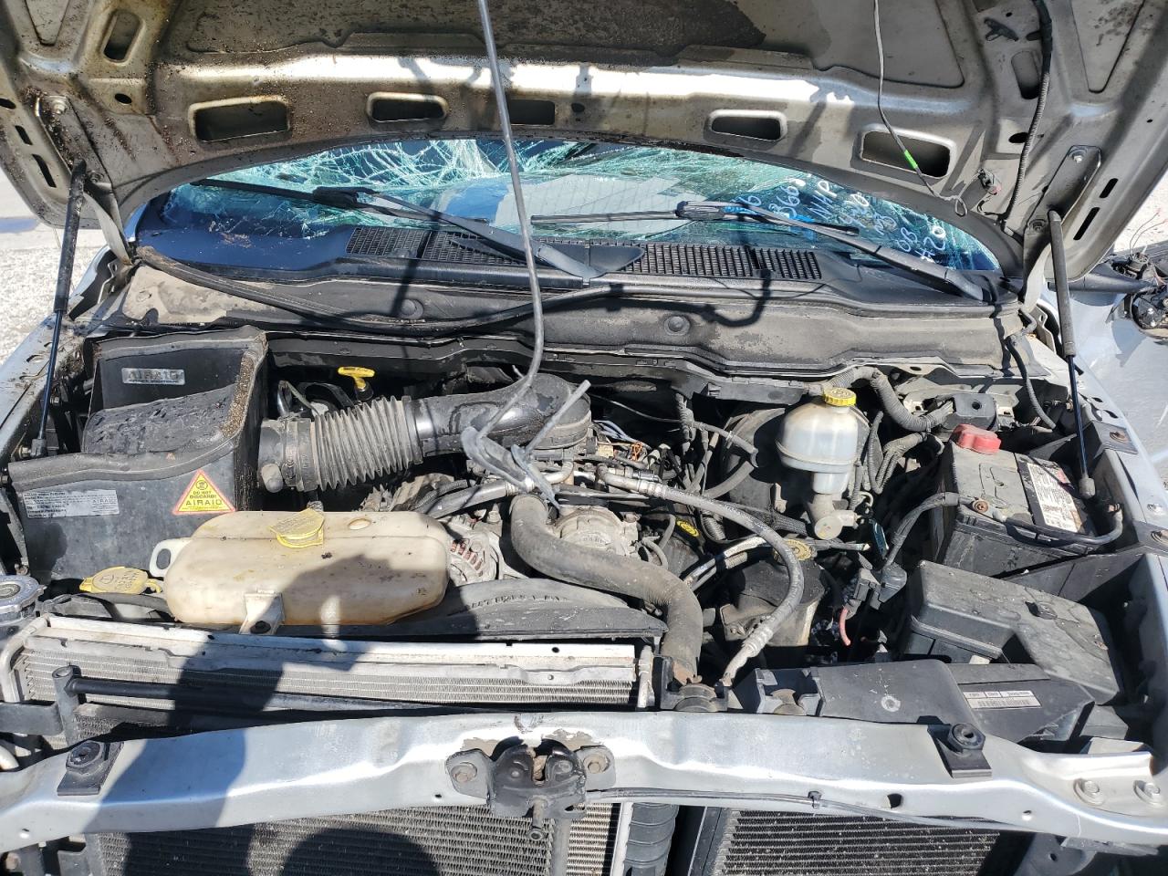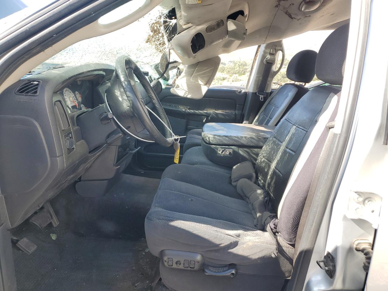 PoorThe 2002 Dodge Ram 1500 has sustained significant damage, indicative of a rollover. The exterior shows extensive damage, particularly to the roof, windshield and body panels, with the front end severely impacted. The silver paint is likely scuffed and dented. The interior exhibits damage to the dashboard, the airbags possibly deployed, and the seats show signs of wear and potential impact damage. Overall the vehicle is in poor condition, requiring substantial repairs.