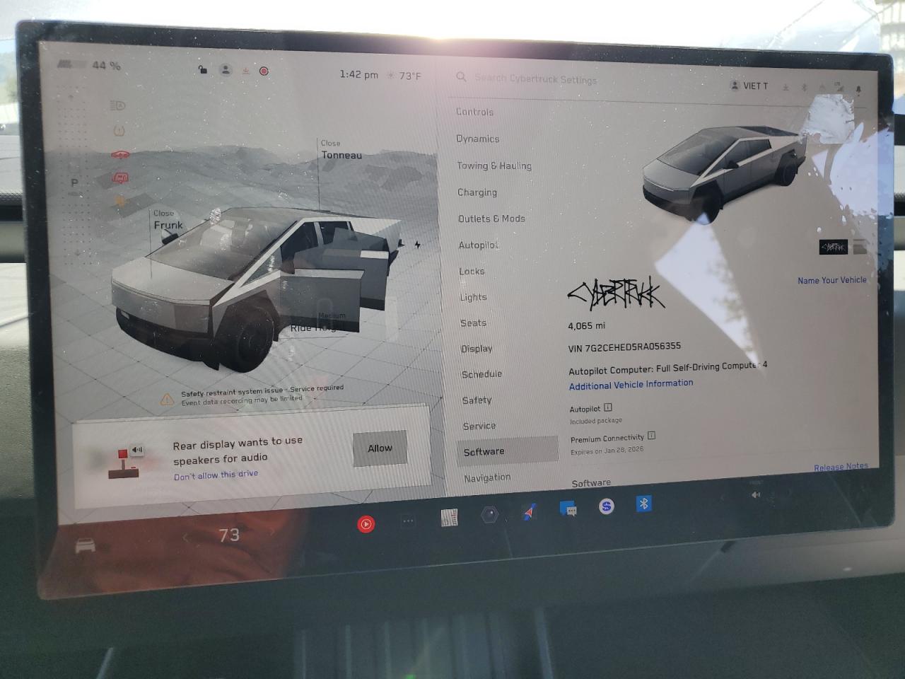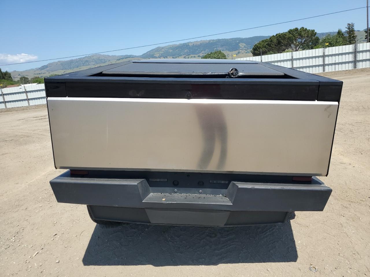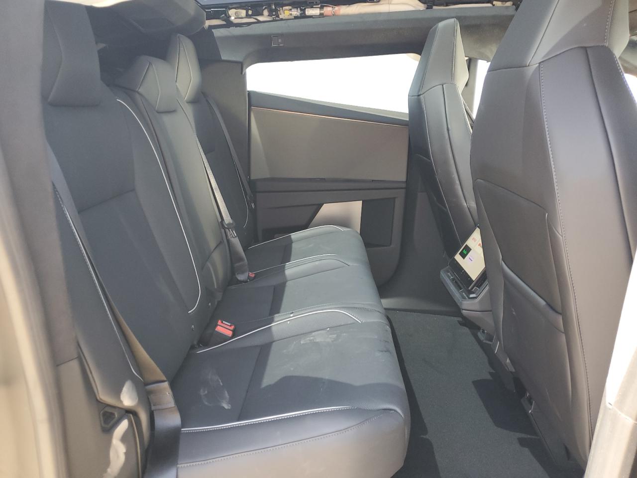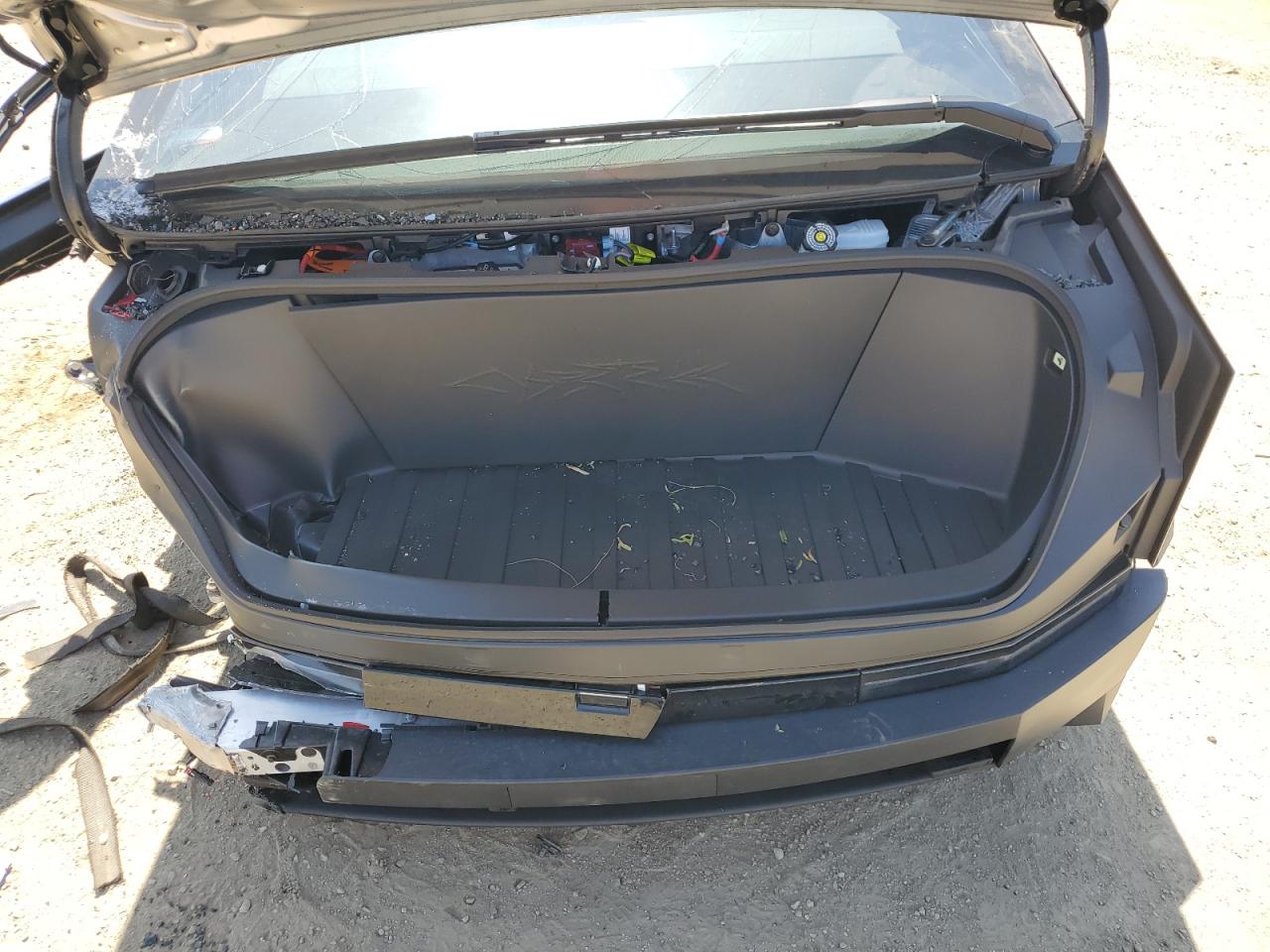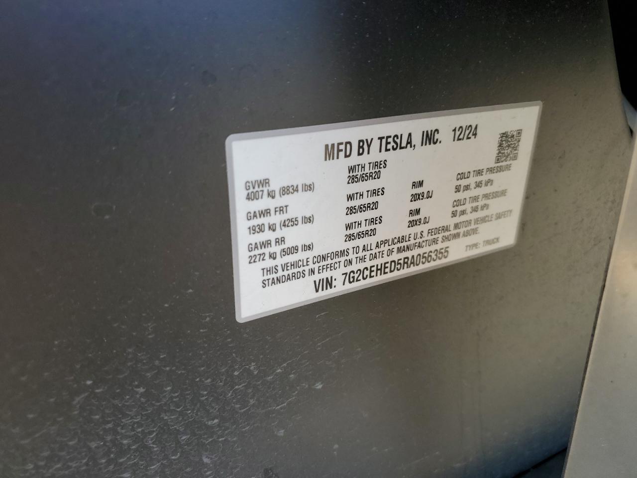 FairThis is a damaged 2024 Tesla Cybertruck. The primary damage is to the front end, with secondary damage to the side. The silver-colored body panels show significant impact damage, including crushed front end components, deformed body panels, and compromised glass on the front and possibly side windows. The wheels appear to be intact, but the vehicle's overall structure has sustained considerable damage. Interior damage is evident, with deployed airbags and visible damage to the dashboard and seats. This Cybertruck requires substantial repairs.