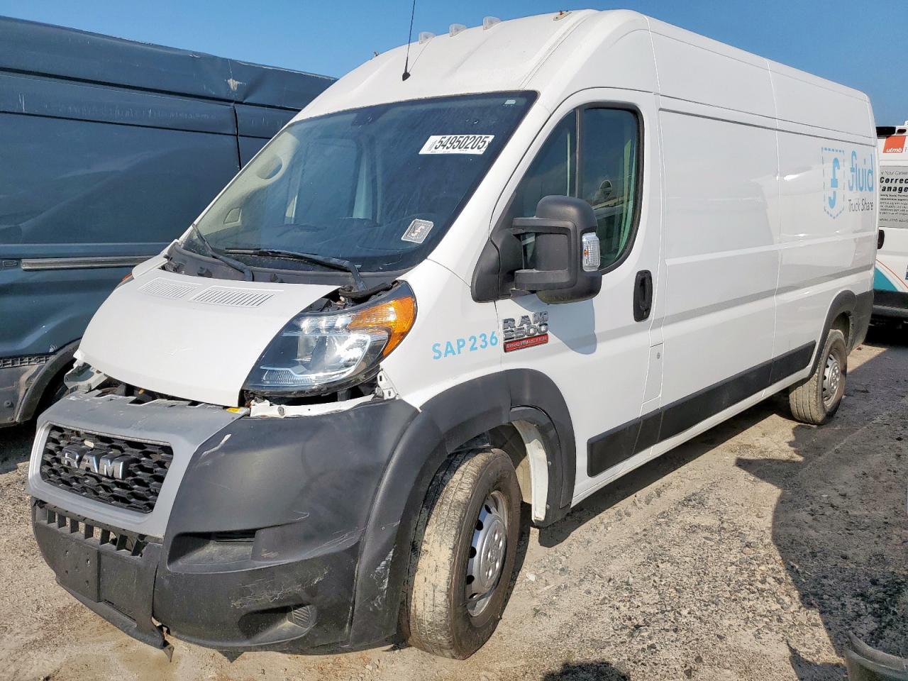 FairThis is a 2023 RAM PROMASTER van, white in color, with significant damage. The primary damage is to the side and the secondary damage is to the front end. The car has cosmetic and body damages. It has been involved in an accident, leaving it in a state requiring considerable repair. The car's lights and glasses appear to be damaged.