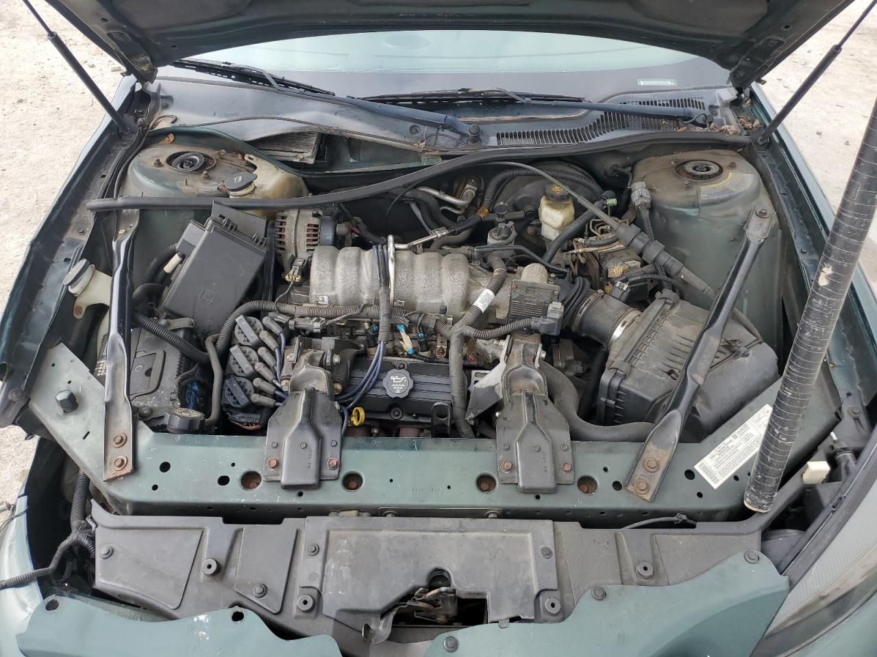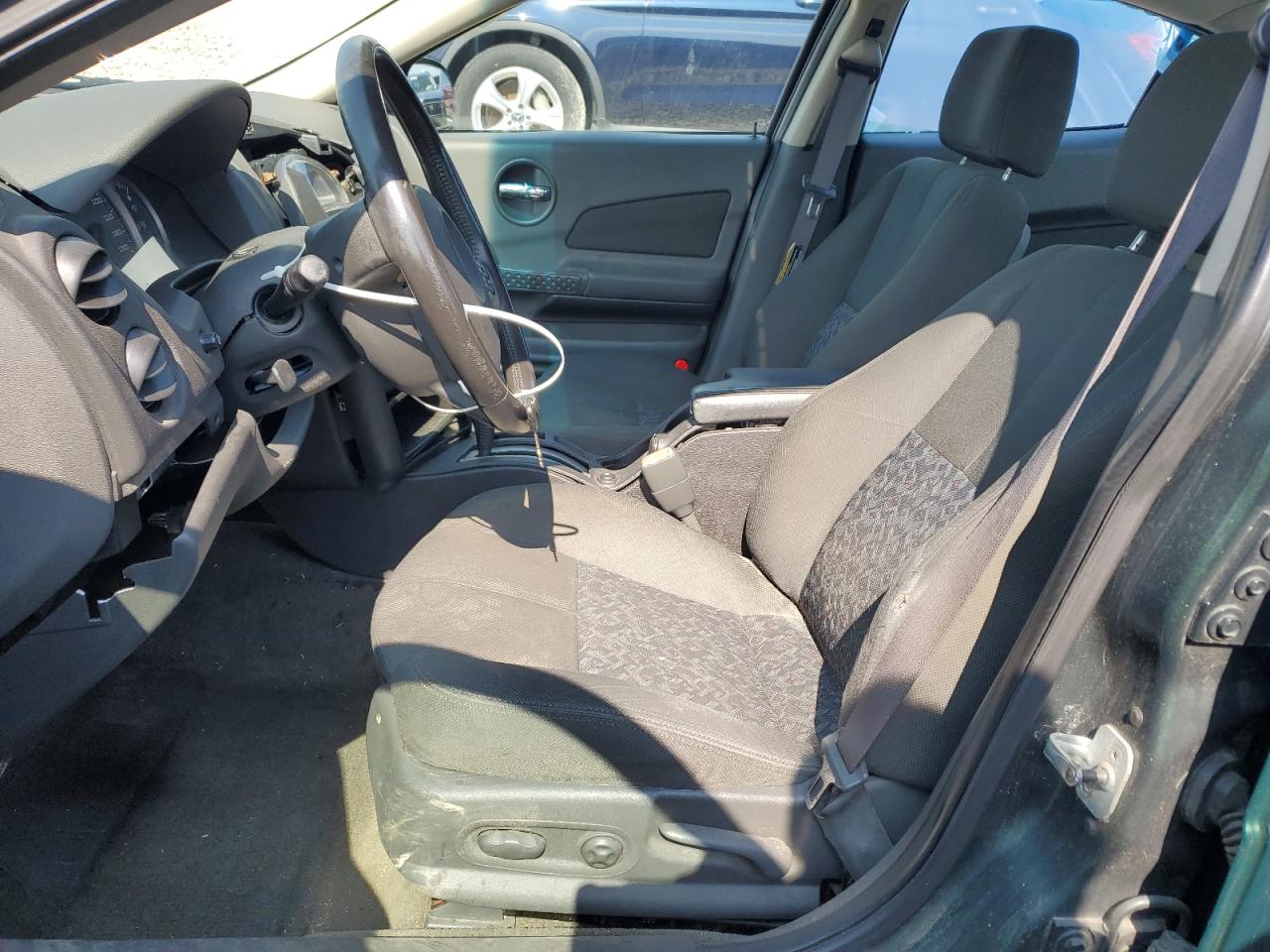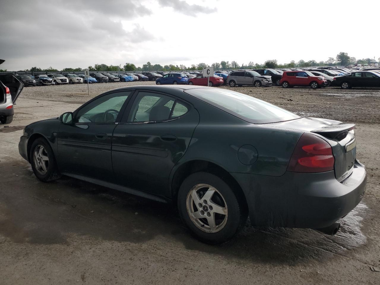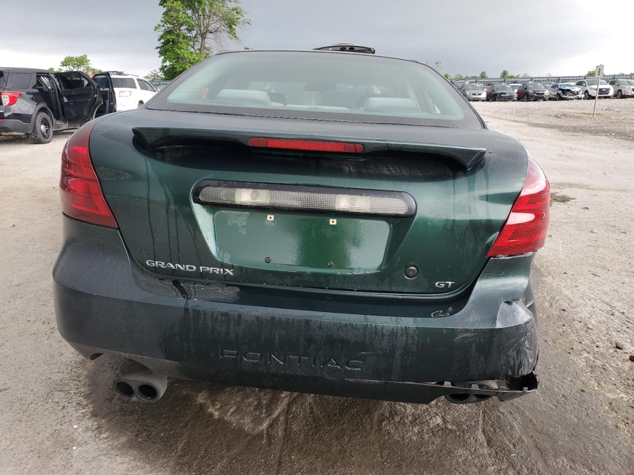 FairThis 2004 Pontiac Grand Prix is dark green and shows significant damage. The front end has considerable damage, and the rear end also shows signs of impact. This is a car, that has been in a crash, it has damage, but the interior seems to be in better shape.