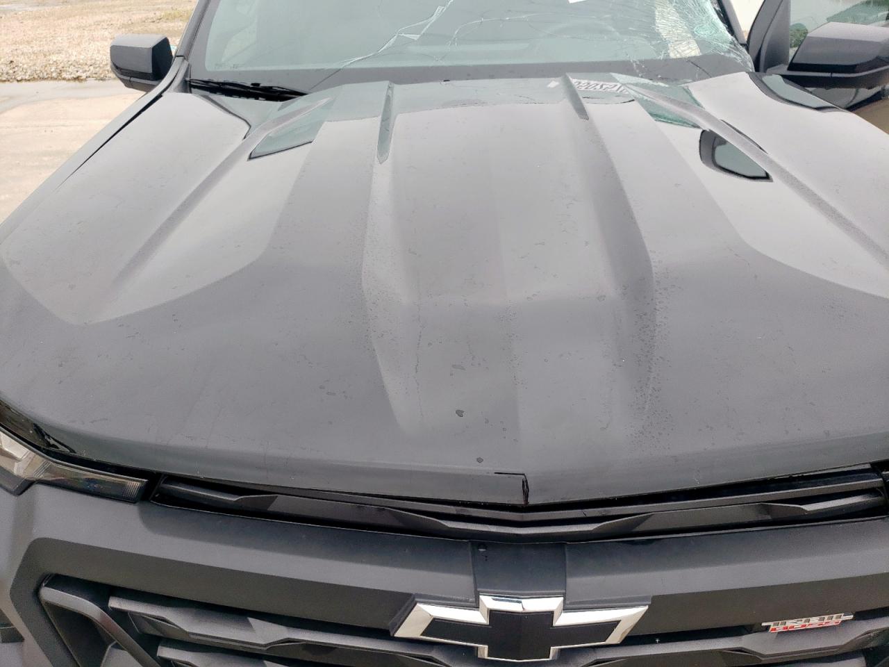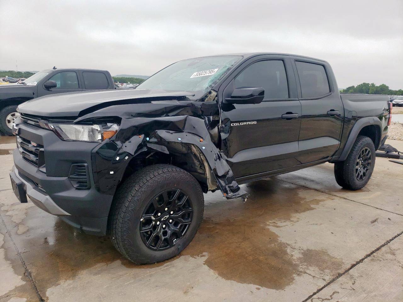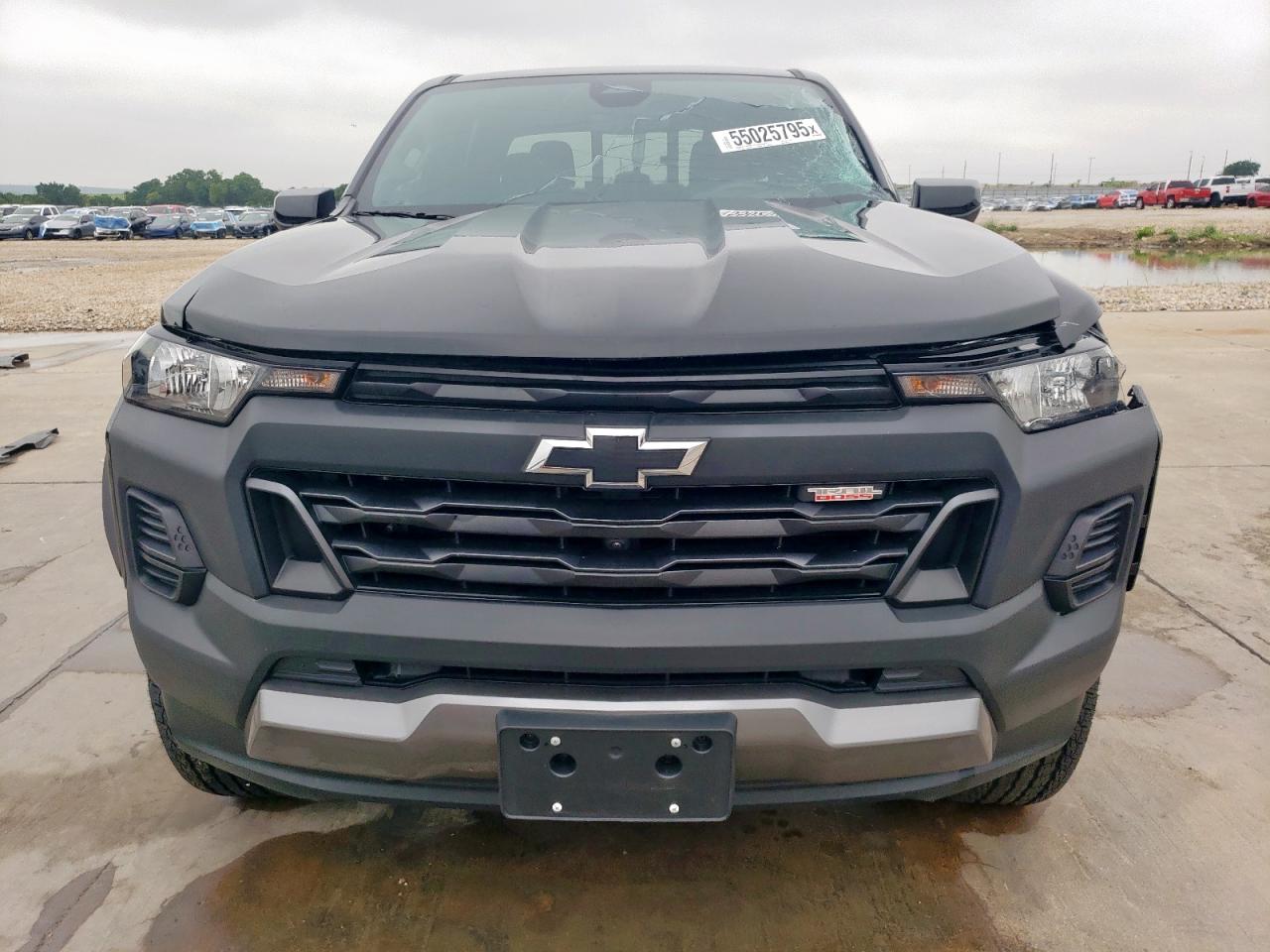 FairThis is a black 2024 Chevrolet Colorado T with significant front-end damage. The primary damage is to the front end, with no apparent secondary damage. The vehicle starts. The wheels appear to be in good condition, and the lights and glasses seem intact.