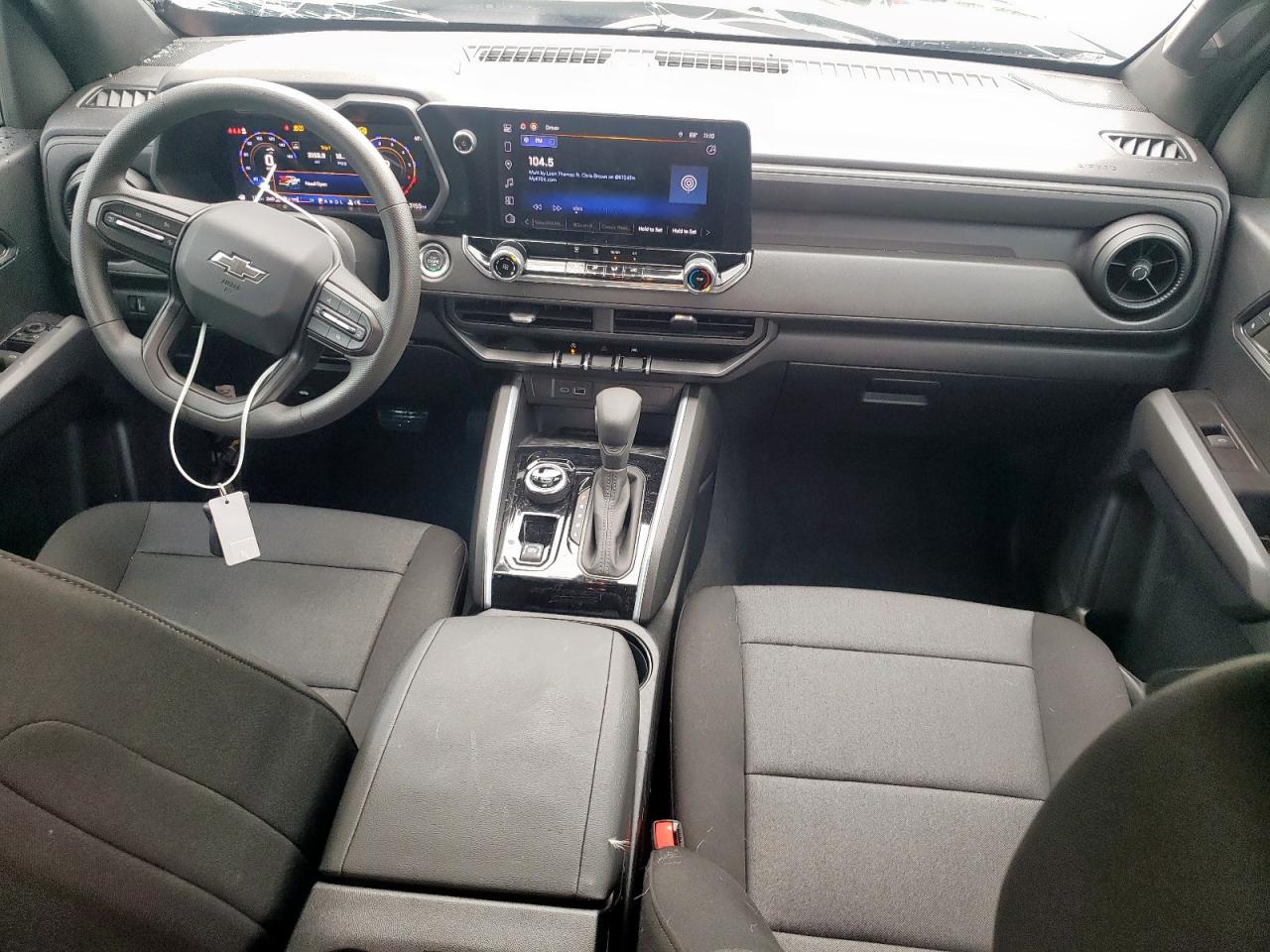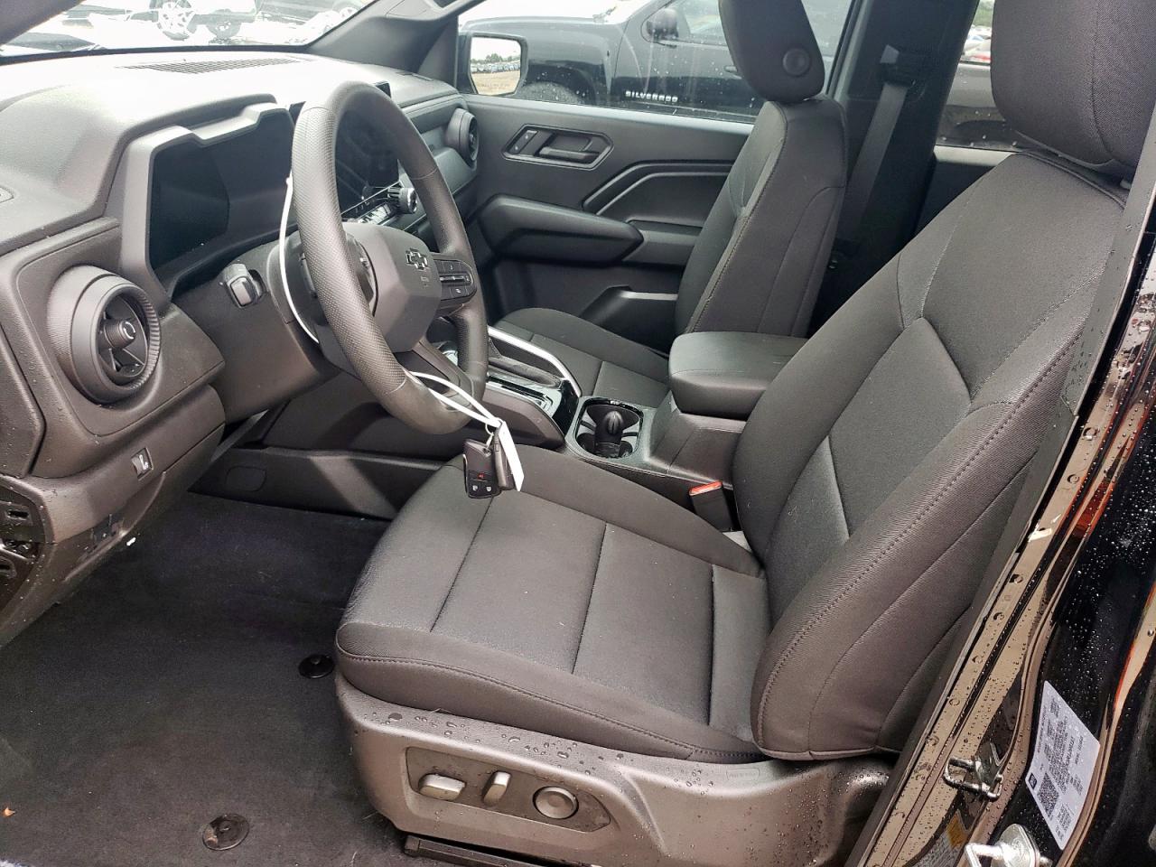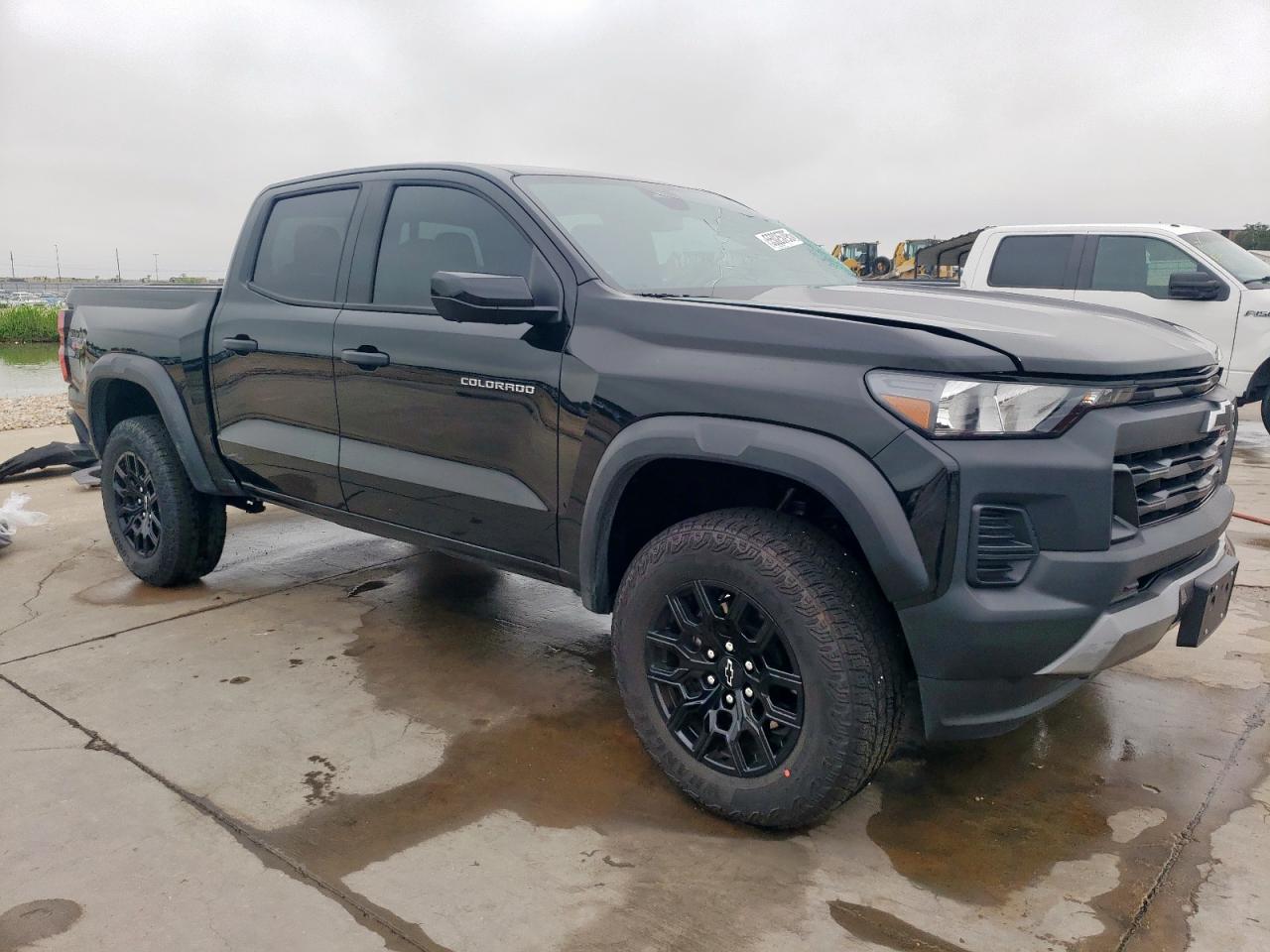 FairThis is a black 2024 Chevrolet Colorado T with significant front-end damage. The primary damage is to the front end, with no apparent secondary damage. The vehicle starts. The wheels appear to be in good condition, and the lights and glasses seem intact.