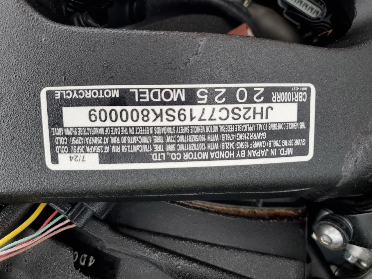 PoorThis is a heavily damaged 2025 Honda CBR1000RR motorcycle. The vehicle has sustained extensive damage across multiple components. The damage is widespread and significant, indicating a severe impact. The motorcycle appears to be beyond repair.