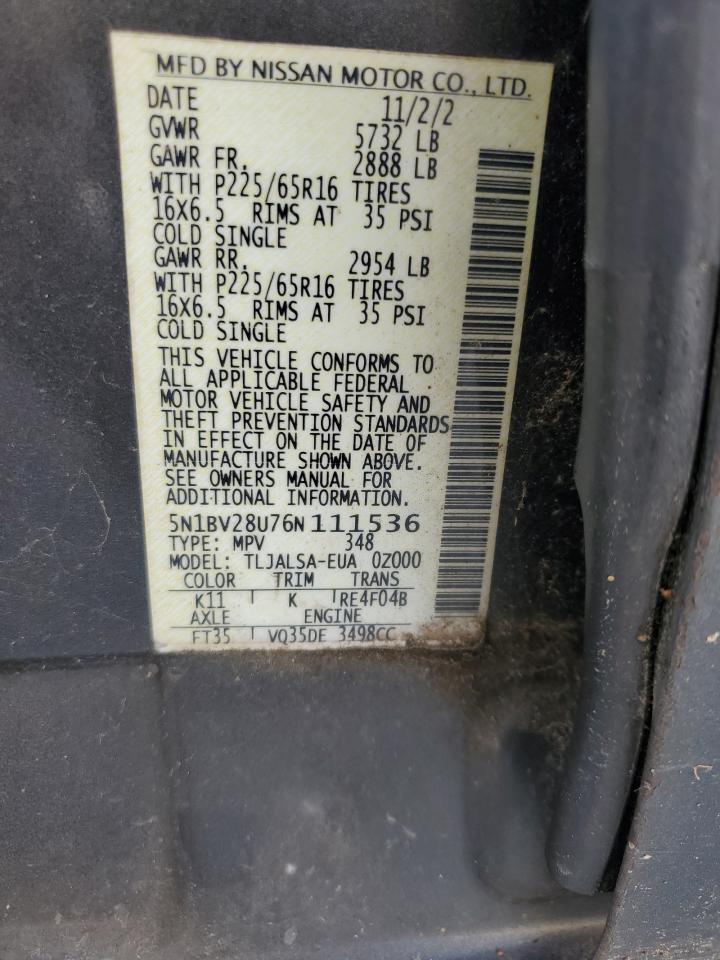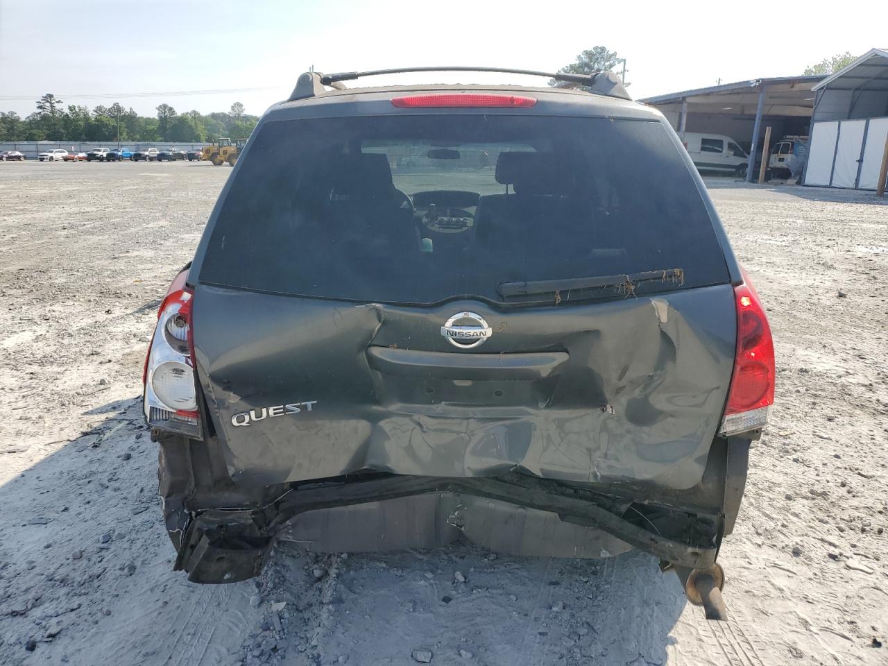 FairThe 2006 Nissan Quest S is a gray minivan showing signs of wear and tear. The primary damage is body damage all over, with no secondary damage. The vehicle is Run & Drive Verified. The car has visible damage to the body panels, especially at the rear. The wheels appear to be intact. The interior shows moderate wear, with no apparent airbag deployment. The exterior has moderate visible damage, and interior has minor visible damage consistent with age and mileage. This vehicle is drivable and may require some repairs.