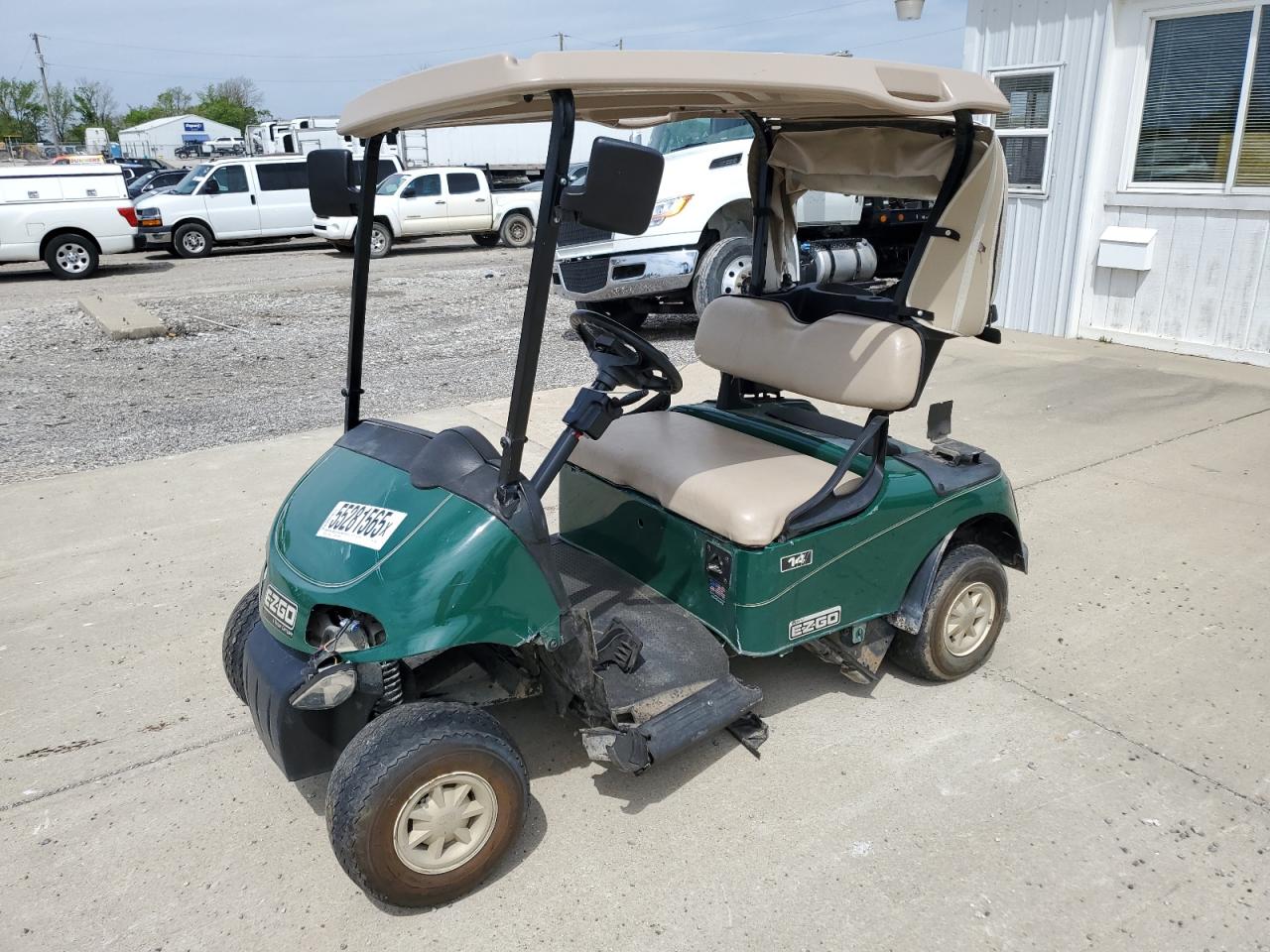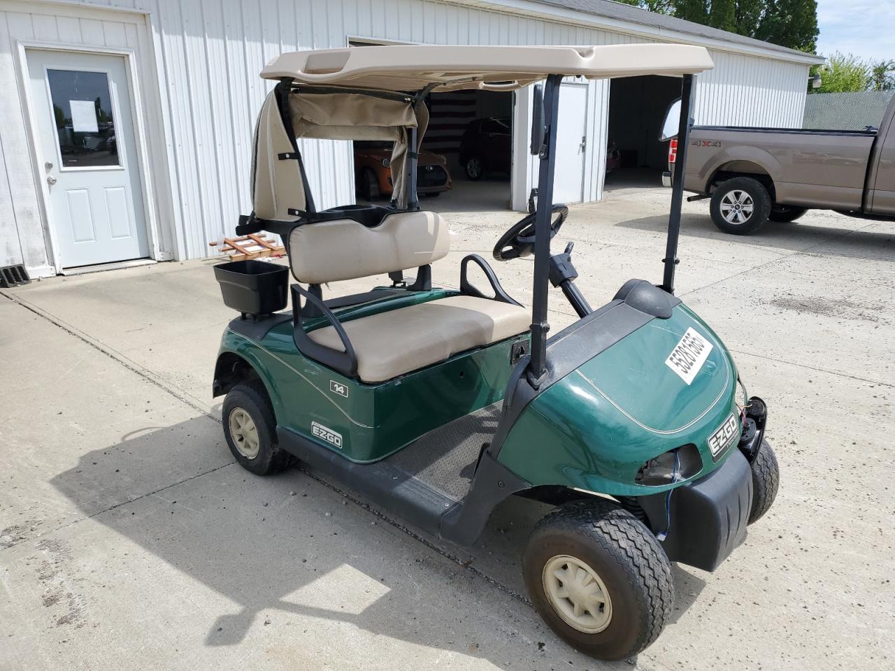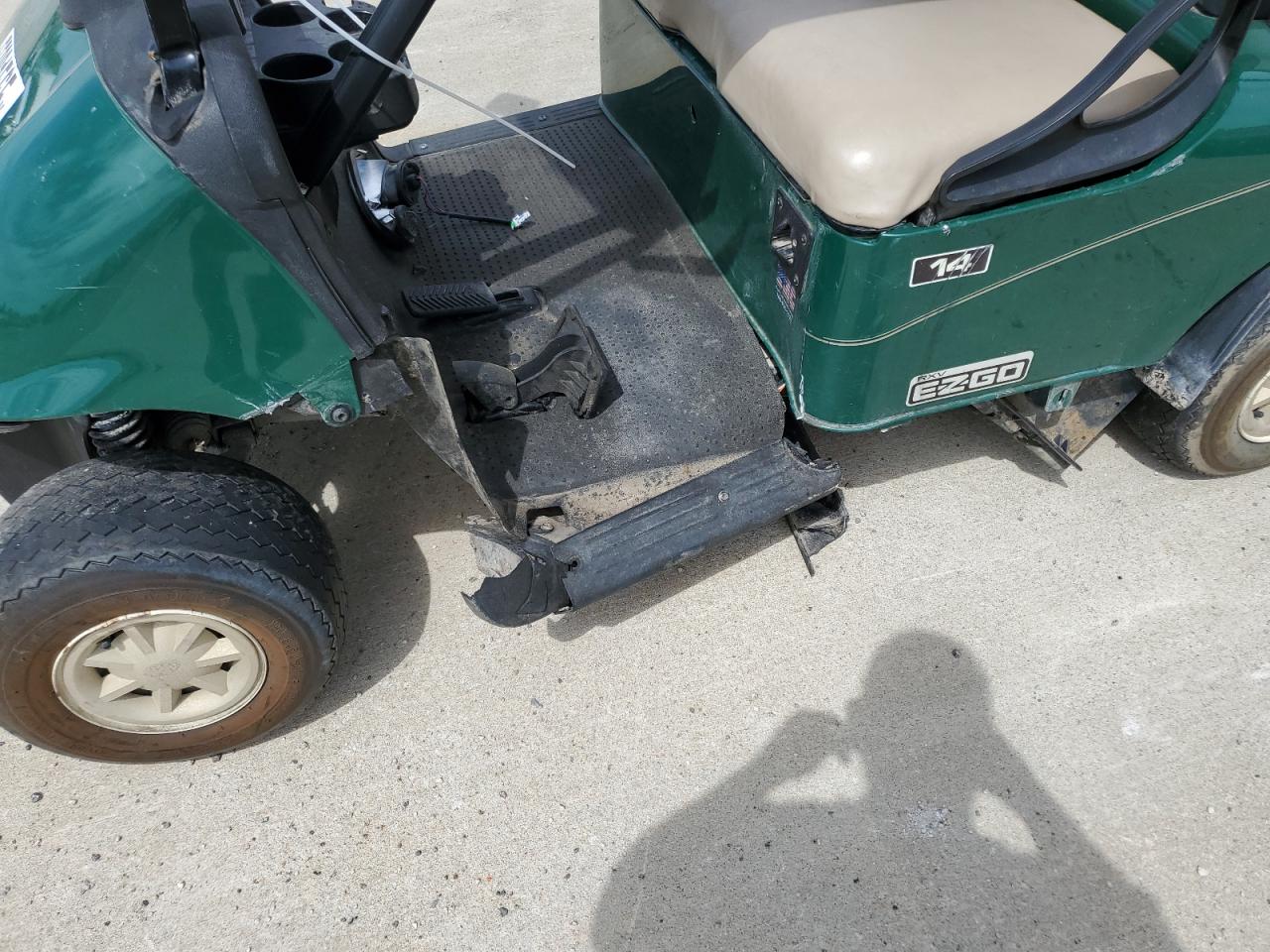 FairThis is a green 2022 EZGO golf cart. The primary damage is to the front end, with secondary damage to the side. The vehicle starts. The golf cart has moderate visible damage, particularly to the front, and some damage to the side panels. Wheels appear to be in good condition. The interior shows minor wear and tear.