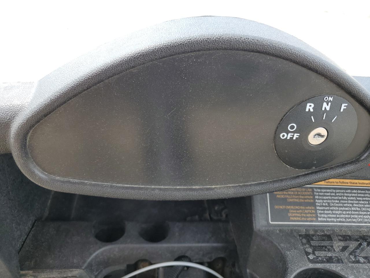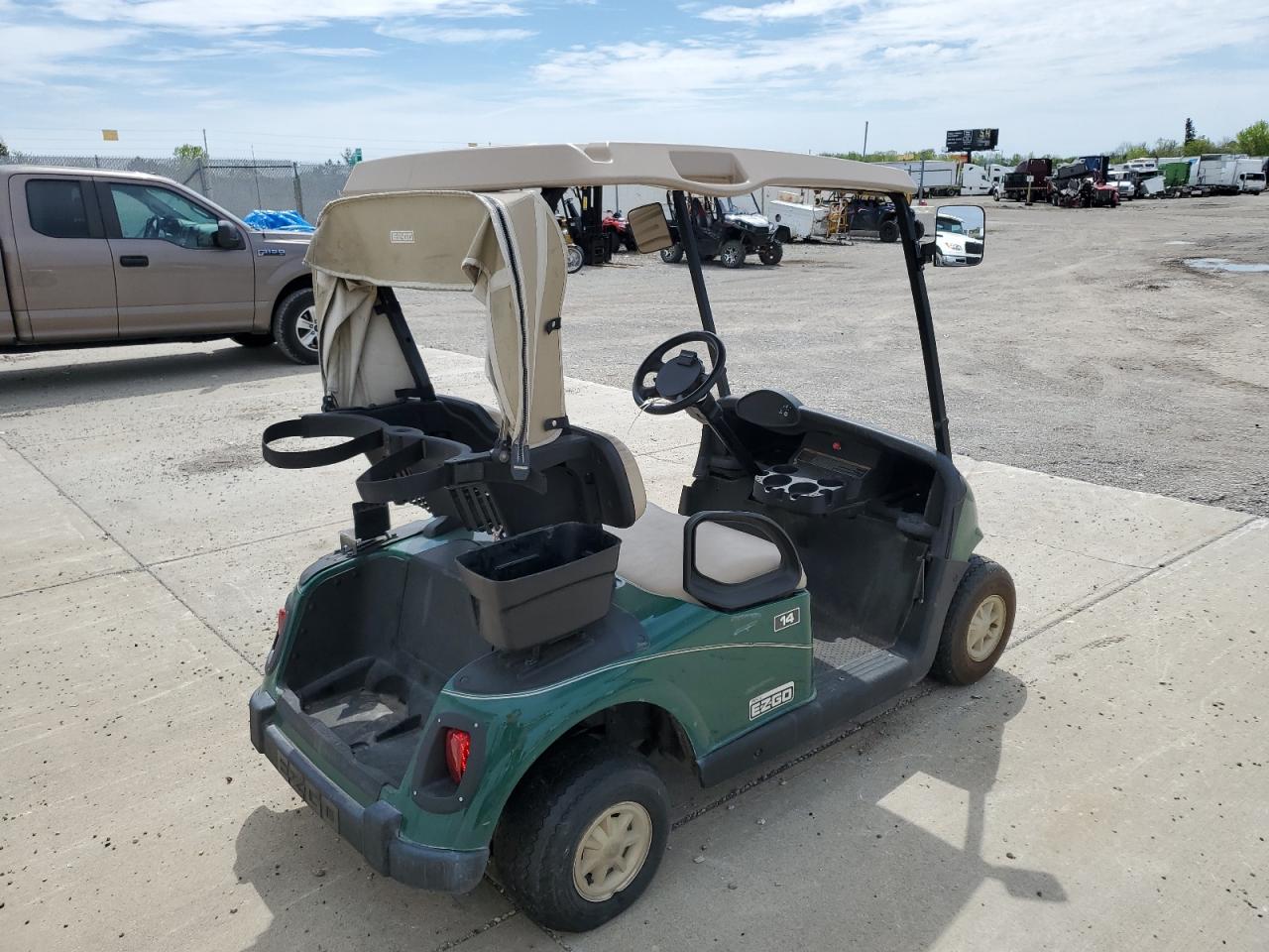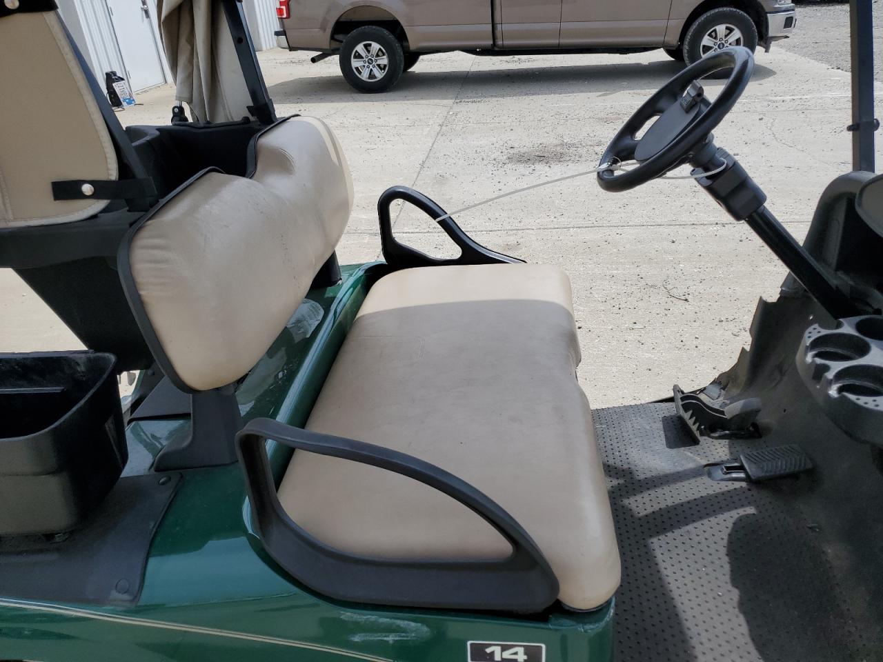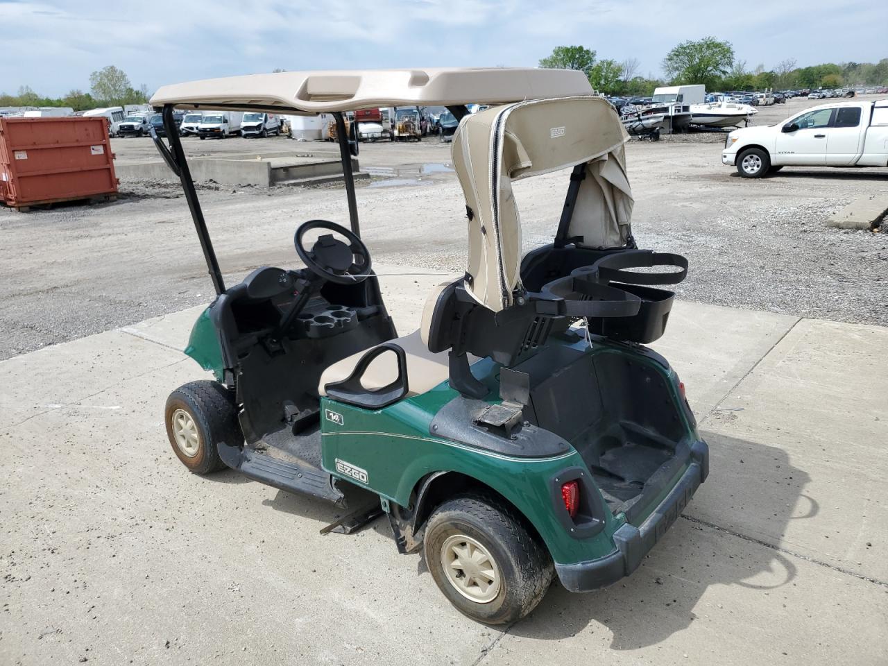 FairThis is a green 2022 EZGO golf cart. The primary damage is to the front end, with secondary damage to the side. The vehicle starts. The golf cart has moderate visible damage, particularly to the front, and some damage to the side panels. Wheels appear to be in good condition. The interior shows minor wear and tear.