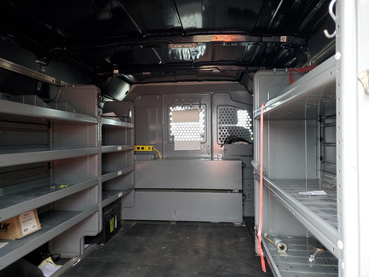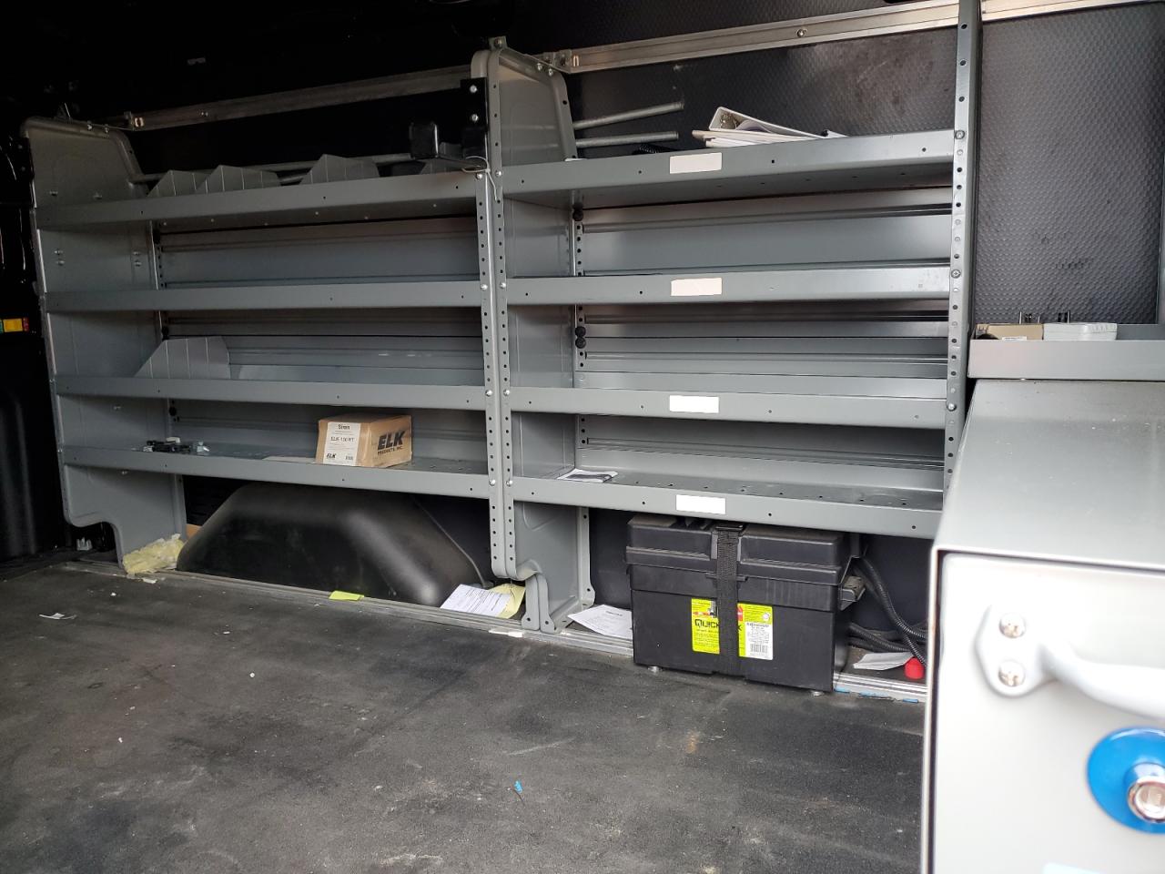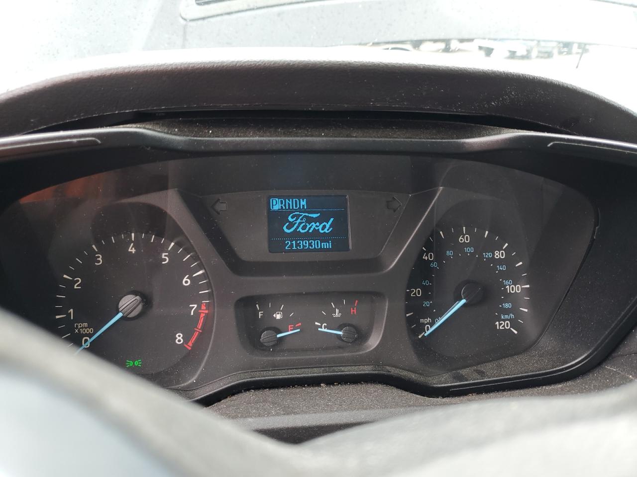 The Ford Transit exhibits rear-end and side body damage. The extent of the damage suggests that repairs are needed to restore the vehicle's condition.