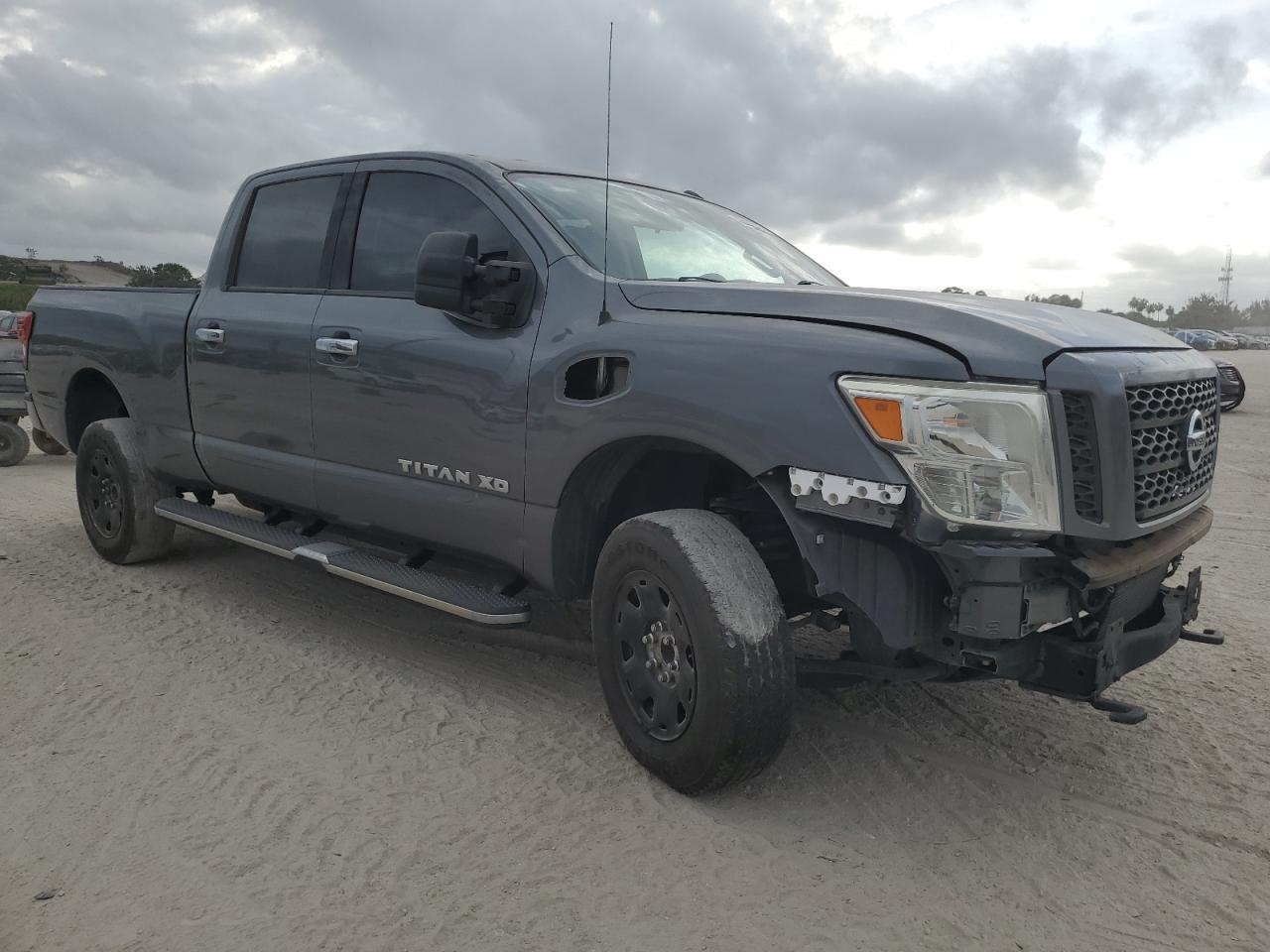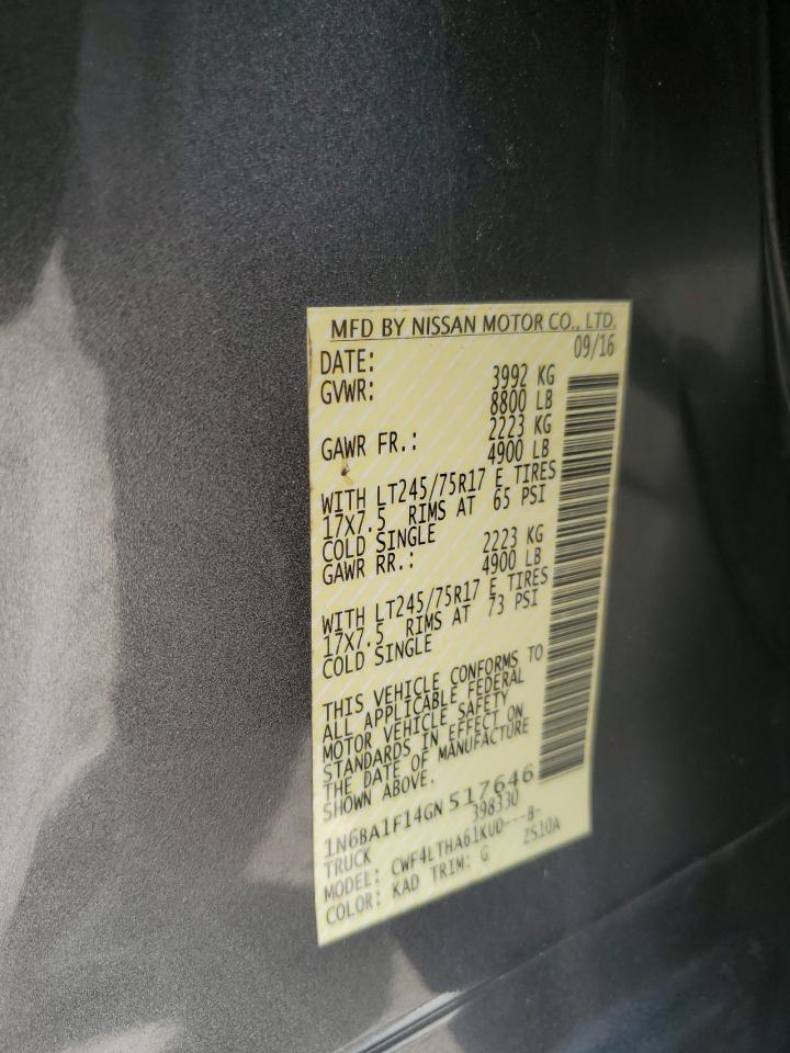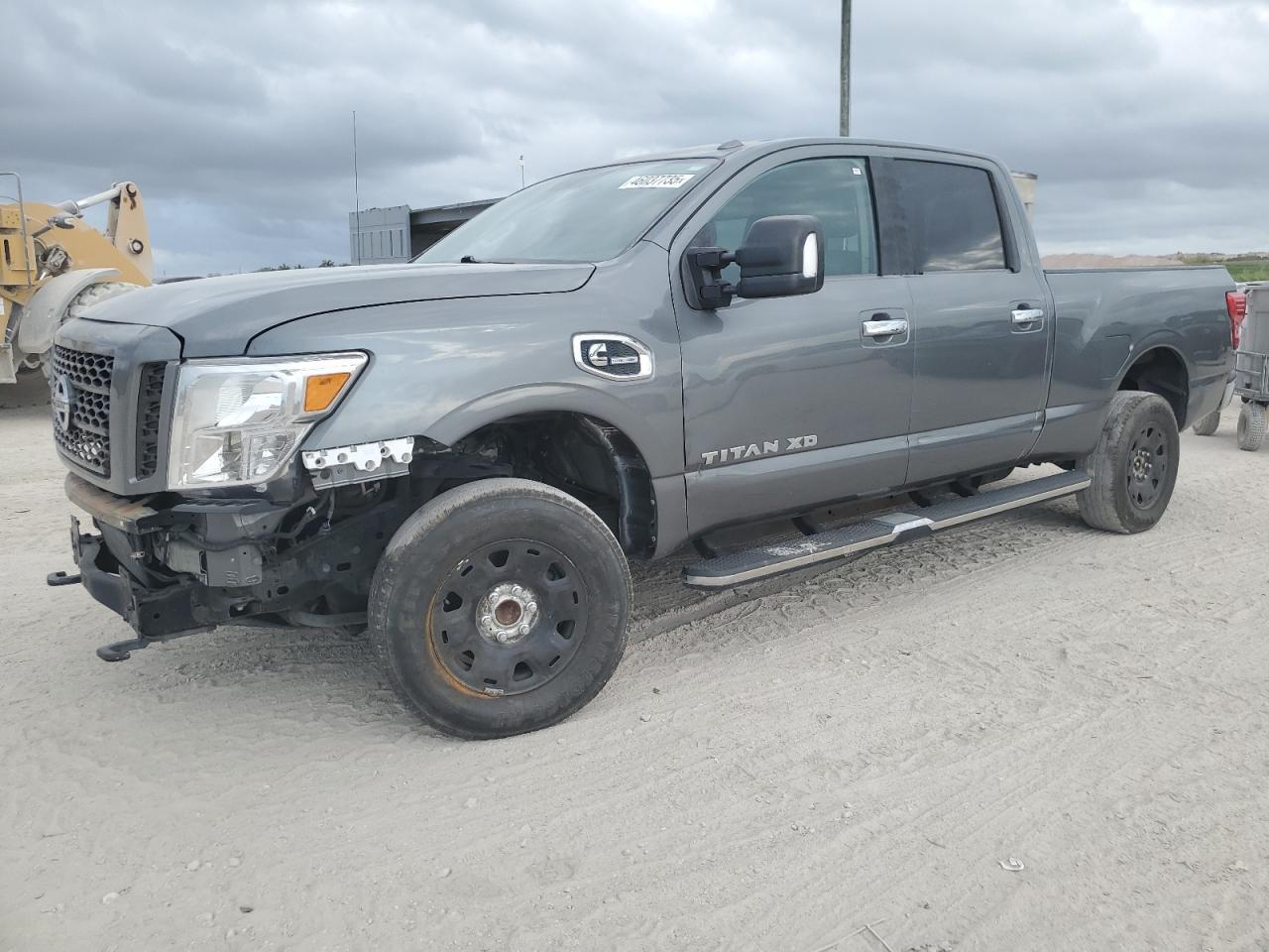 Fair2016 NISSAN TITAN XD S, gray color, with Run & Drive Verified status. The primary damage is to the FRONT END, and secondary damage includes MINOR DENT/SCRATCHES. The vehicle's exterior condition is rated as Fair due to the front-end damage. The interior shows some wear, with a Good rating. The car is drivable despite the damage. The car itself is a heavy-duty pickup known for its robust build and towing capabilities.