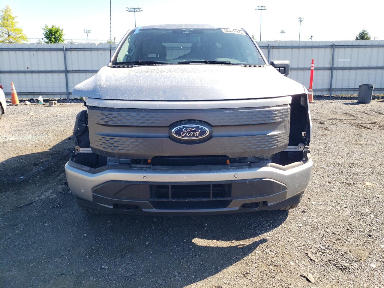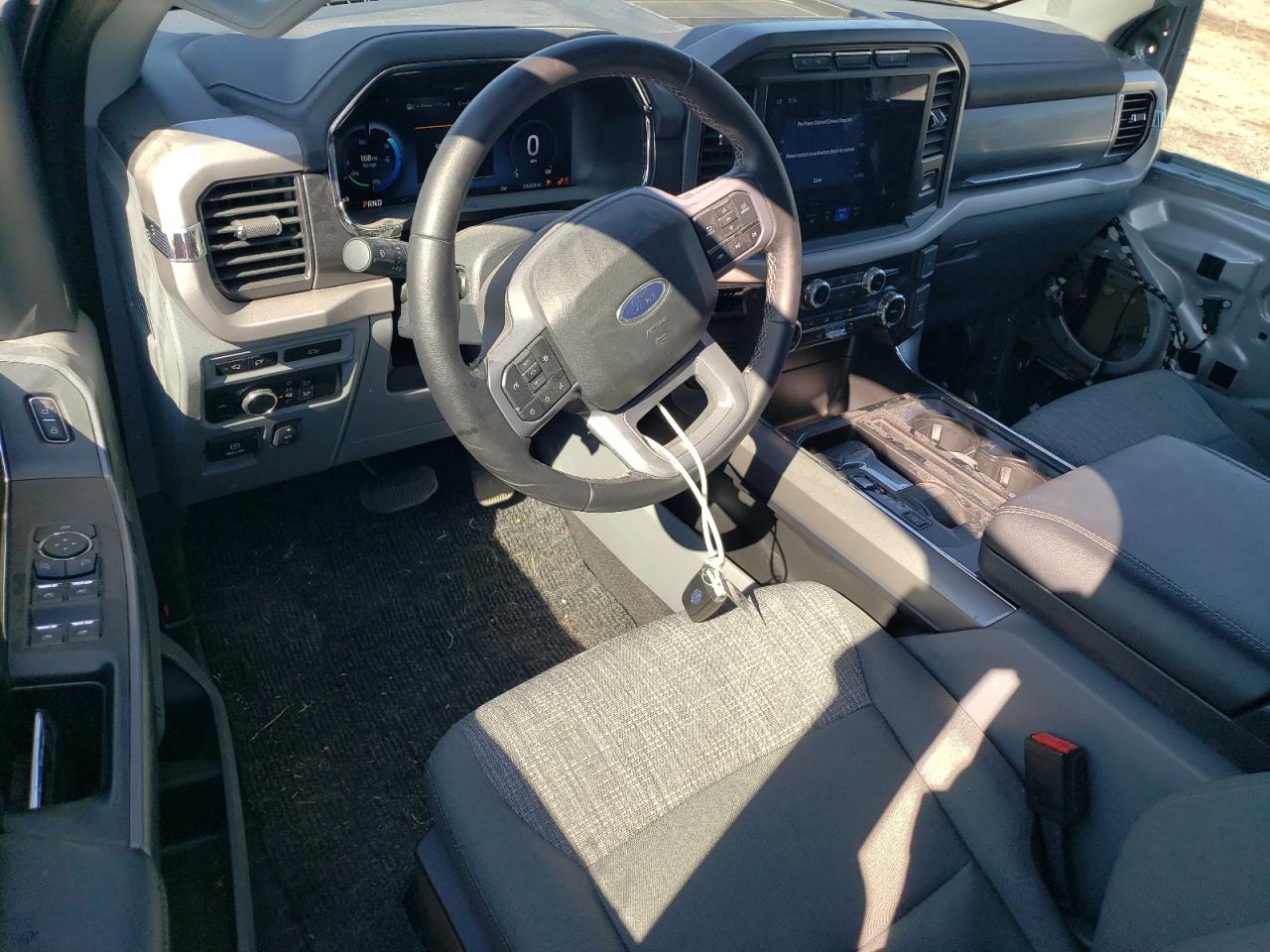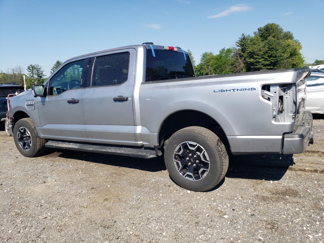 FairThe 2023 Ford F-150 Lightning in silver shows significant damage, primarily to the front and rear ends. The front end has extensive damage, with components missing, while the rear end also shows damage. The interior appears to be in decent condition, with only moderate signs of wear. The wheels appear to be intact, and the vehicle's start code is 'Run & Drive Verified'.