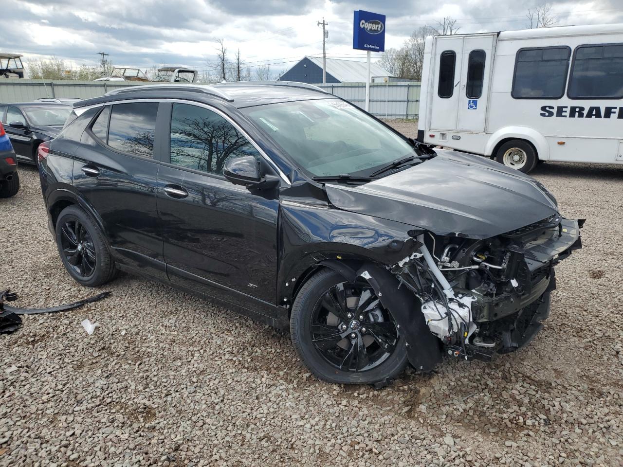 FairThe black 2025 Buick Encore GX has sustained significant front-end and side damage. The primary damage is to the front end, with secondary damage on the side. The images show the car's body severely impacted, including visible damage to the front and side panels. The wheels appear to be intact, but the lights and glasses could have sustained damage. The interior presents moderate wear and tear with no airbag deployment. The car's overall condition is fair, indicating that the car needs repair.