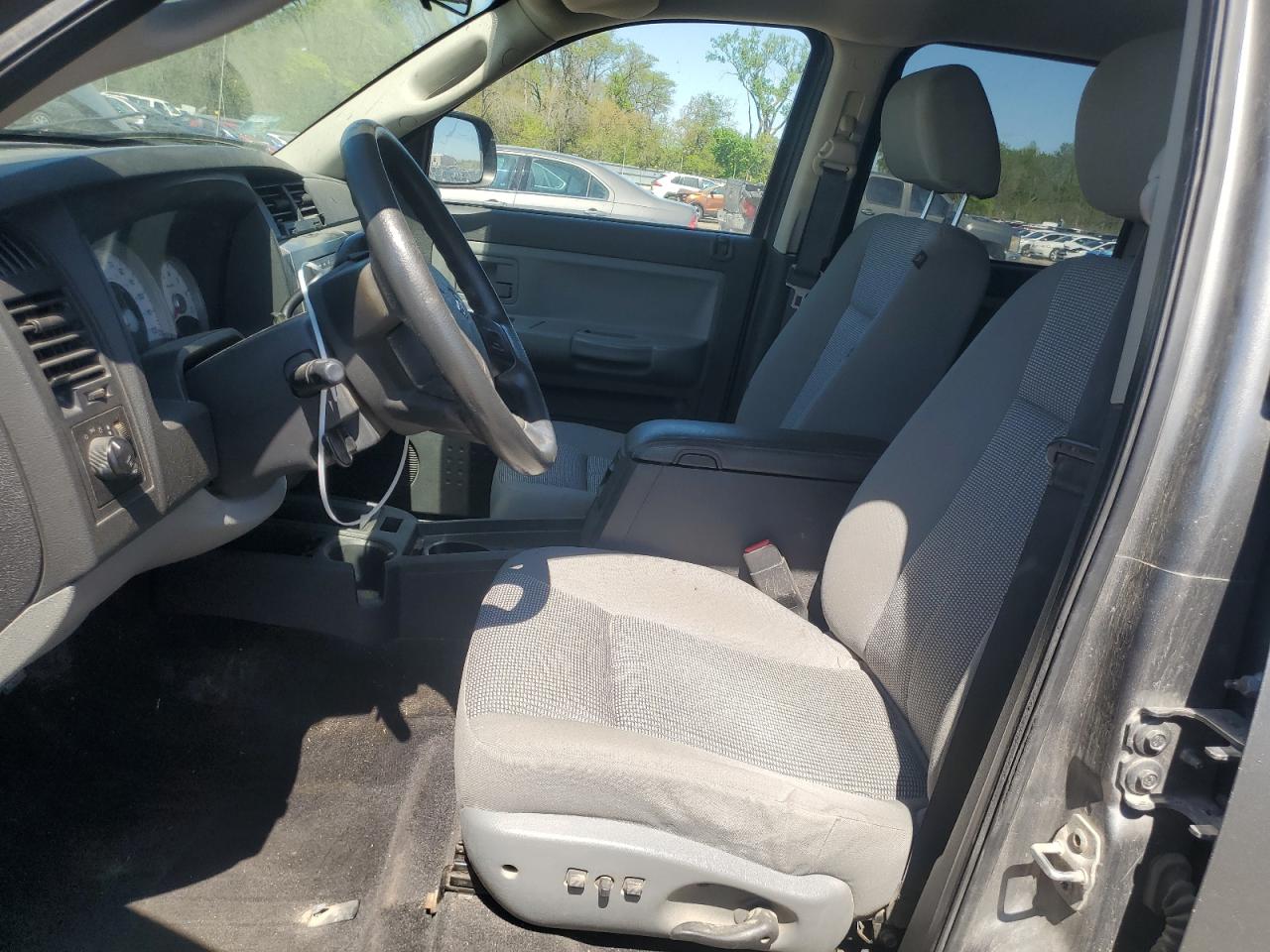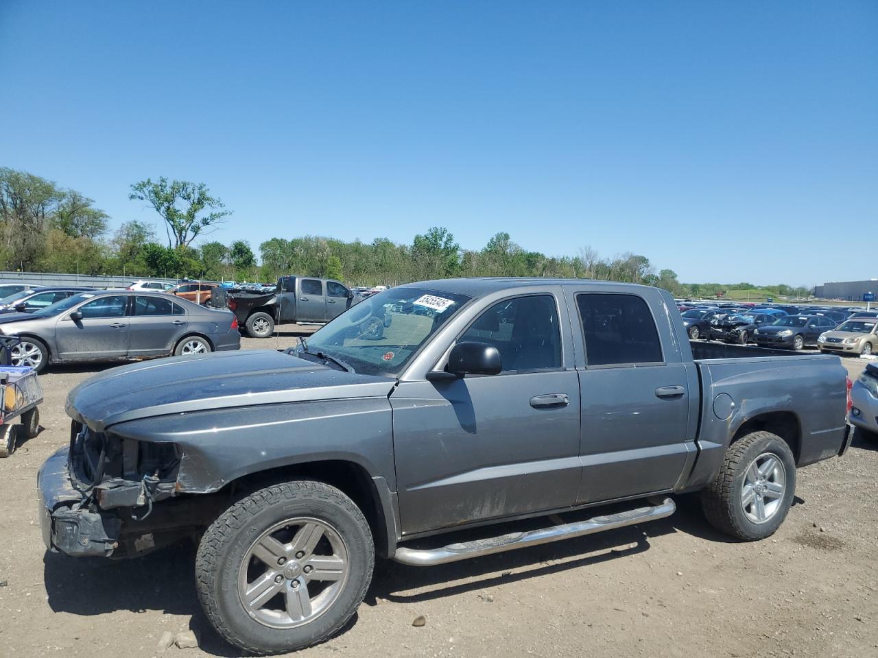 FairThis is a 2006 Dodge Dakota Quad Cab with significant front-end damage, classified as Run & Drive Verified. The vehicle is gray, and the primary damage is to the front end, with no secondary damage reported. The car shows wear and tear consistent with its age and mileage. Wheels, lights, and glasses appear to be in acceptable condition, but the front-end damage impacts the overall aesthetic and functionality. The interior shows minor wear and tear. Airbags status is unknown.