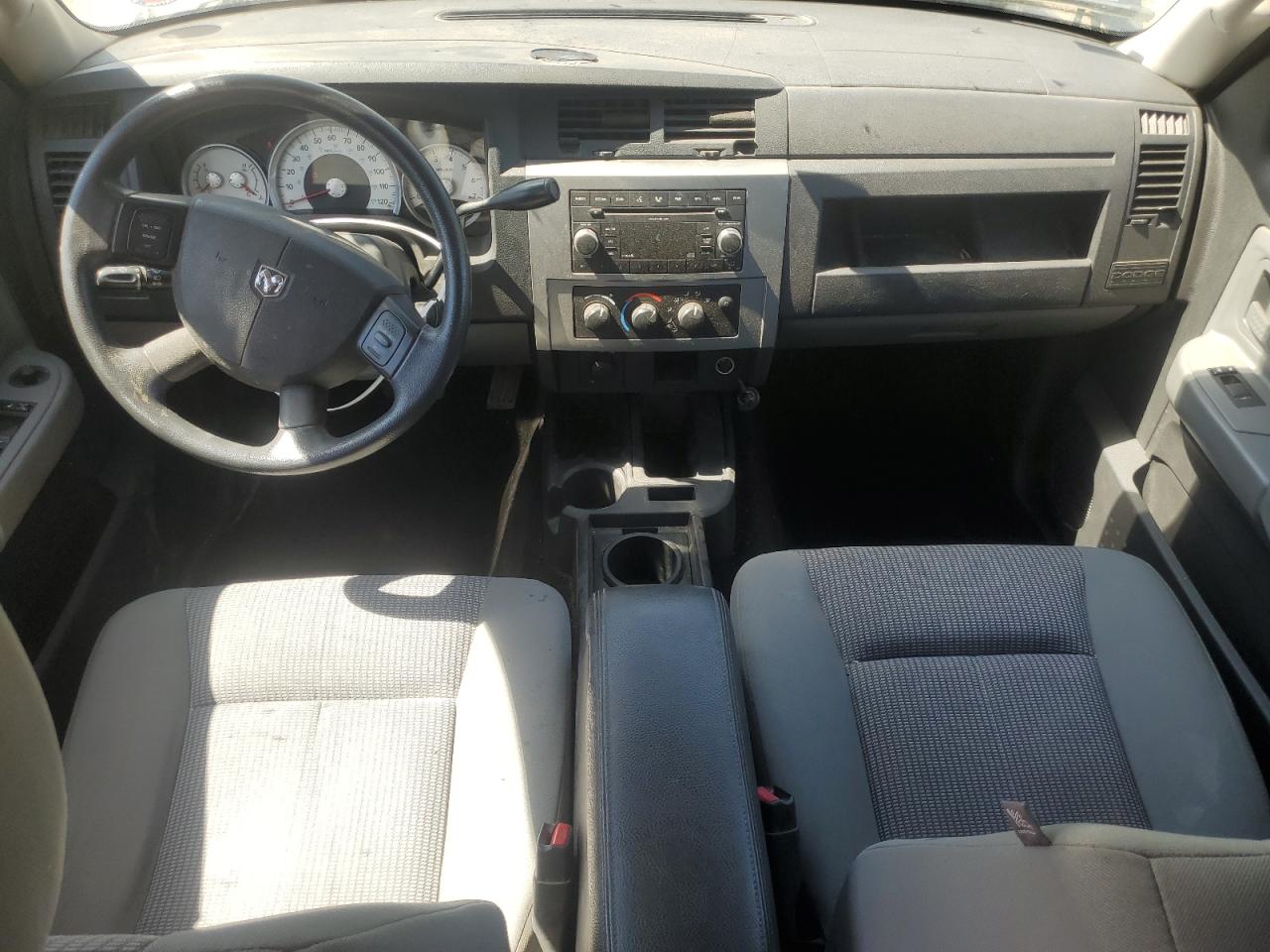 The Dodge Dakota has front-end damage, with body panel damage. Wheels are fine. The vehicle is drivable but needs repair.