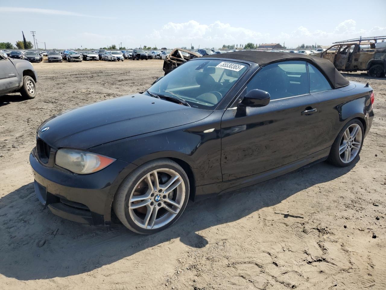 GoodThis is a 2010 BMW 135i convertible in black. The primary damage is minor dents and scratches, with no significant secondary damage. The car starts and drives, as verified. Overall, the car presents with minor cosmetic and body damage. The interior shows signs of wear consistent with its age and mileage. The wheels and lights appear to be in good condition.