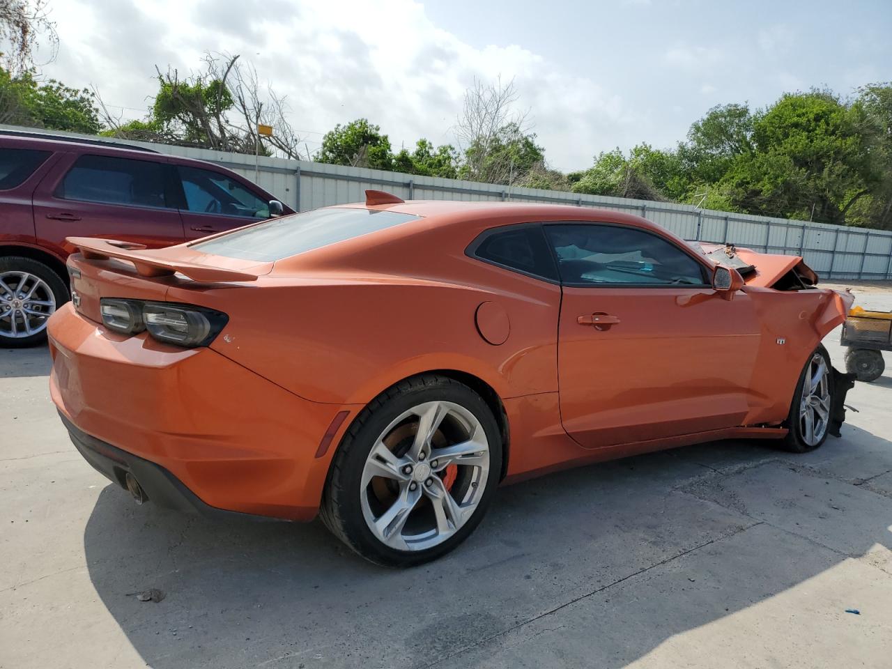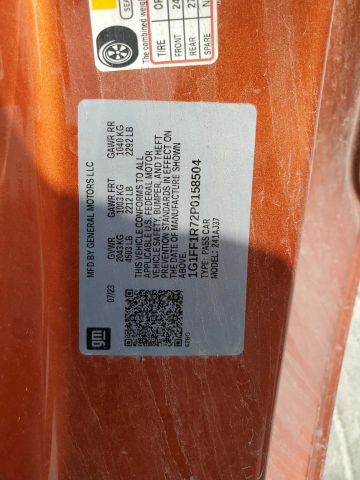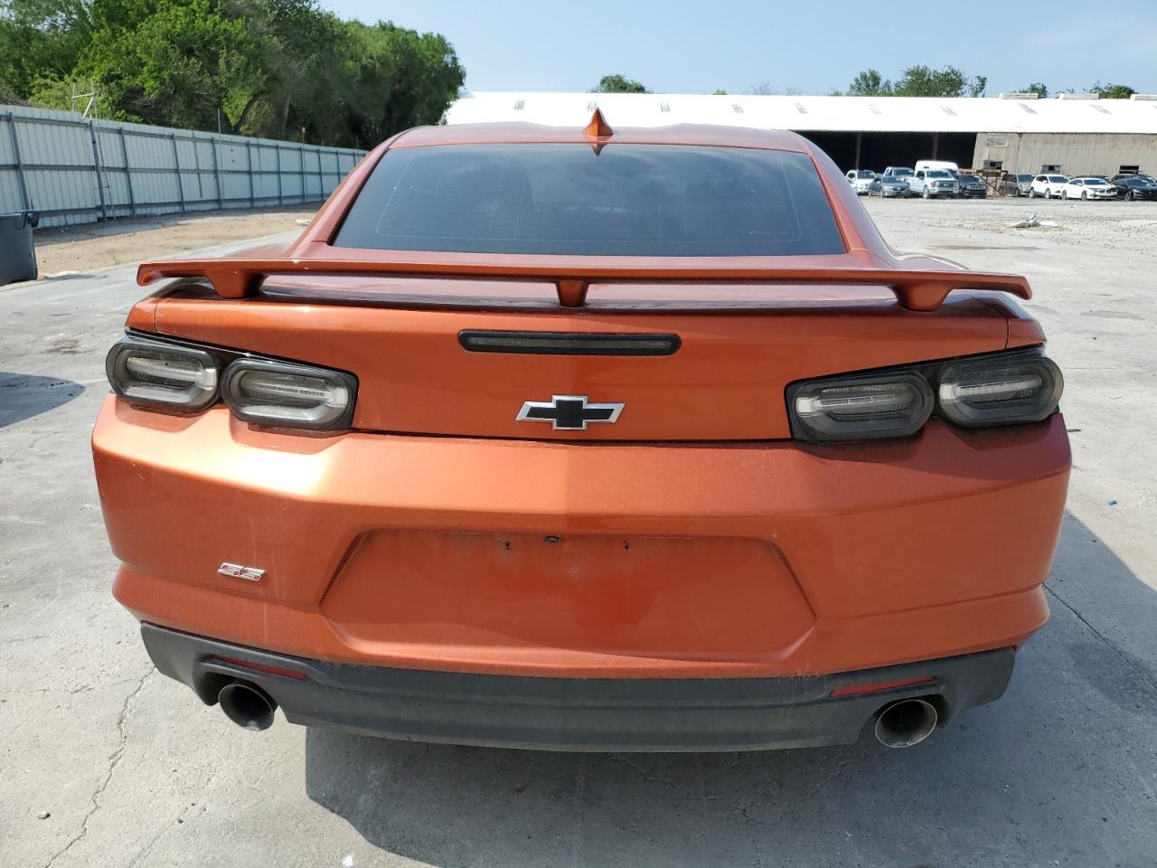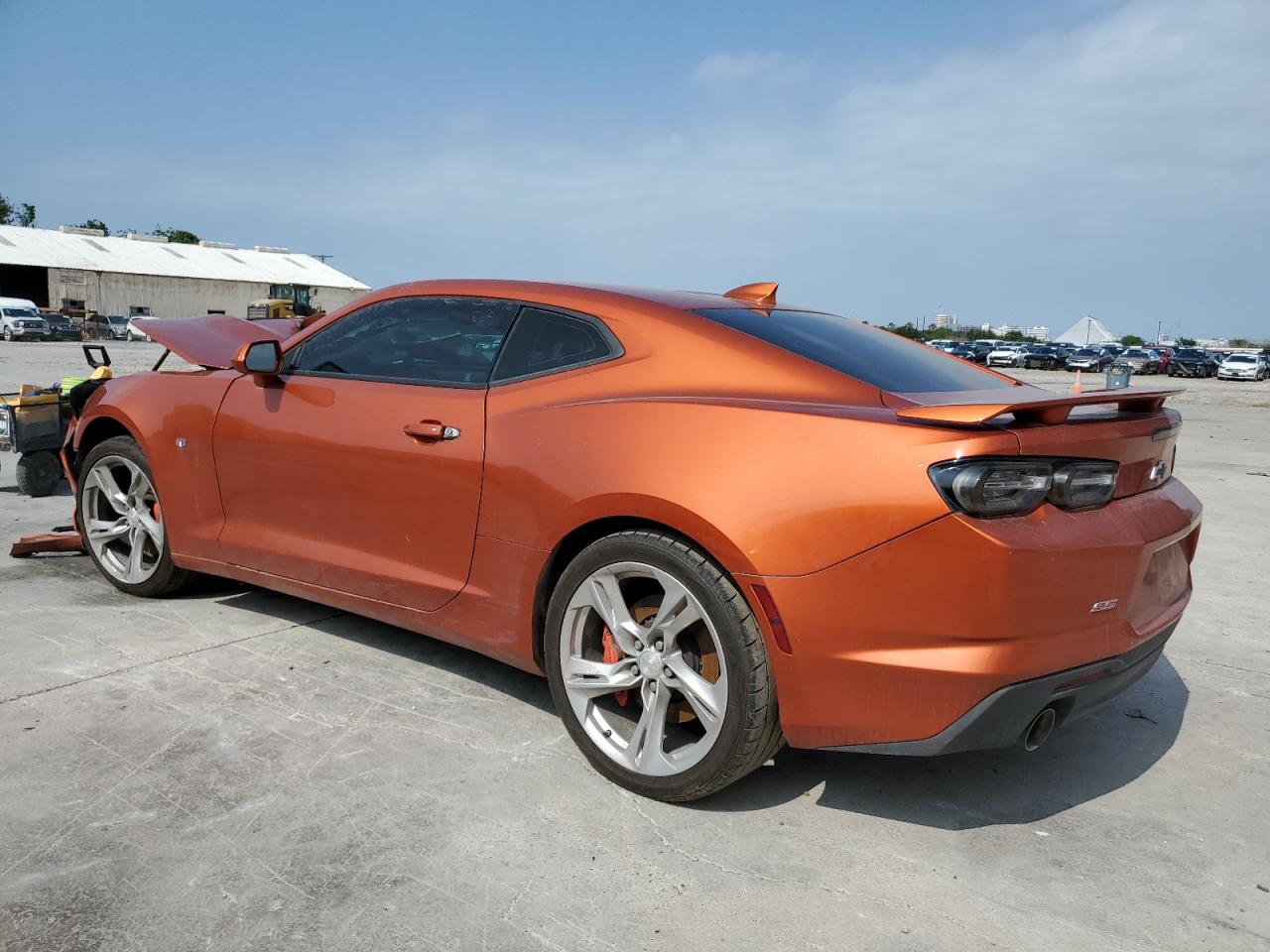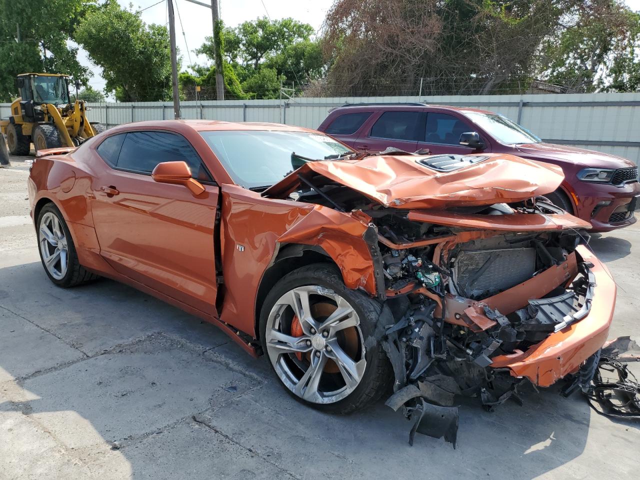 PoorThe 2023 CHEVROLET CAMARO LT1 in orange displays significant damage, primarily to the front end. The vehicle has sustained significant damage. The wheels appear to be intact, but the front lights and windshield likely require replacement or repair. Interior shows deployed airbags, indicating a forceful impact. The odometer shows 34112 miles. This car may not be drivable as is.