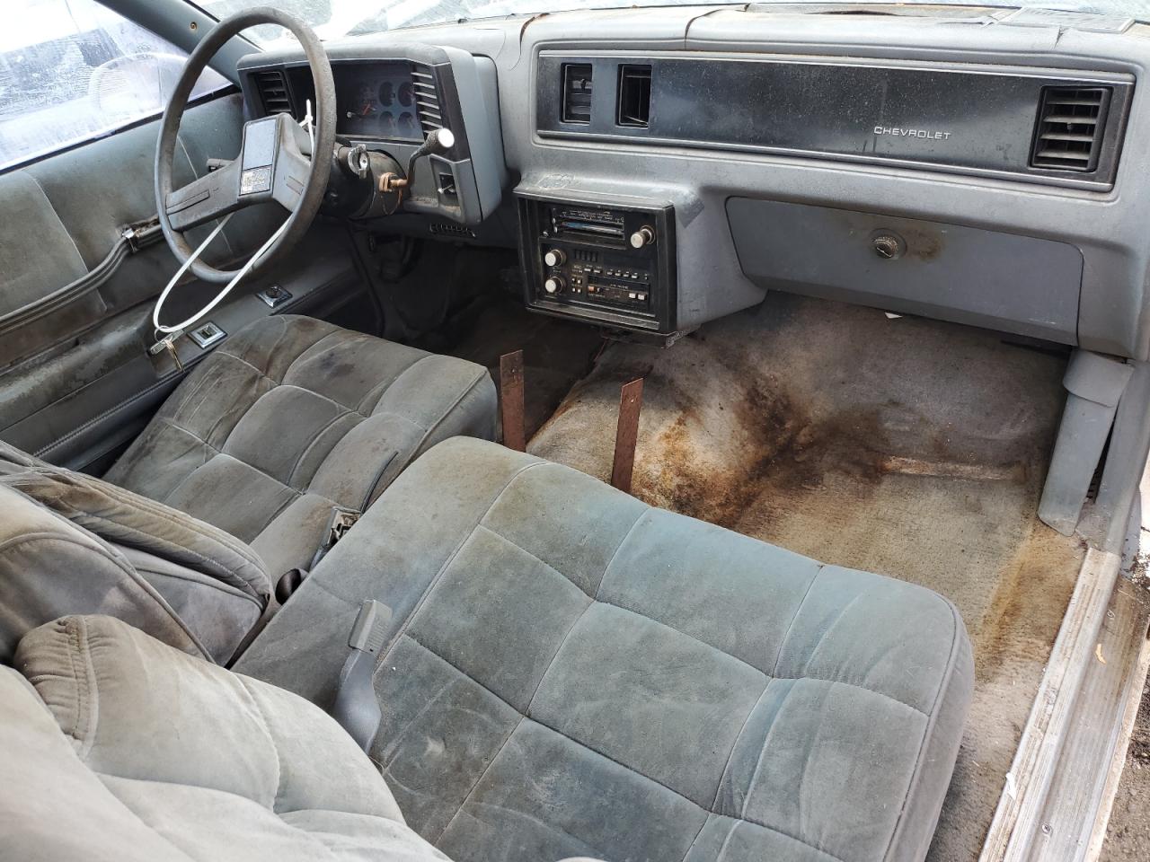 FairThis 1988 Chevrolet Monte Carlo shows signs of wear and tear. The exterior exhibits minor dents and scratches with visible damage to the body panels. The white paint is faded, and the black roof shows significant deterioration. The interior presents moderate visible damage, with worn upholstery and a generally aged appearance. The wheels and lights seem to be in acceptable condition, while the windows and glasses look to be in good condition. This classic Monte Carlo requires some refurbishment to regain its former glory. It may require replacement elements like roof, trim or upholstery.