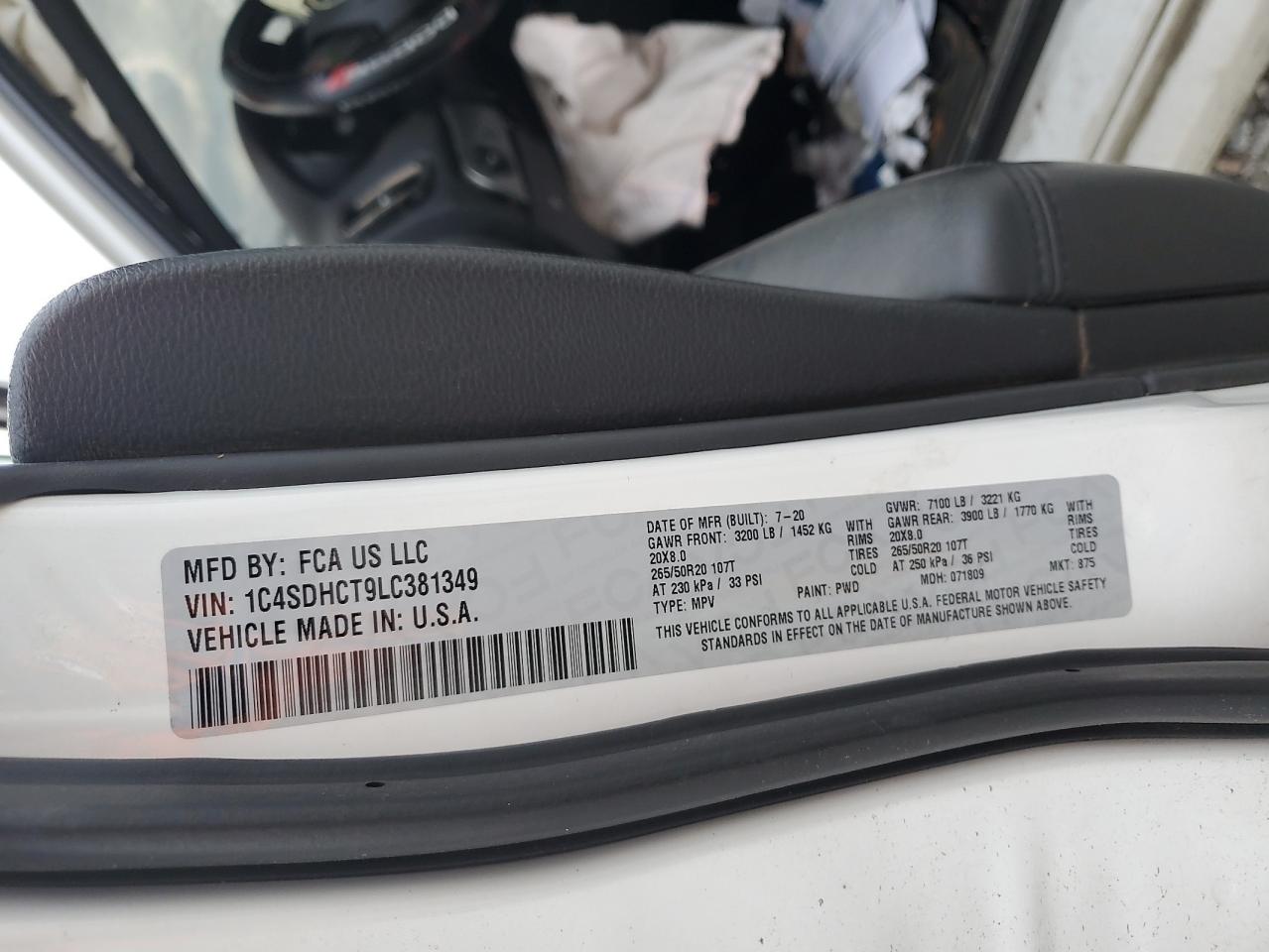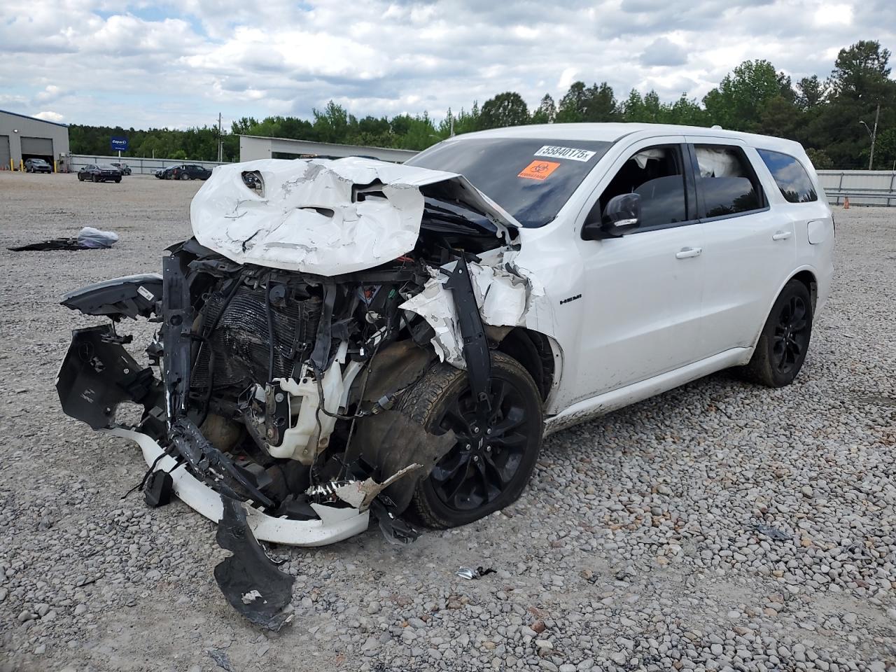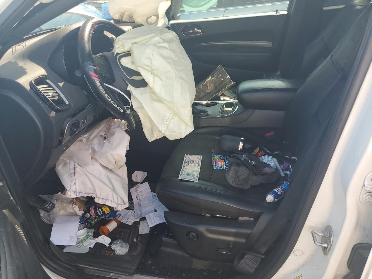 PoorThe 2020 Dodge Durango R/T has sustained significant front-end and side damage. The primary damage is to the front end, with secondary damage along the side. The white-colored SUV shows extensive damage, indicating a severe impact. The wheels appear to be intact, but the front end is severely compromised, including the lights and front panels. Airbags have deployed inside the vehicle, and the interior is in disarray. The dashboard shows an error message. This Durango requires considerable repair and is not drivable.