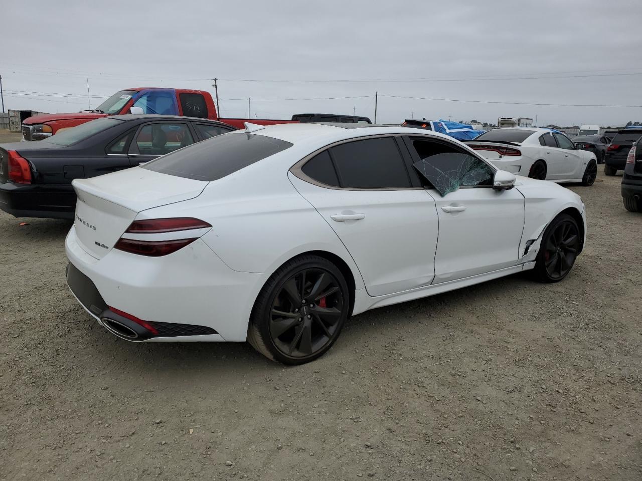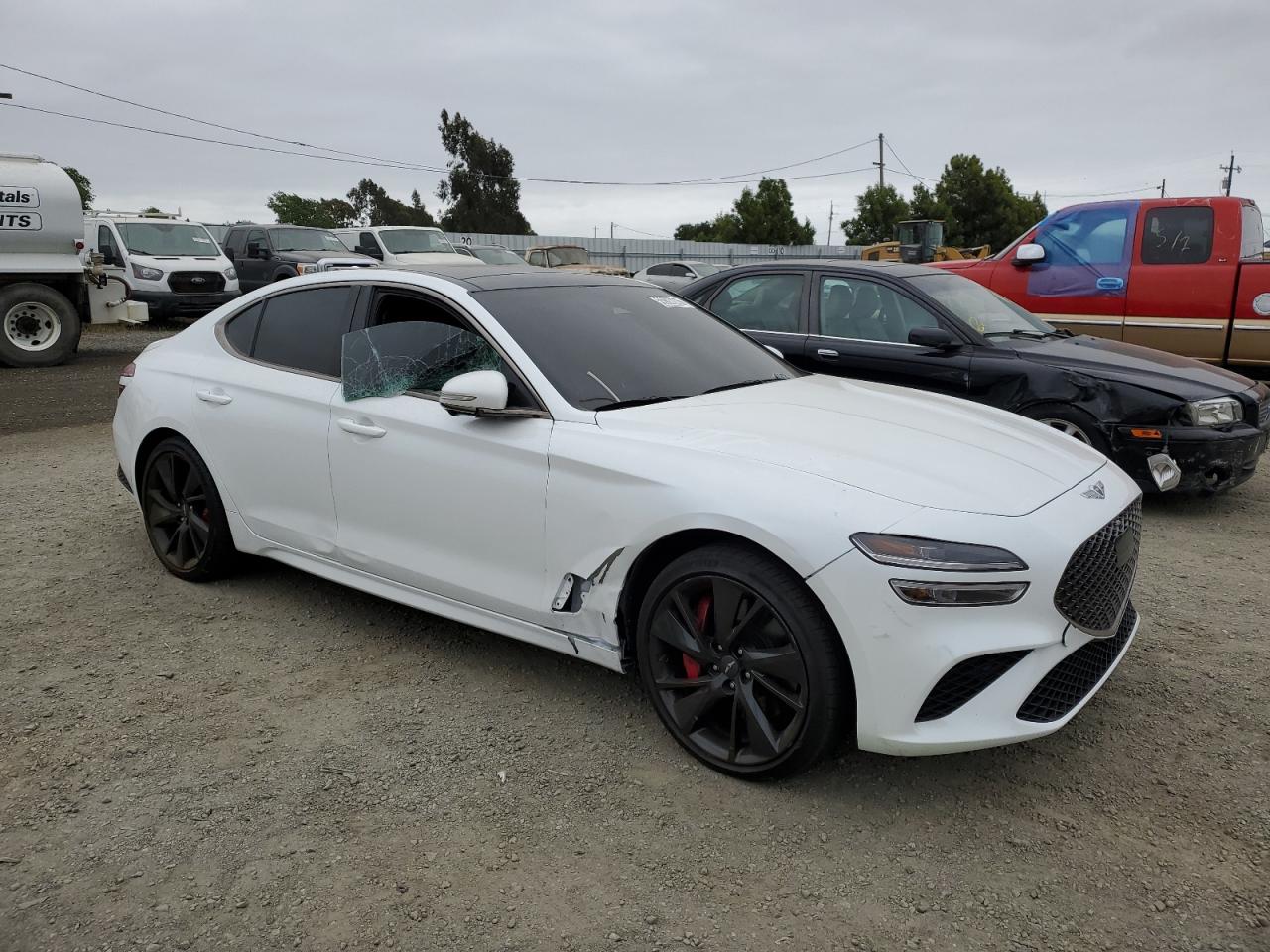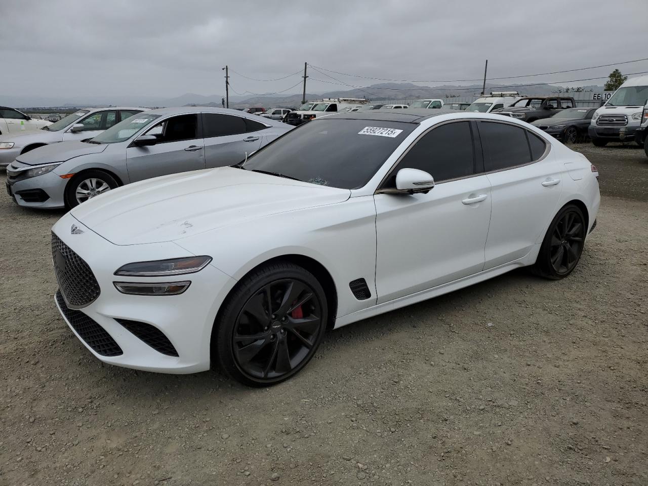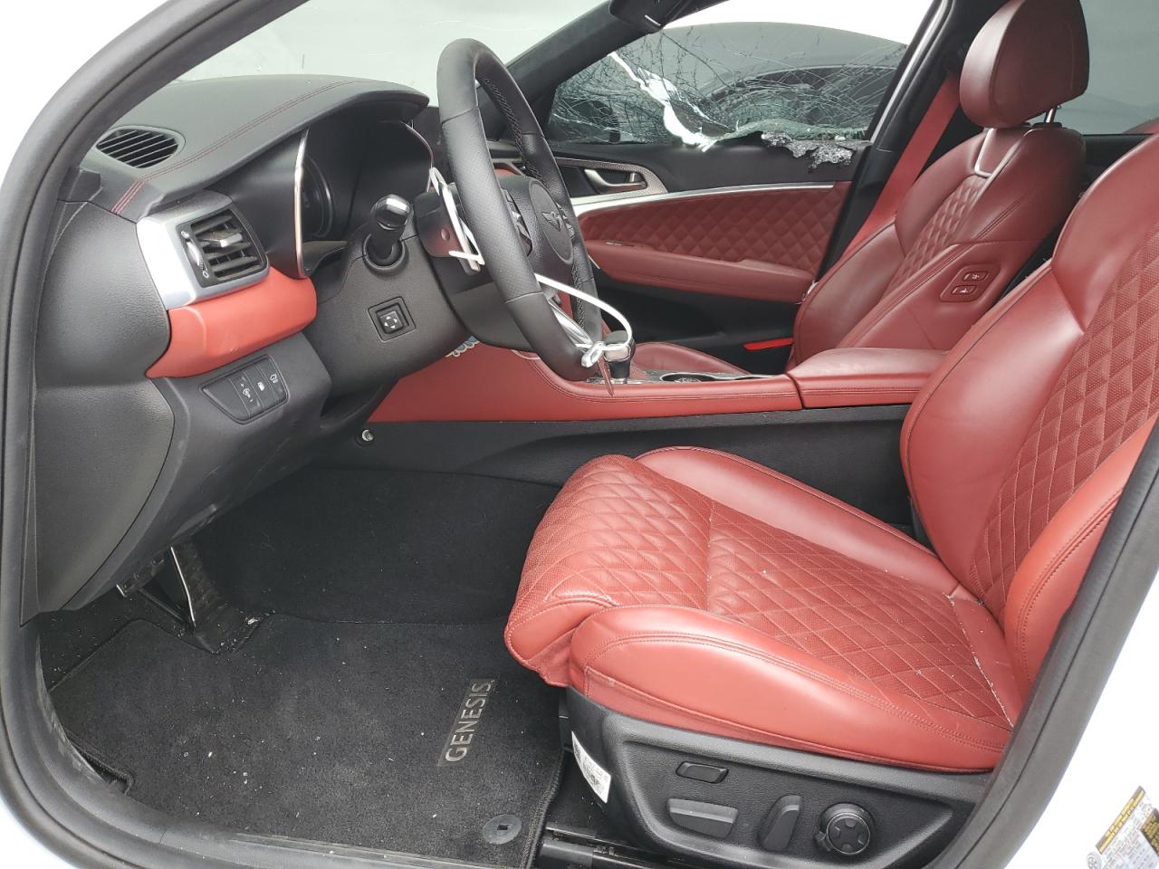 FairThis is a white 2023 GENESIS G70 BASE, which has suffered from vandalism. The vehicle's exterior damage includes damage to the side panels. The interior also has damages. The car is not drivable.
