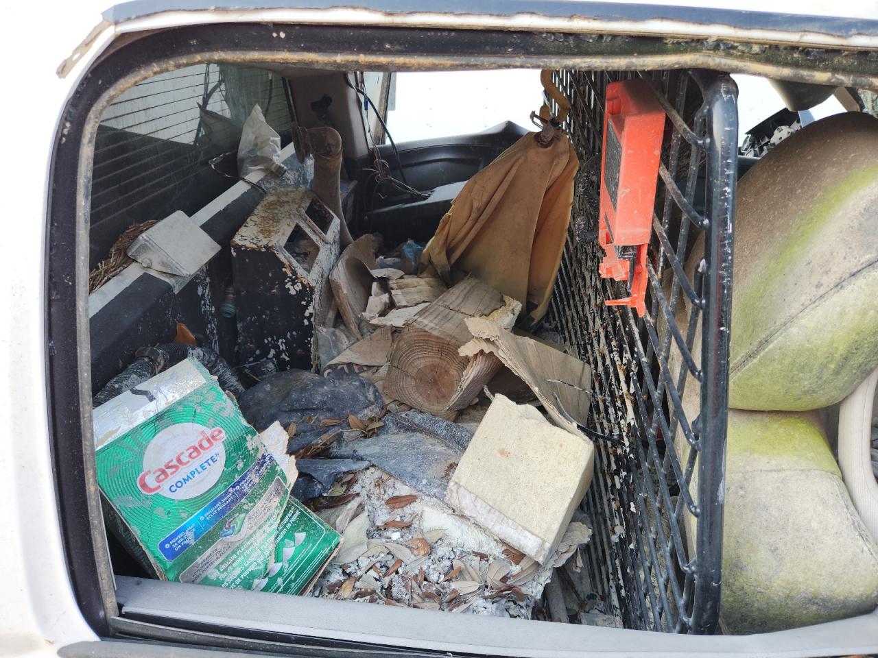 The vehicle has extensive body damage. Both the exterior and interior components are damaged. The windshield and lights are damaged