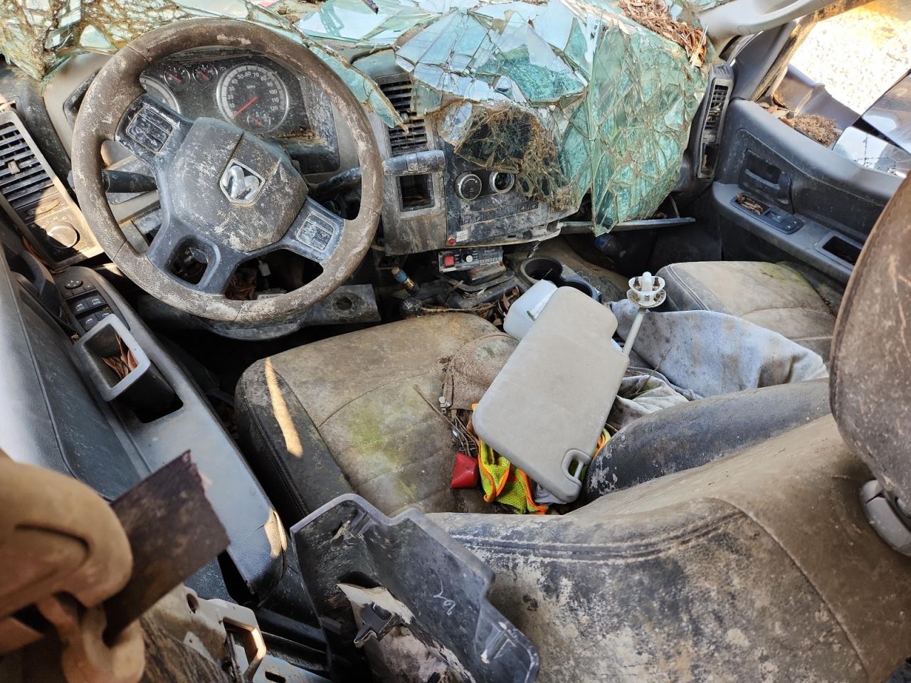 PoorThis is a heavily damaged 2012 Dodge Ram 5500. The primary damage is widespread, affecting the body of the vehicle. The exterior is significantly compromised, with extensive damage visible across multiple panels. The interior also shows significant damage. **Exterior Damage:** * Severe body damage across the front, sides, and rear. * Significant deformation of body panels. * Windshield severely damaged. * Lights damaged. * Wheels are fine. **Interior Damage:** * Visible damage to the seats, dashboard, and interior trim. * Possible airbag deployment. * Extensive wear and tear consistent with the vehicle's condition. **Summary:** The Dodge Ram 5500 is in very poor condition, exhibiting substantial damage to both the exterior and interior. The damage suggests a major impact, rendering the vehicle non-drivable without considerable repair. The overall state of the vehicle is poor, and it requires extensive restoration.