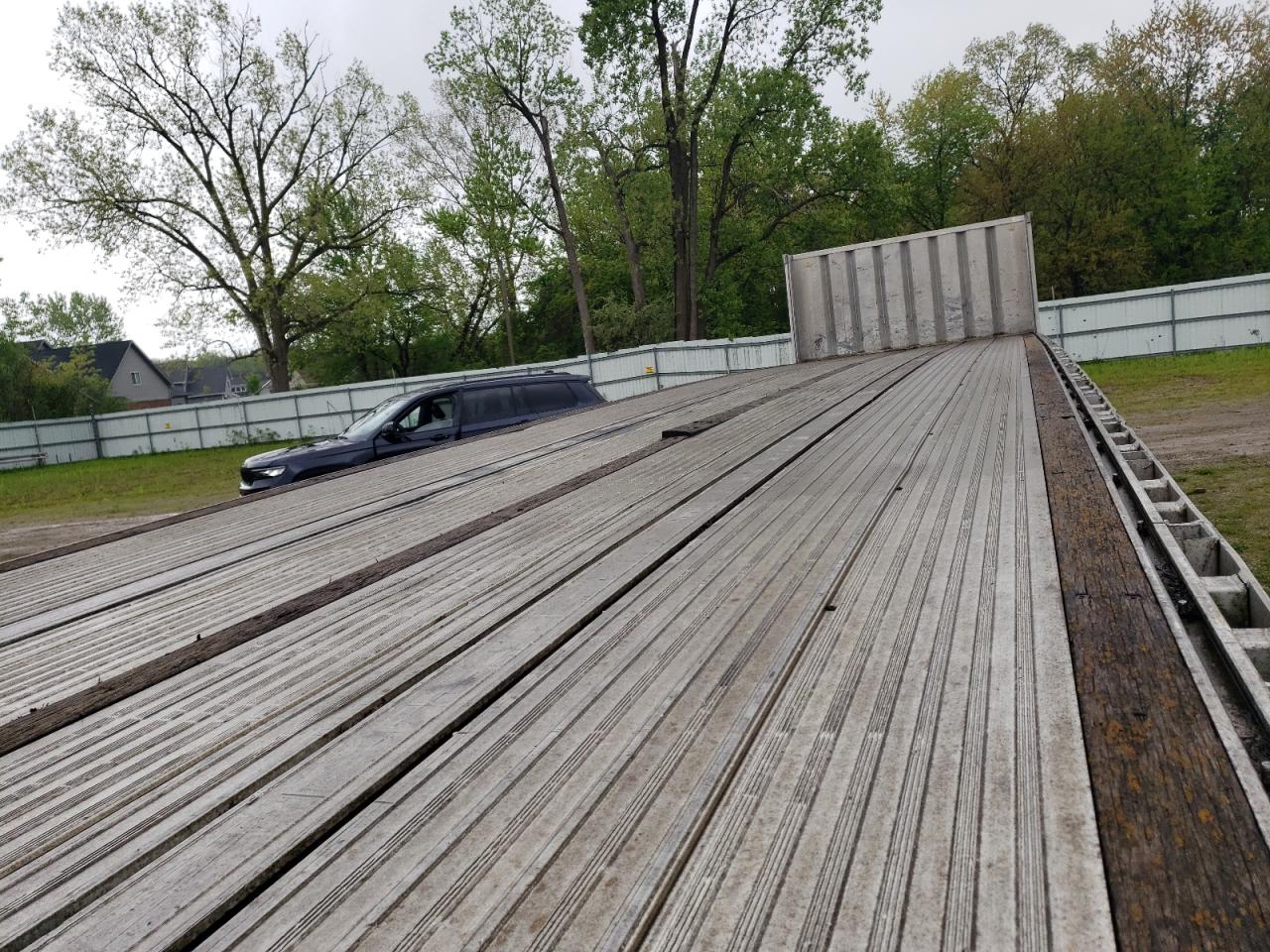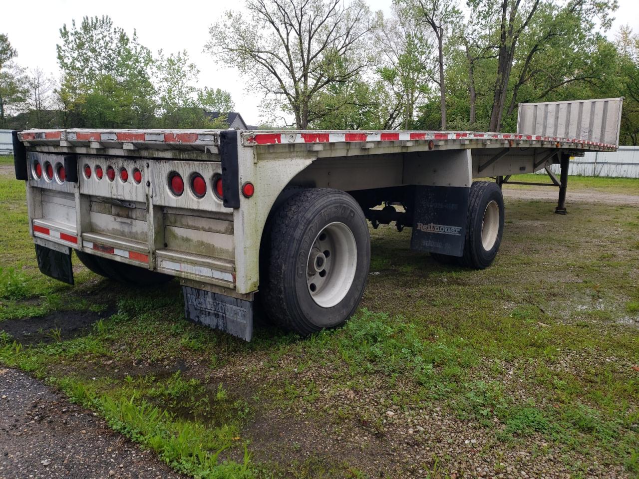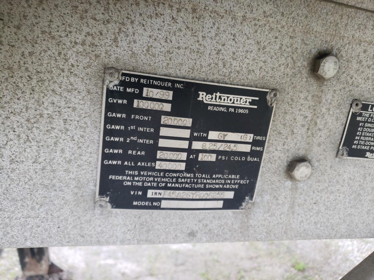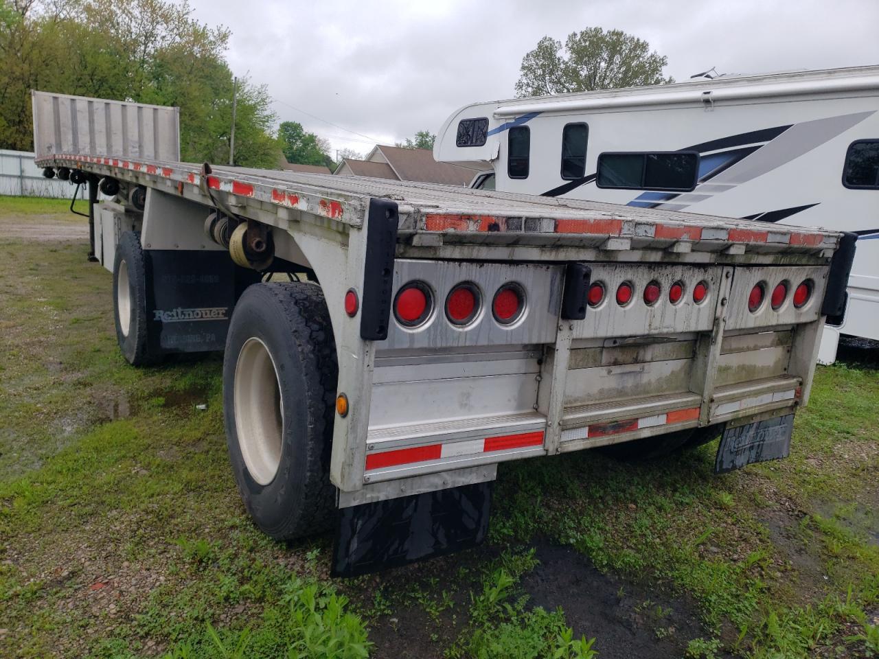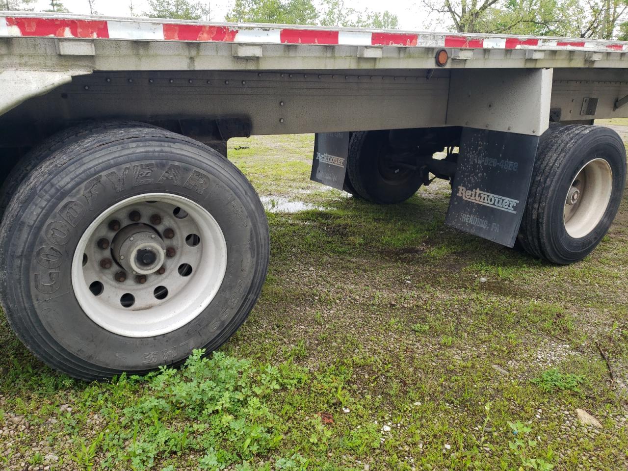 GoodThe REITNOUER FLATBED 2000, a silver flatbed trailer, exhibits minor dents and scratches. The images reveal a sturdy trailer with functional lights and intact wheels. The interior appears to be in excellent condition, with no visible signs of damage. The trailer is drivable and in overall good condition, with cosmetic damage.