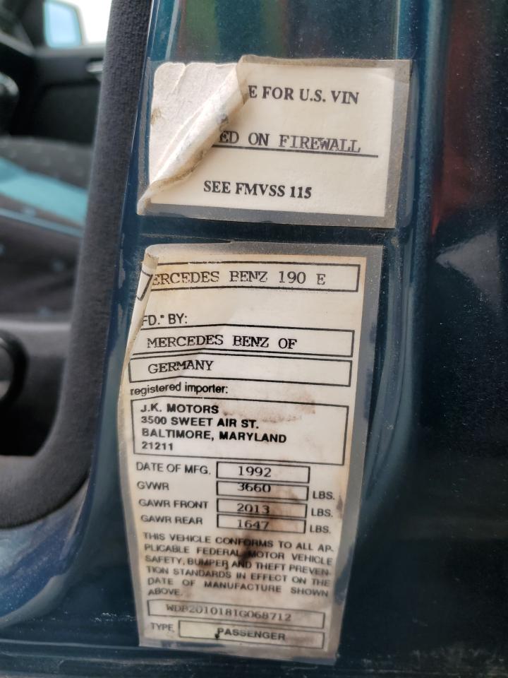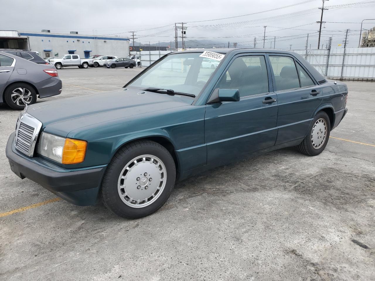 FairThis 1992 Mercedes-Benz 190E has a green exterior with visible damage to the body panels, marked with labels. The vehicle starts mechanically but has potential issues. The interior shows minor wear and tear. The wheels appear to be intact, and the lights and glasses are in acceptable condition. This car presents as a project vehicle. Vehicle Damage Category: Body.