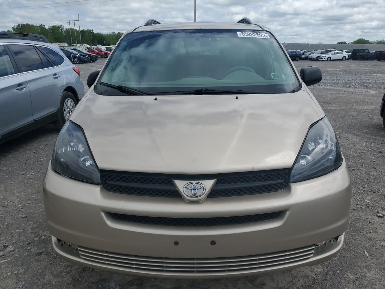FairThe 2004 Toyota Sienna CE is a tan minivan. The primary damage appears to be normal wear and tear. The vehicle's condition suggests it is drivable, as indicated by the 'Run & Drive Verified' start code. Visual inspection shows some damage to the body panels and potential cosmetic issues. The interior shows signs of use and normal wear. The car's lights and glasses appear intact, but the overall exterior condition needs some work. The damage category is 'Body', and with car is drivable we improve overall condition.