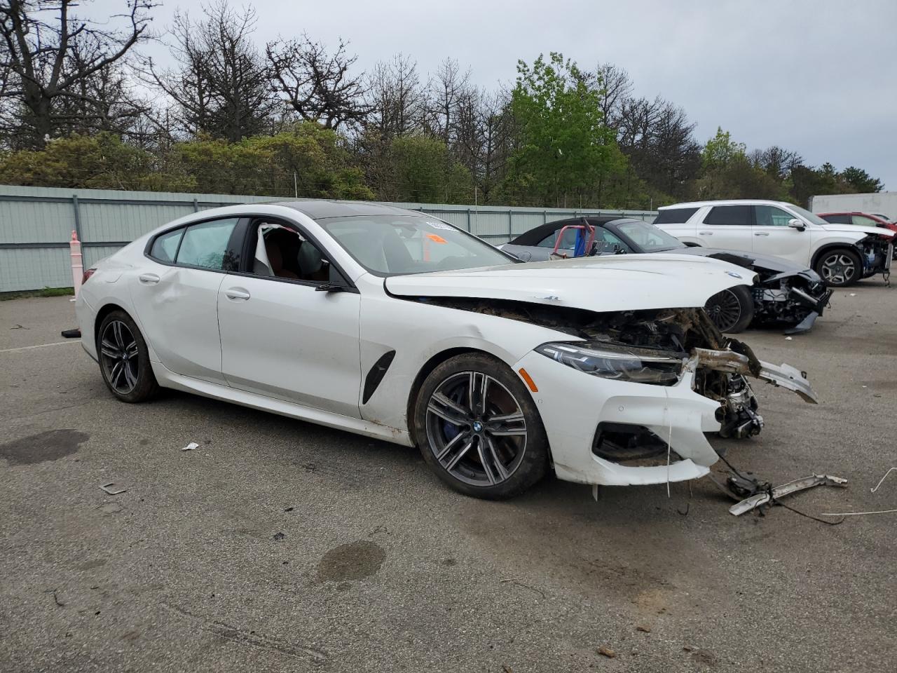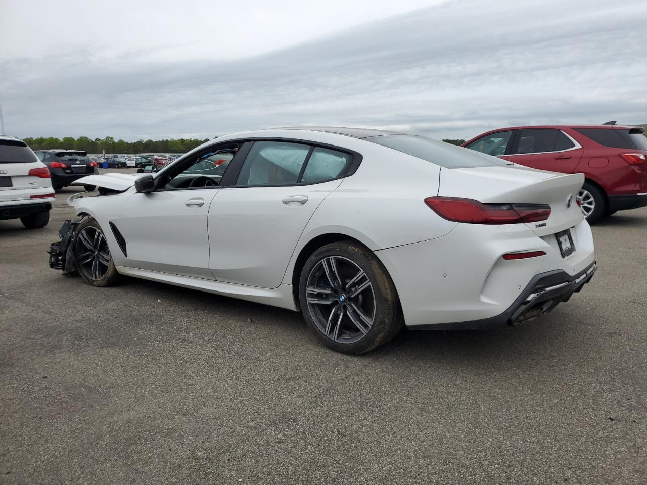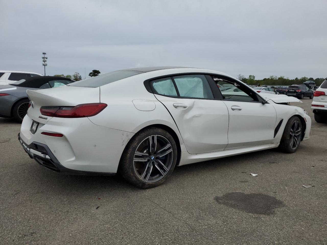 PoorThe white 2022 BMW M850i xDrive has sustained significant damage. The front end is severely damaged, with extensive damage to the body panels and frame. The side of the car also shows signs of damage. The interior has deployed airbags. The wheels appear to be intact, but the overall condition is poor, indicating a need for considerable repair. This vehicle is not drivable.