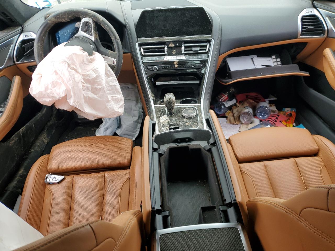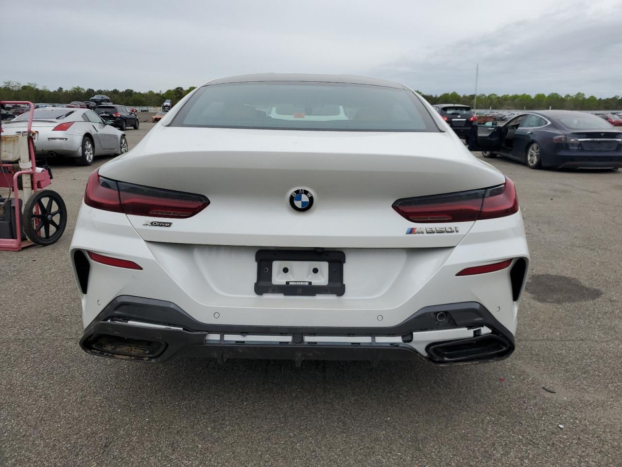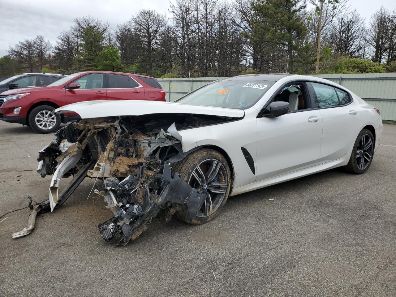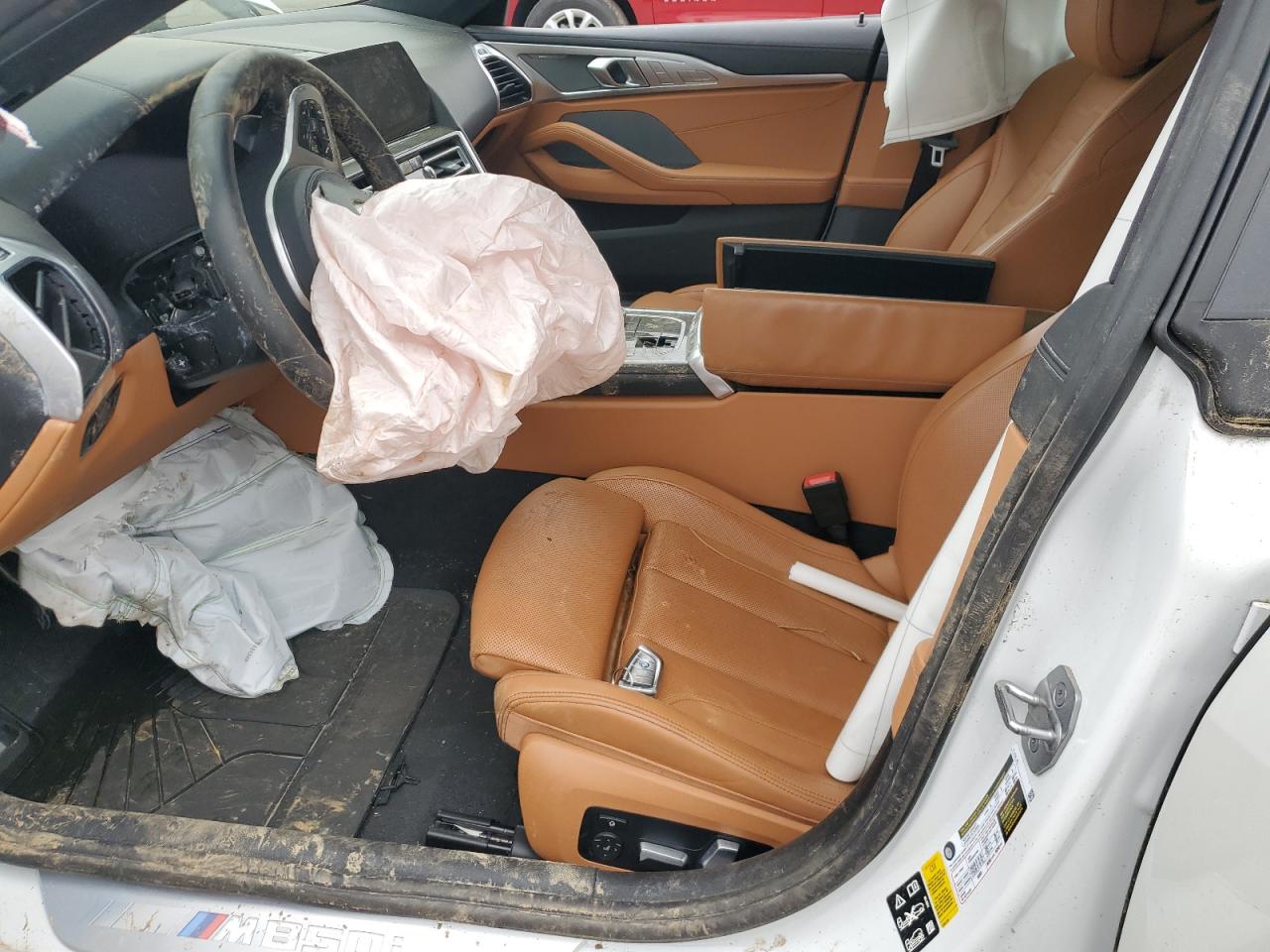 PoorThe white 2022 BMW M850i xDrive has sustained significant damage. The front end is severely damaged, with extensive damage to the body panels and frame. The side of the car also shows signs of damage. The interior has deployed airbags. The wheels appear to be intact, but the overall condition is poor, indicating a need for considerable repair. This vehicle is not drivable.