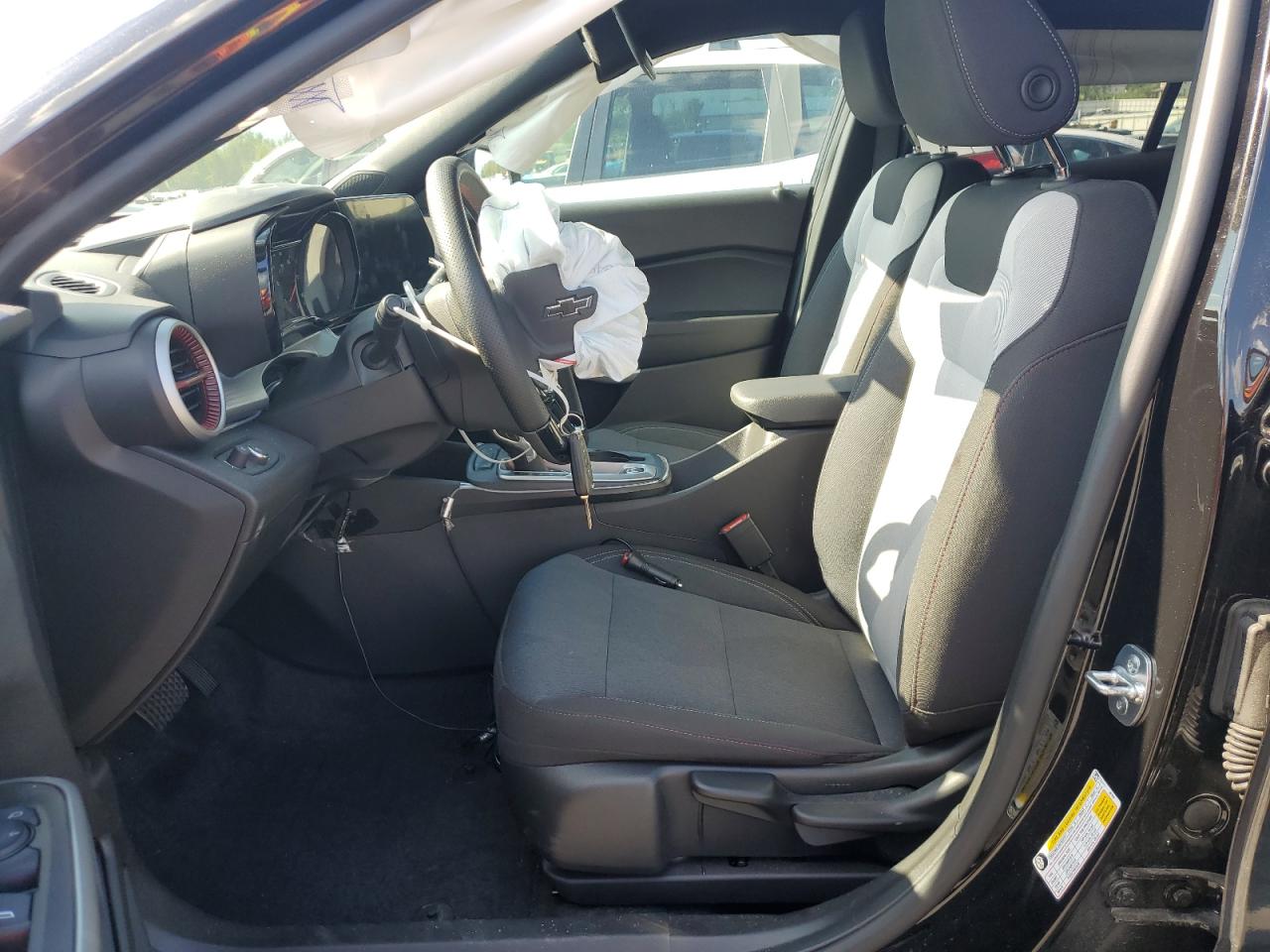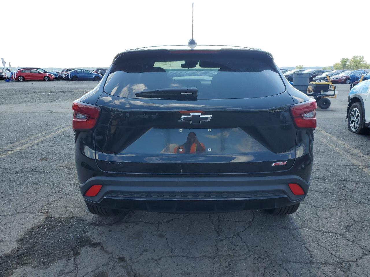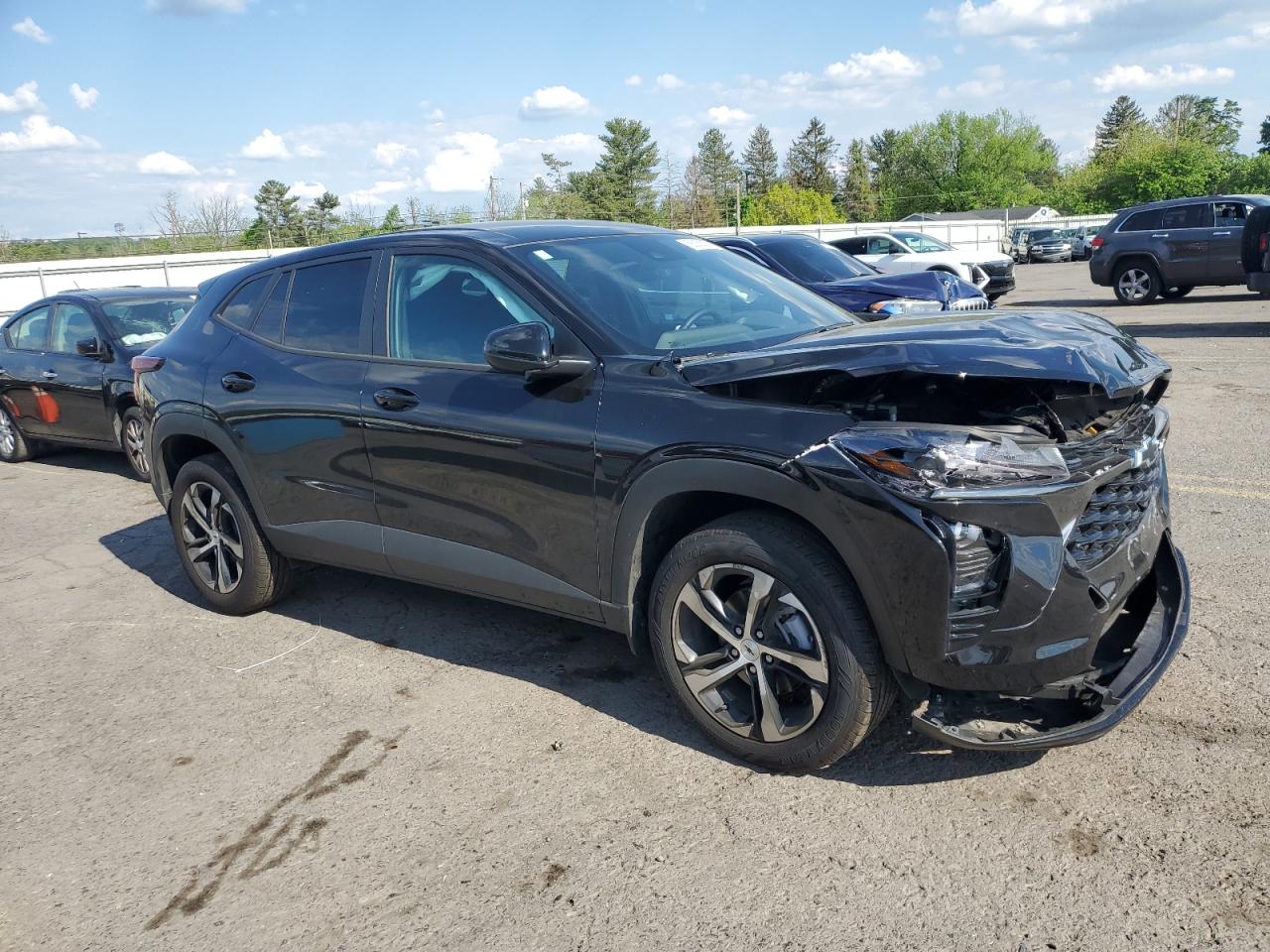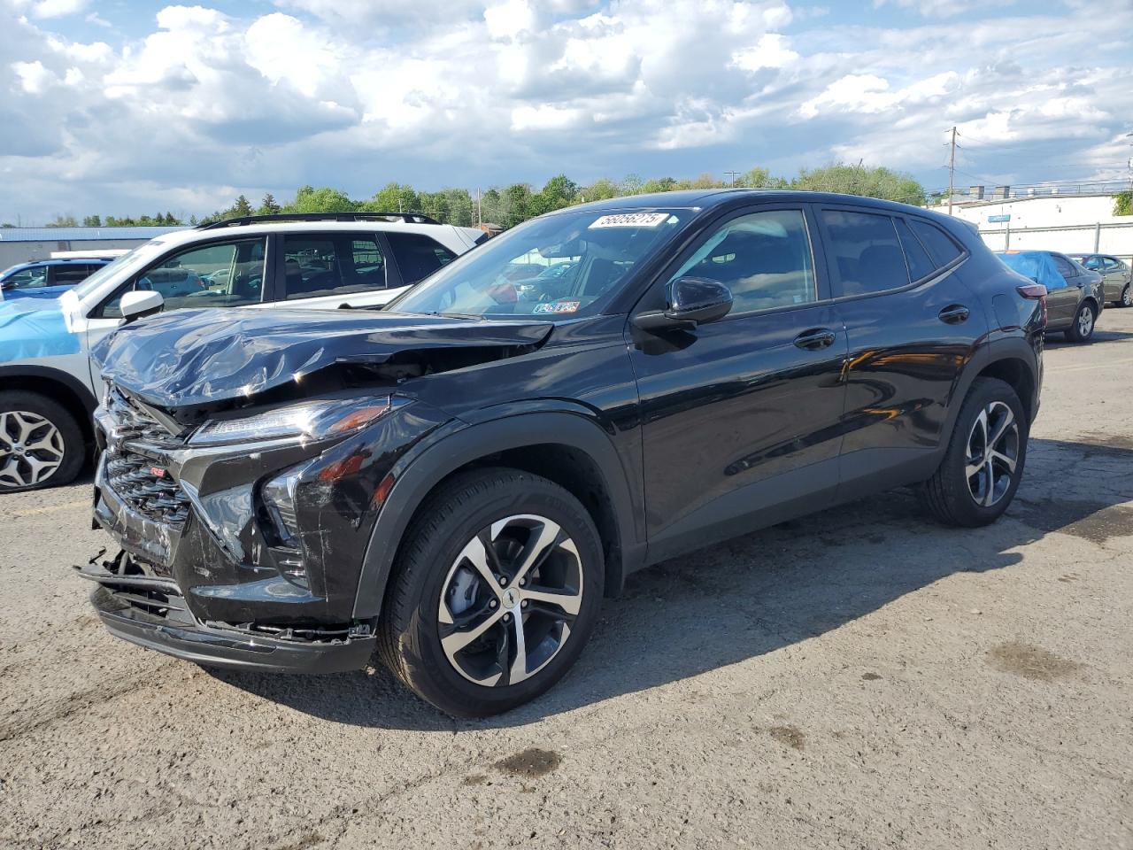 FairThis CHEVROLET TRAX 1RS 2025 is black and shows significant front-end damage. The vehicle has a Run & Drive Verified start code. The damage primarily impacts the front end, with no apparent secondary damage. The car's interior shows signs of damage, including deployed airbags. The wheels and lights appear to be intact, with damage in the body.