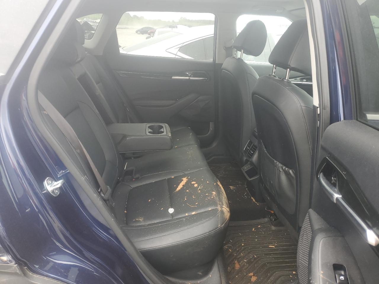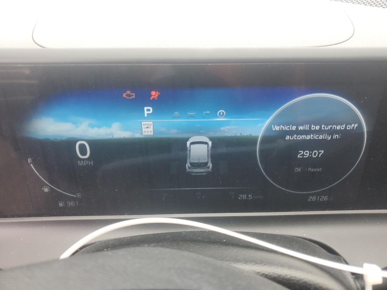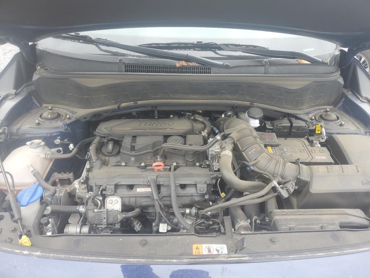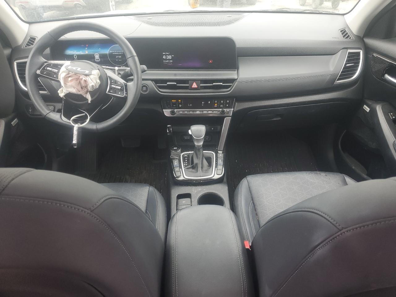 FairKIA SELTOS SX 2024 in blue with front-end damage. Run & Drive Verified. This vehicle presents with noticeable front-end impact. The damage includes a compromised front bumper, and possible damage to the lights. Interior shows airbag deployment and some damage on dashboard, otherwise is fine. Wheels appear intact. Vehicle is drivable, but requires repair.