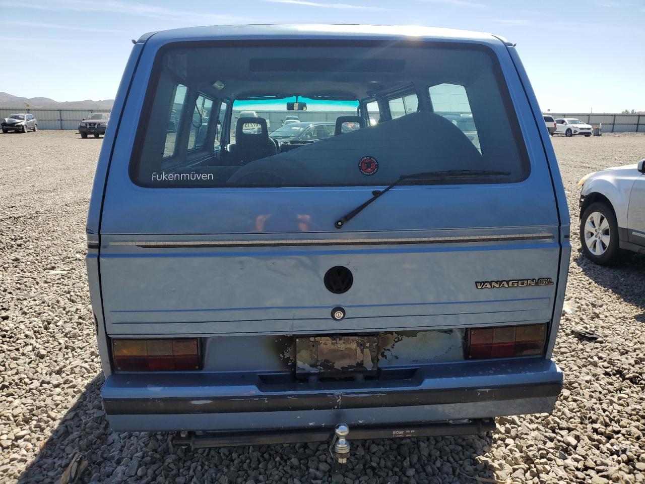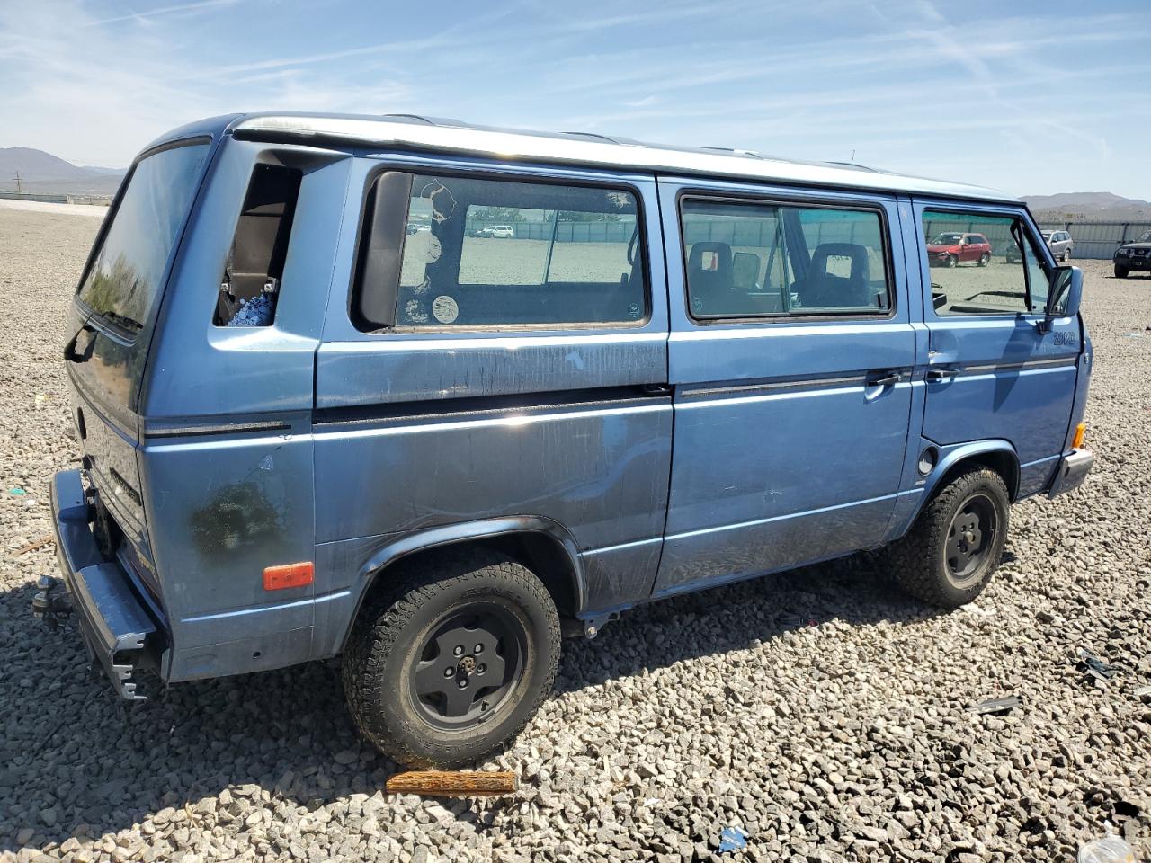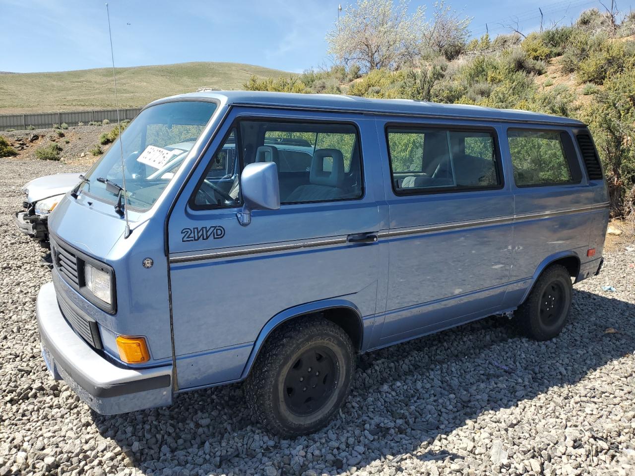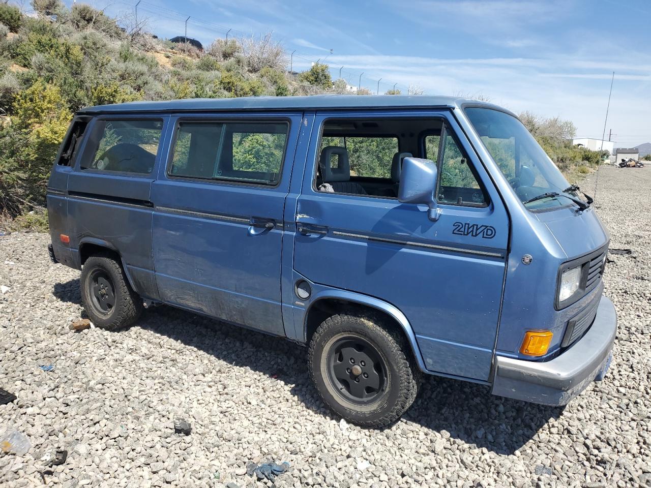 FairThe 1989 Volkswagen Vanagon BU has sustained primary burn damage and secondary rear-end damage. The exterior is blue. The car has a 'Run & Drive Verified' start code. The car's condition appears to be drivable, but with noticeable damage. Interior appears to be in better shape. The car itself has some wear and tear, suggesting it has been used but it's drivable .