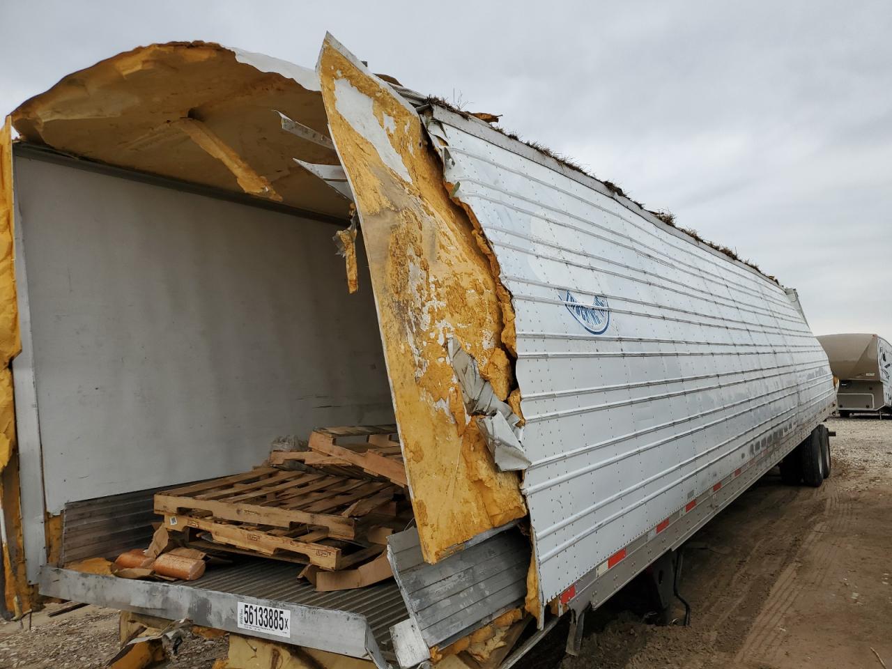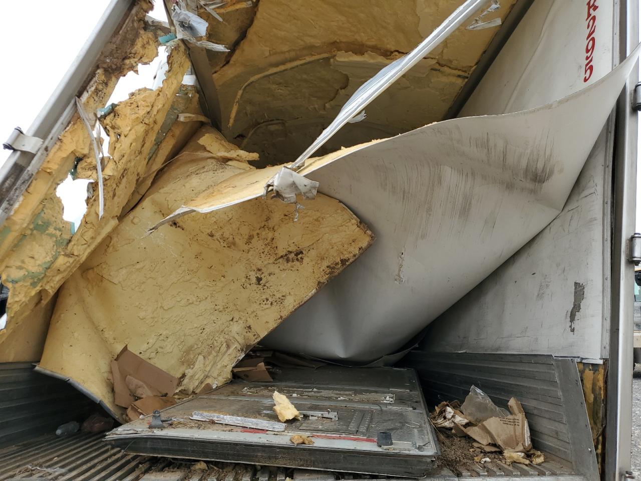 PoorThis is a 2014 UTILITY REEFER trailer, severely damaged in a rollover. The vehicle's white exterior shows extensive damage to the body panels, particularly the roof and sides, with large sections torn away. Interior damage is also significant, with the internal structure exposed and damaged. The trailer is likely undrivable due to the severity of the damage.