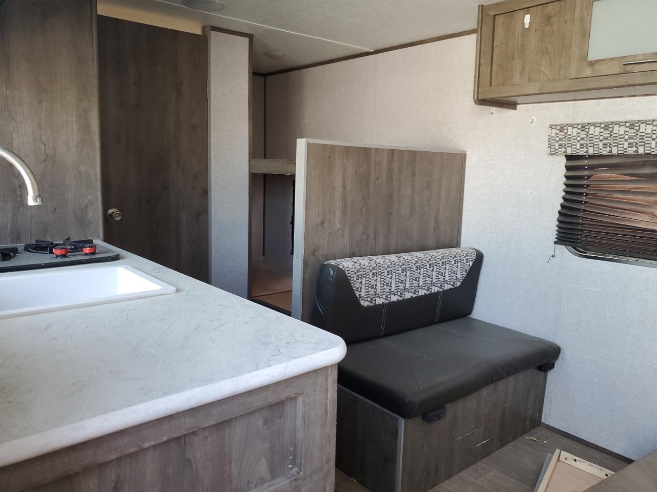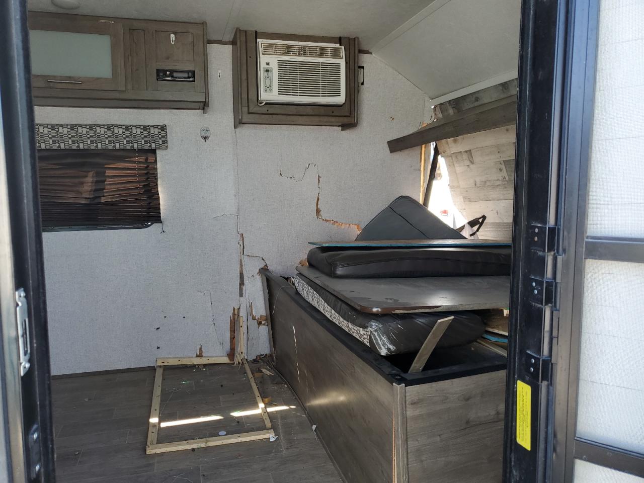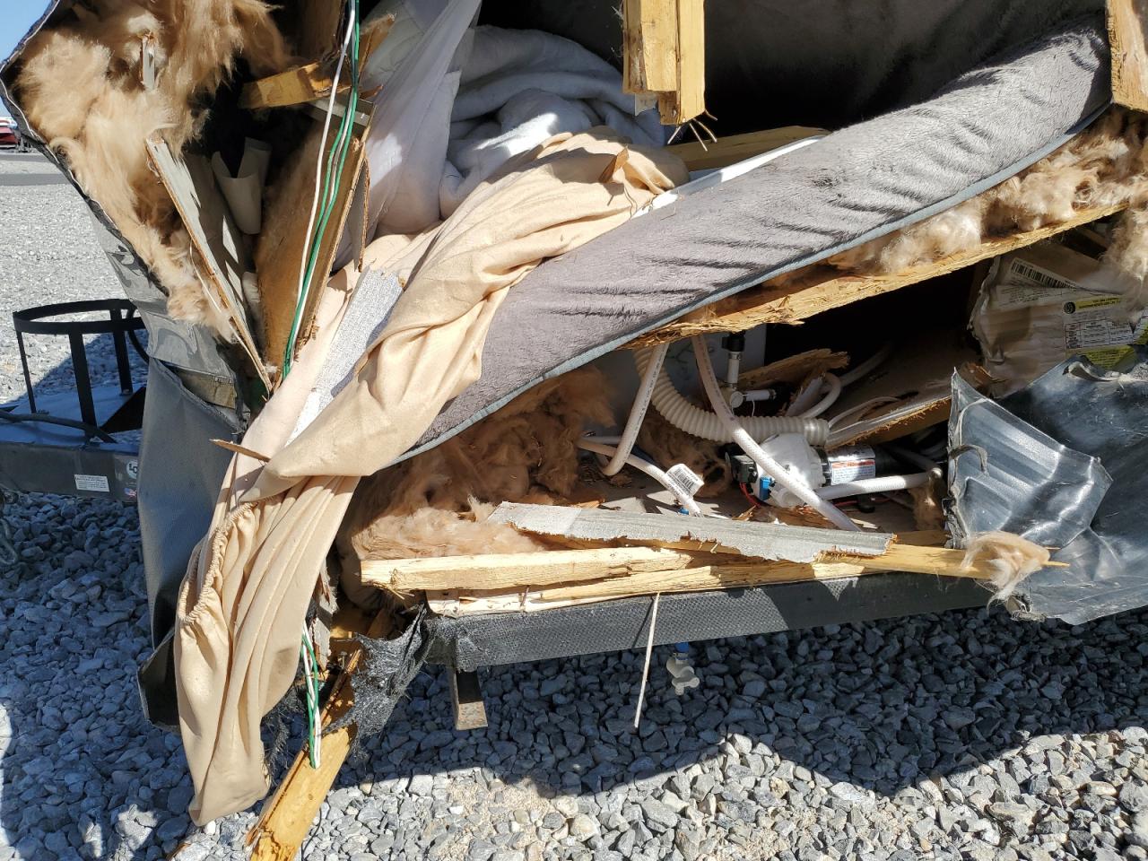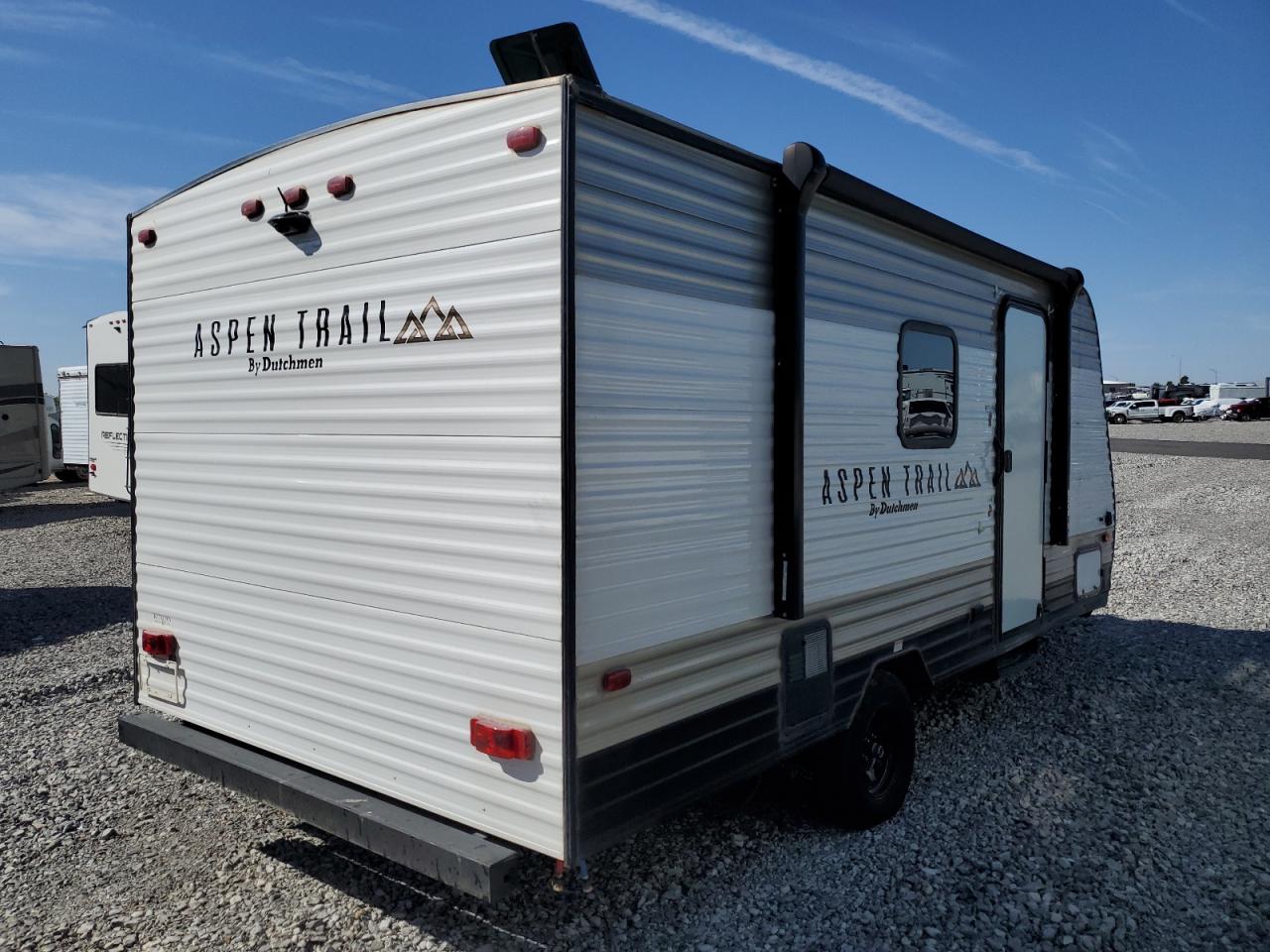 PoorThe two-tone 2021 Aspen Trail by Dutchman RV, shows significant damage primarily to the front end and side. The exterior condition is rated as 'Poor' due to extensive body damage. The interior condition is rated as 'Good'. The overall state of the vehicle is 'Fair', indicating that repairs may be needed, but it may still be drivable. The vehicle's front end is severely compromised, with major structural damage, including a crushed and torn front. The side panel also has major damage. Some of the windows are damaged, and some are in a better condition. The wheels appear to be intact. The interior seems to be in better condition. Damage Summary: The damage is mainly concentrated on the body. The vehicle may be drivable.