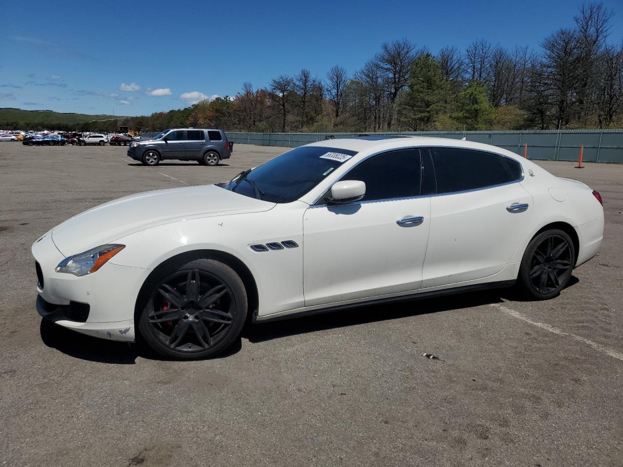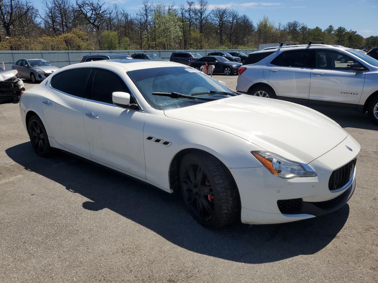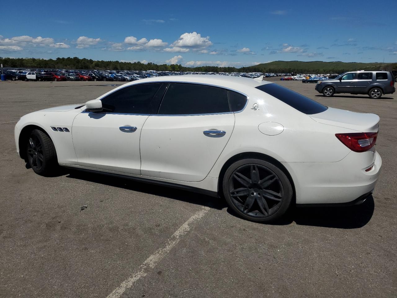 GoodThis is a white 2016 Maserati Quattroporte. The primary damage consists of minor dents and scratches. There is no secondary damage. The car exhibits a good overall condition, suggesting it is drivable and well-maintained despite the cosmetic imperfections. The interior shows signs of wear and tear, consistent with its age and mileage, but overall it's in good shape, suggesting it's been well taken care of.