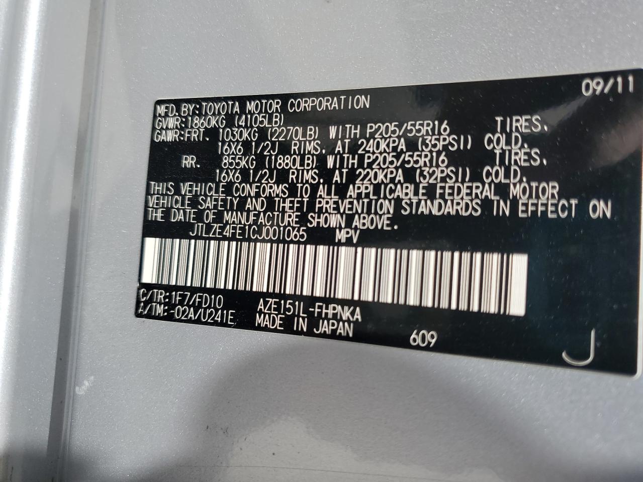 JTLZE4FE1CJ001065Final Bid