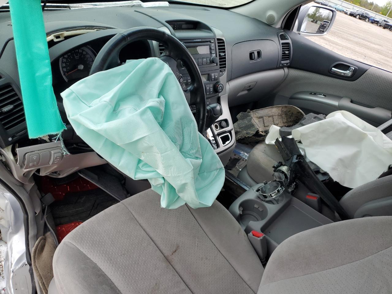 PoorThe silver 2007 Hyundai Entourage has sustained extensive damage. The vehicle's exterior exhibits severe impact damage across multiple body panels, including significant deformation to the front, rear, and side. The windshield and rear glass are completely shattered. The interior shows signs of airbag deployment, indicating a high-impact collision, with potential damage to the dashboard, seats, and other components. This vehicle is clearly in a state that requires considerable repair and is likely not drivable in its current condition.