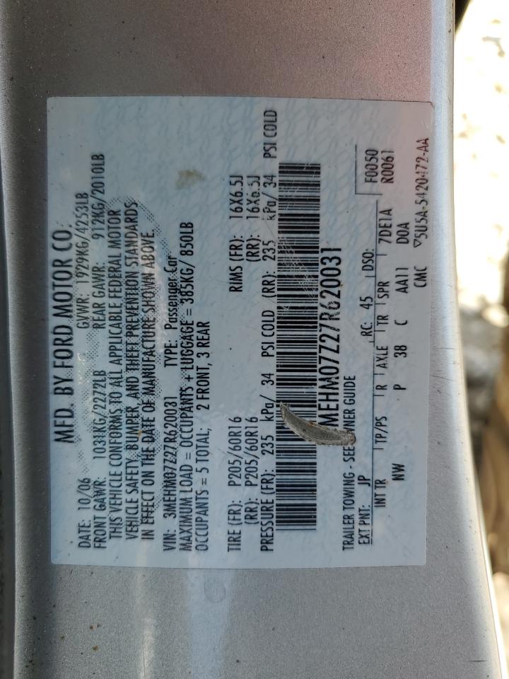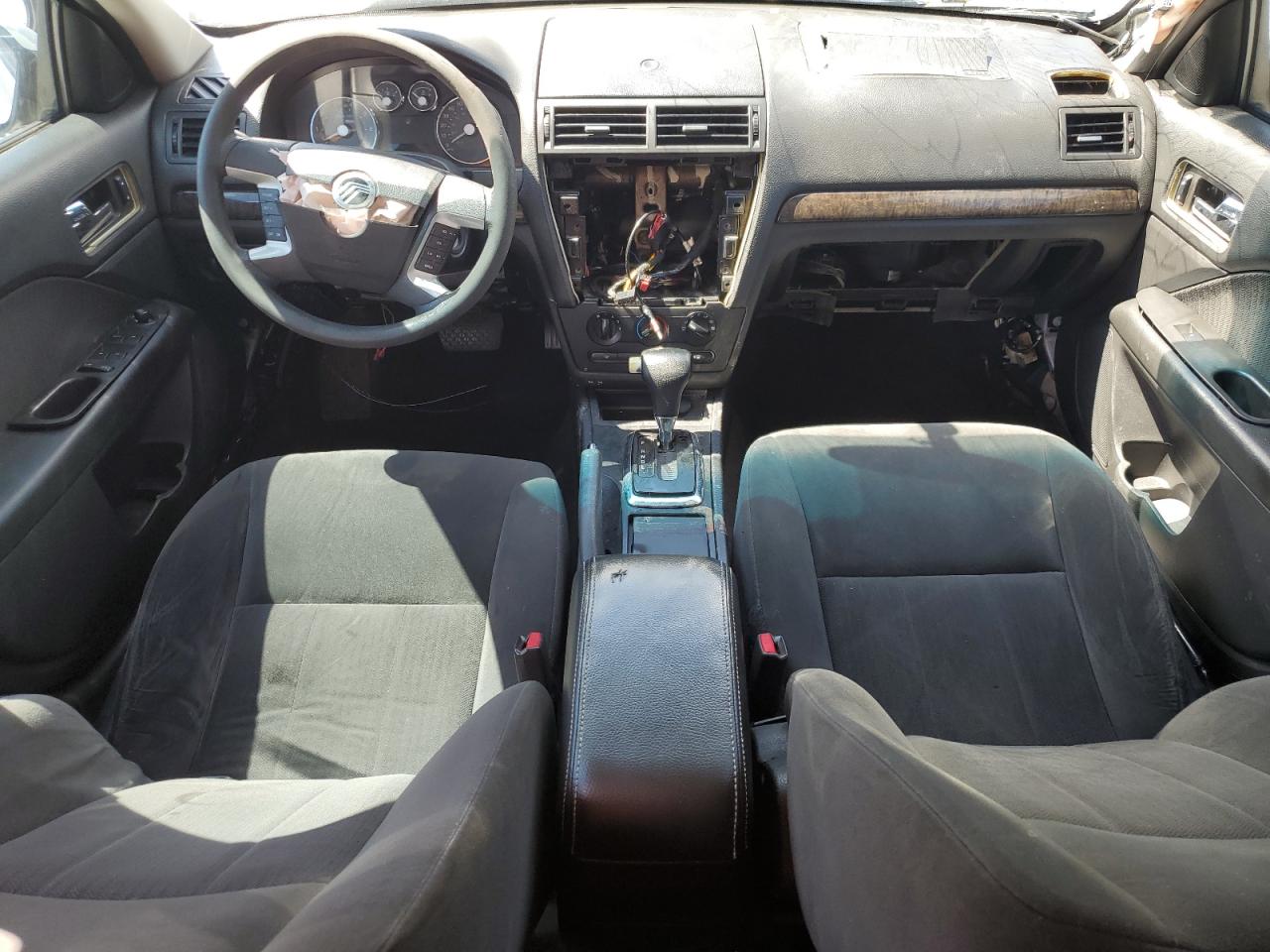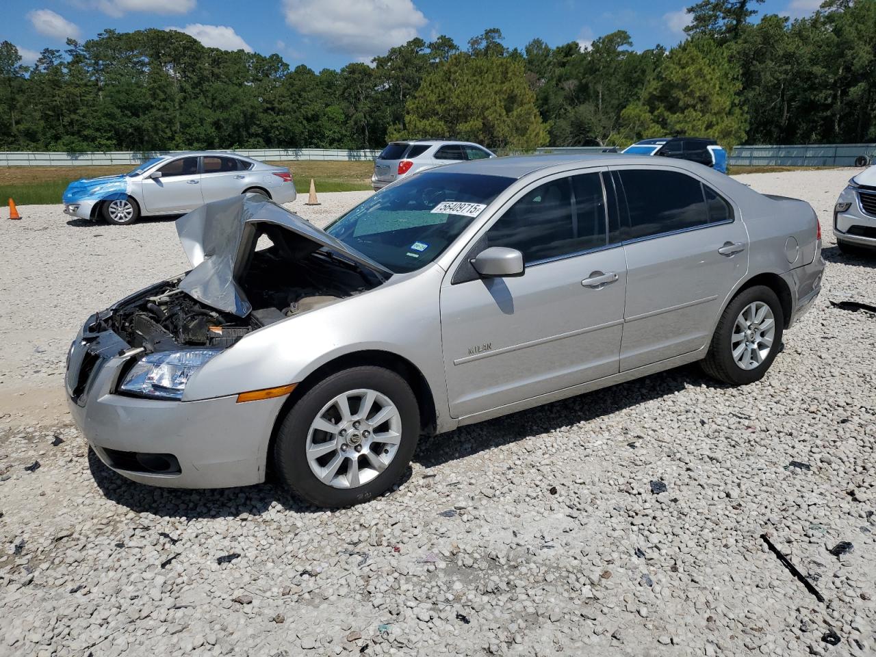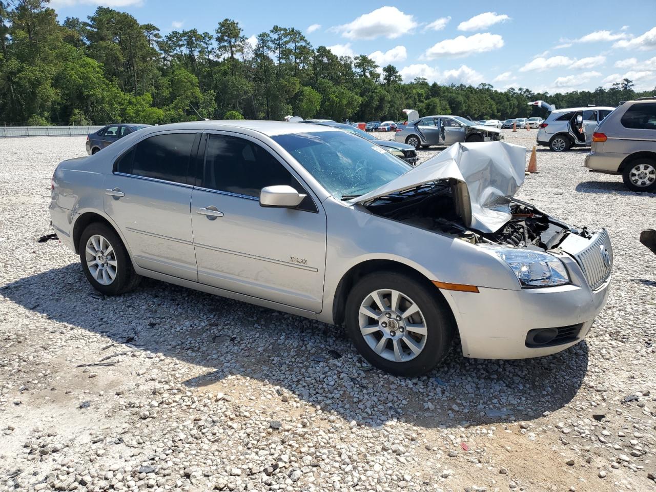 FairThe 2007 Mercury Milan is a silver-colored sedan. The primary damage is to the front end, with secondary minor dents and scratches throughout the body. The images show significant damage to the front end, including a crumpled hood and possible structural damage. The interior appears to have moderate wear and tear, with visible damage. The airbag deployed