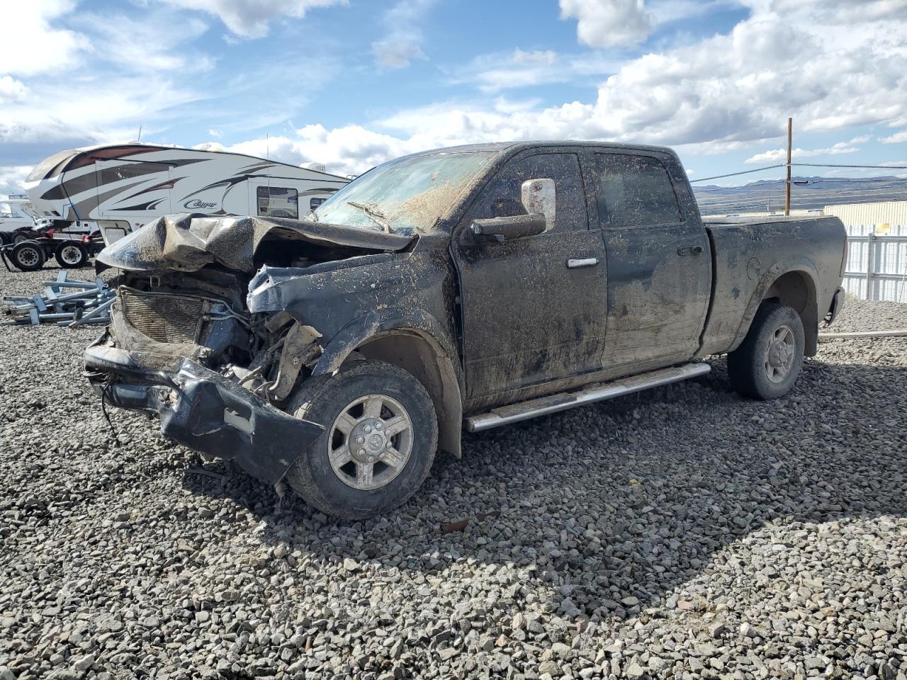 FairThe 2012 Dodge Ram 2500 L is a black truck that has sustained significant damage to the front end, indicating a collision. The body panels are visibly damaged. The interior shows signs of airbag deployment and overall wear. The wheels appear to be intact. The vehicle likely requires considerable repair. It has 'FRONT END' as the primary damage and 'no damage' as secondary damage.