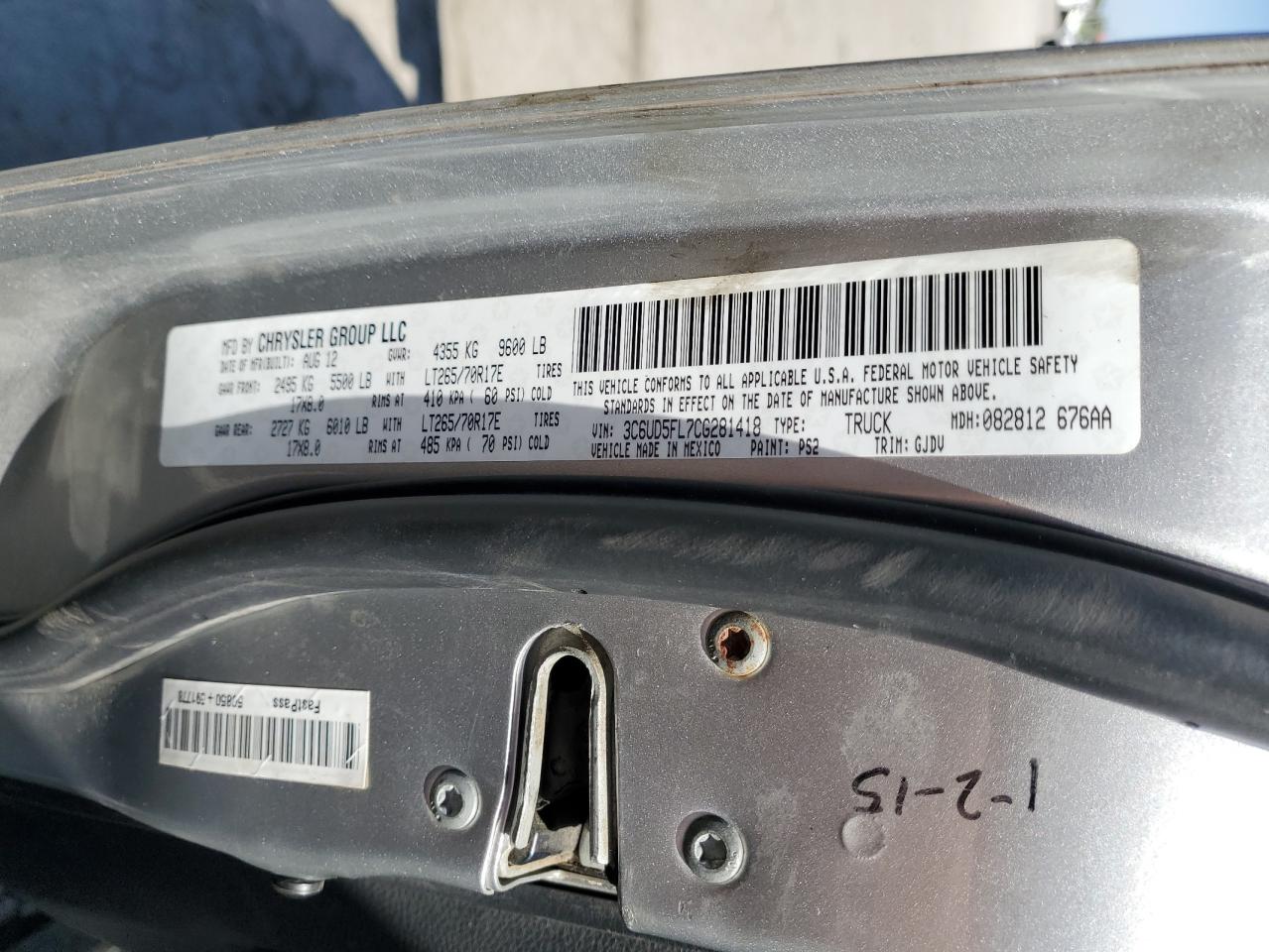 FairThe 2012 Dodge Ram 2500 L in silver shows significant damage primarily at the rear end and side, with a 'Vehicle Starts' code indicating the engine likely functions. Exterior damage is notable, but the interior appears to be in a relatively good state.