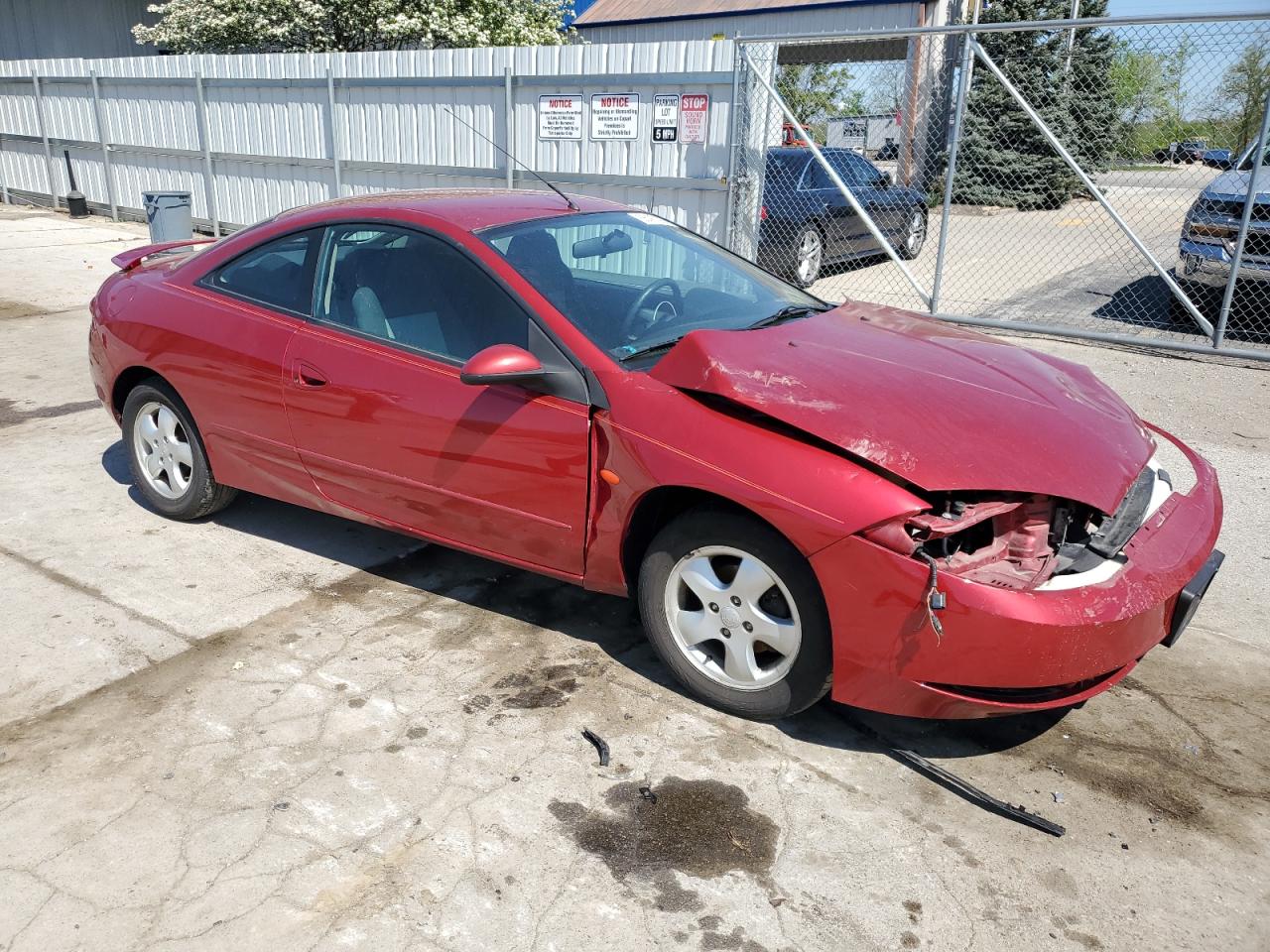 FairThe 2000 Mercury Cougar V6 in burgundy shows significant damage. The front end, including the bumper, hood, and fenders, exhibits major damage. There is visible damage to the body panels on the sides. The wheels appear intact. The interior shows wear and tear. This Cougar requires considerable repair.